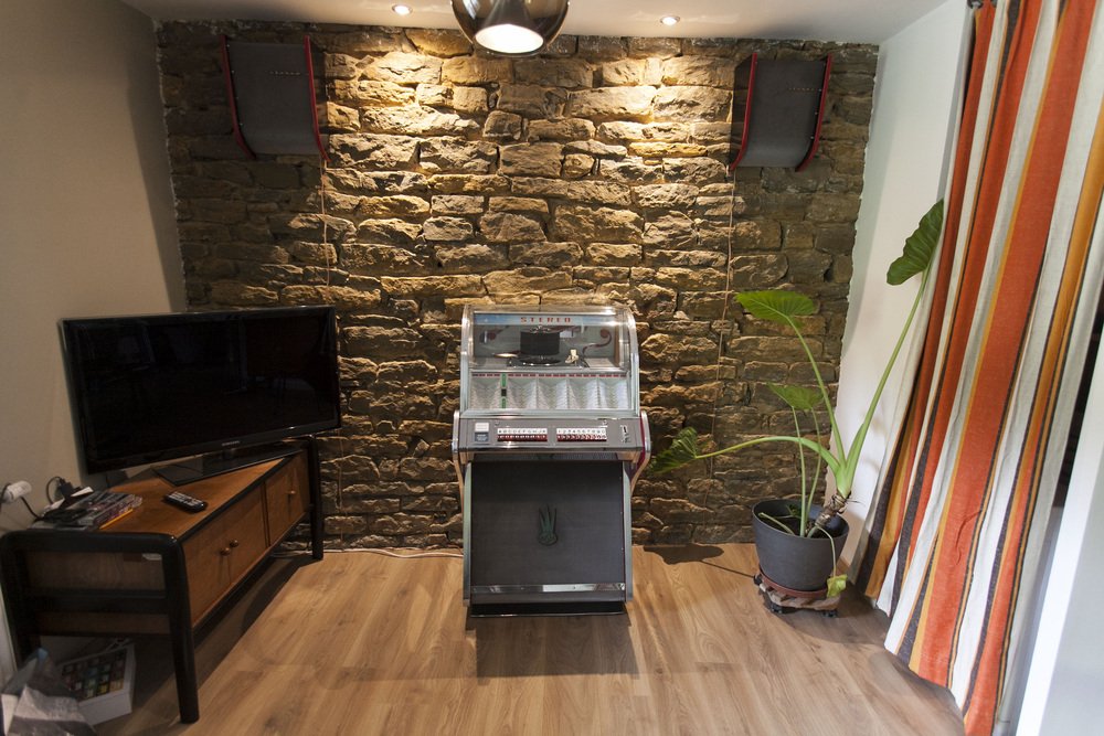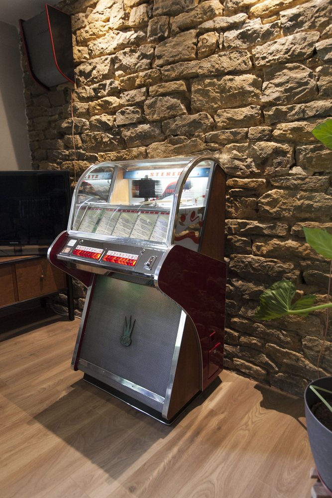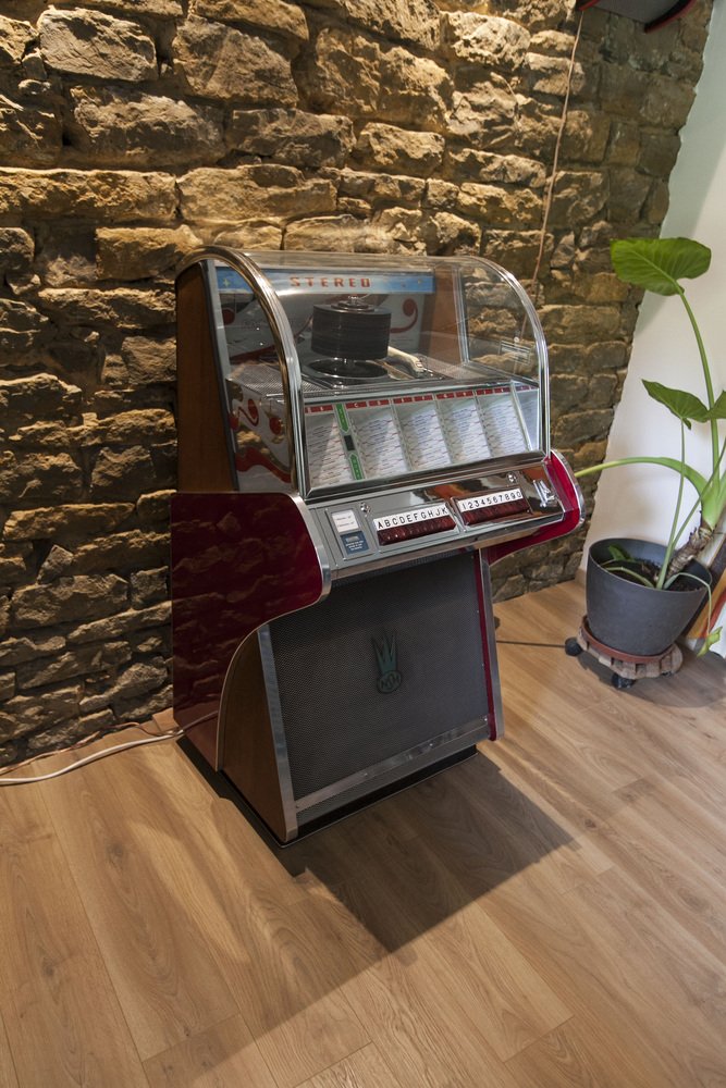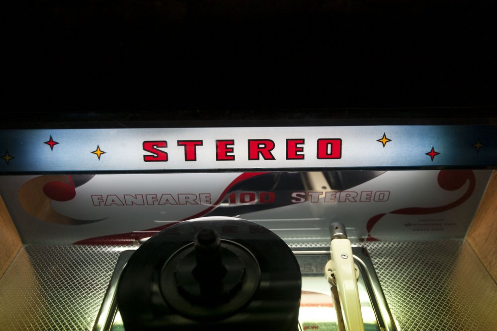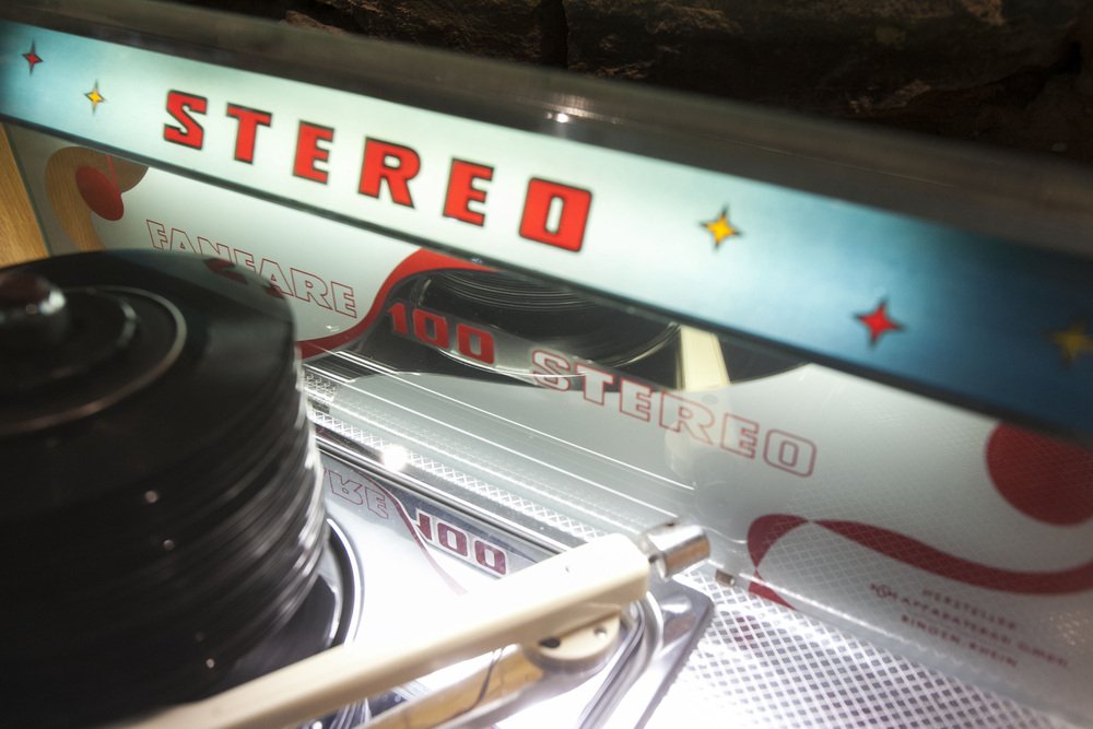 100 Stereo Model Jukebox and Speakers from NSM Brand Fanfare, 1950s, Set of 3