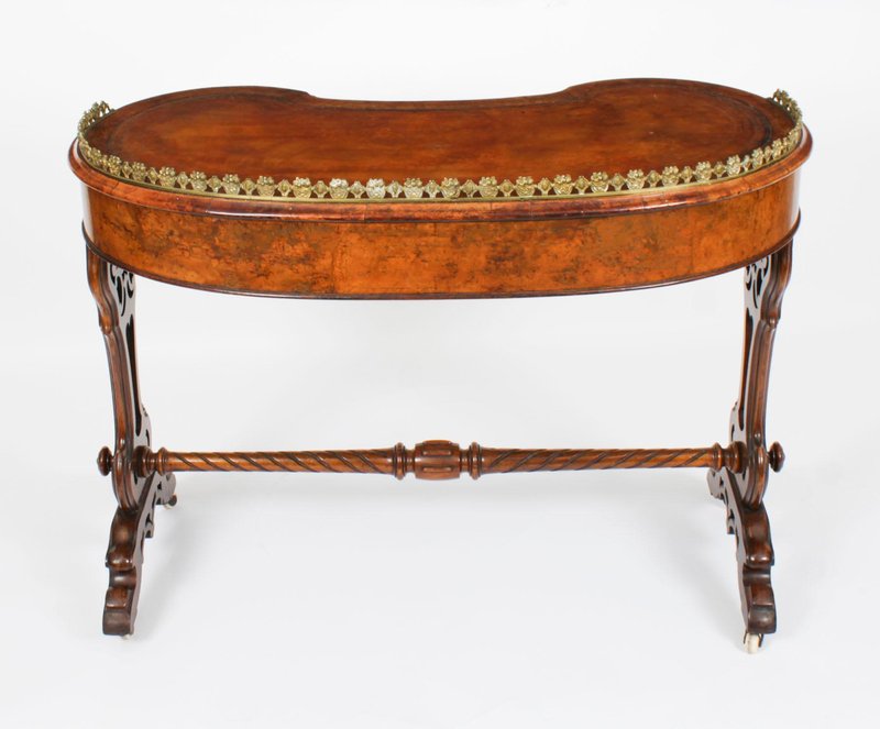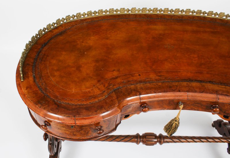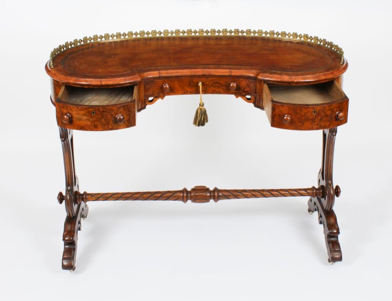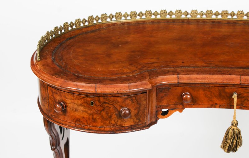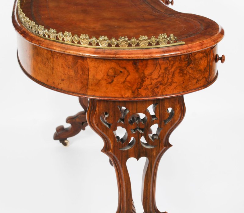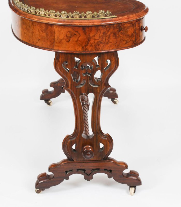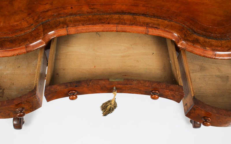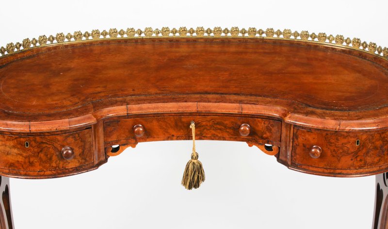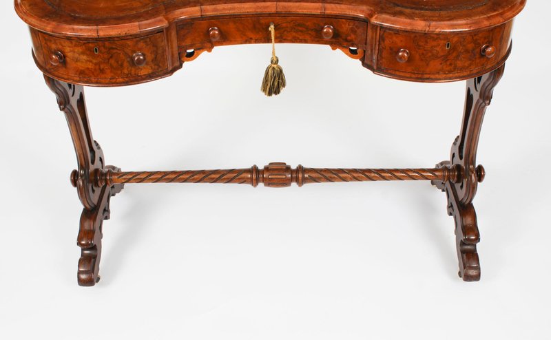 19th Century Burr Walnut Kidney Writing Table Desk Bureau Plat