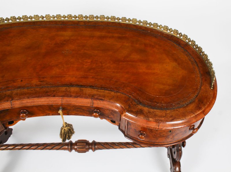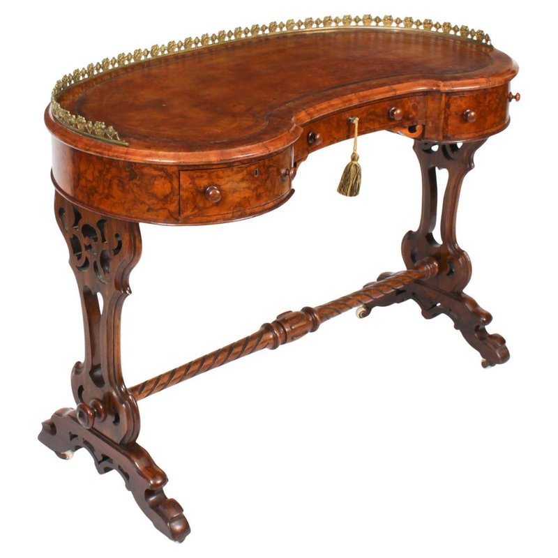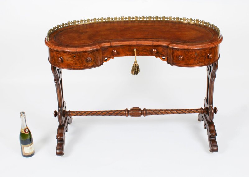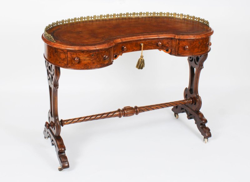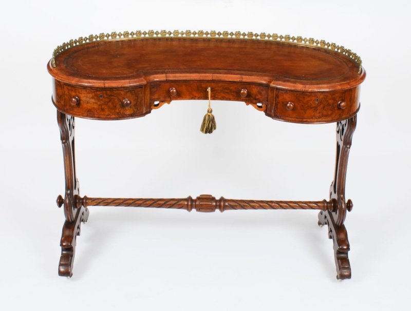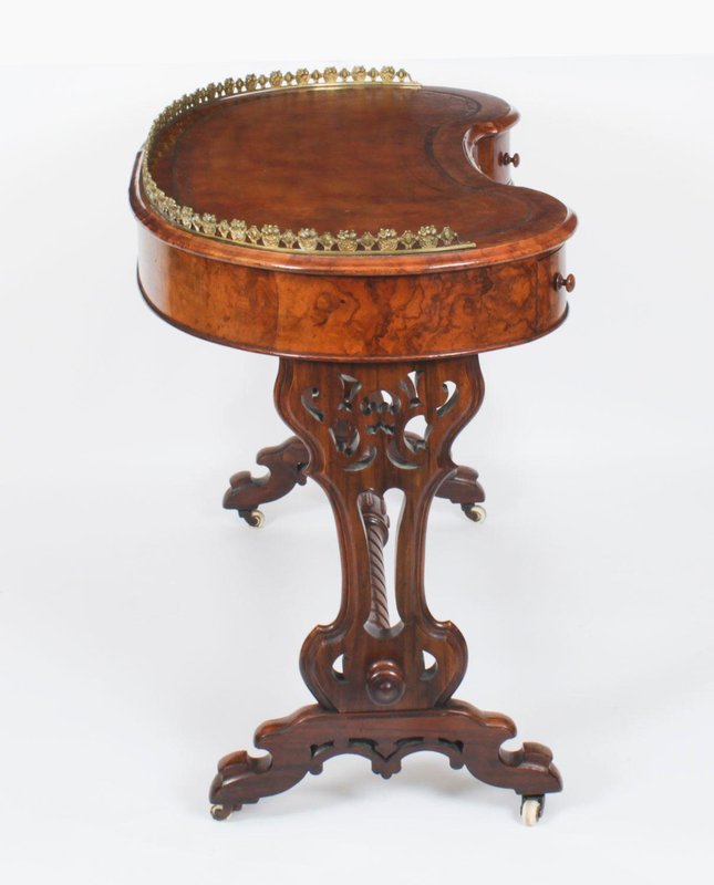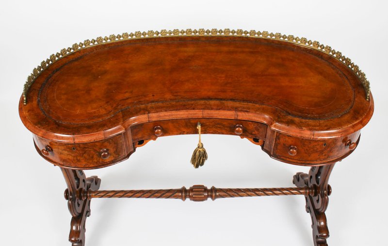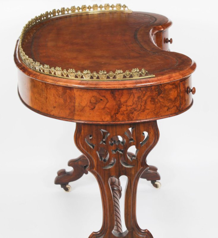 19th Century Burr Walnut Kidney Writing Table Desk Bureau Plat