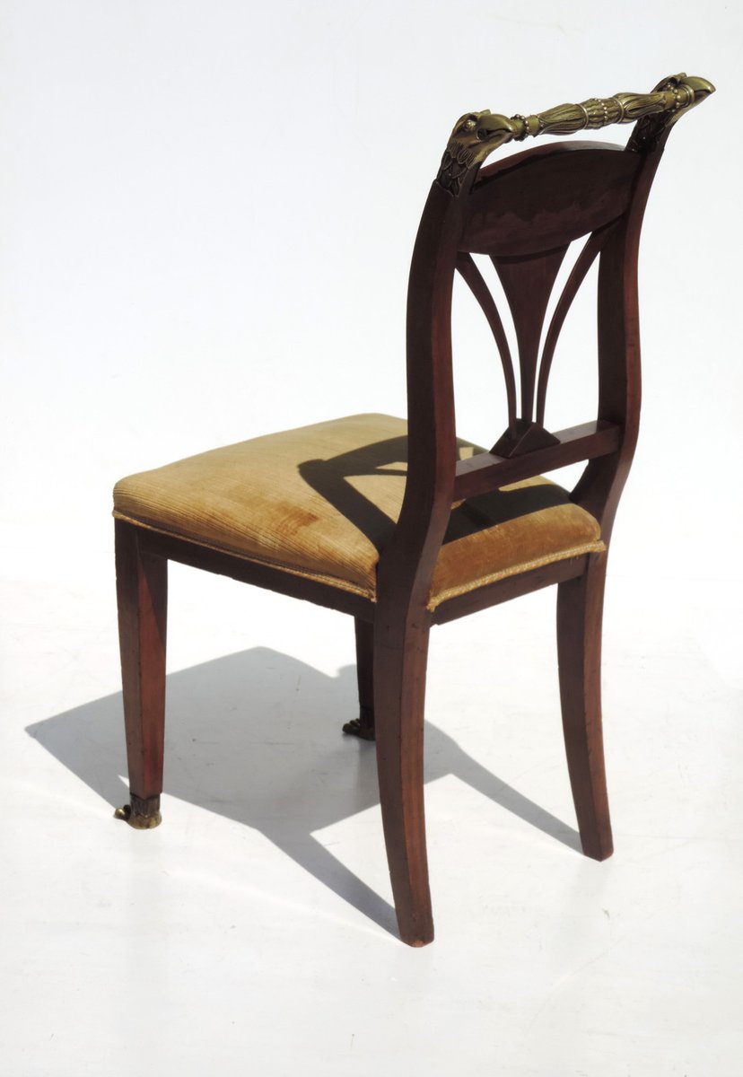 19th Century Empire Marquetry and Bronze Side Chair, Italy