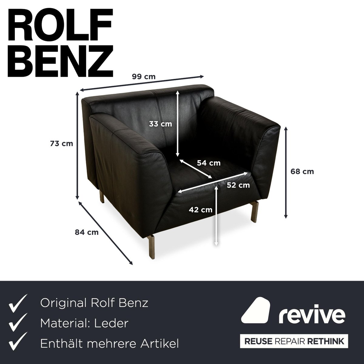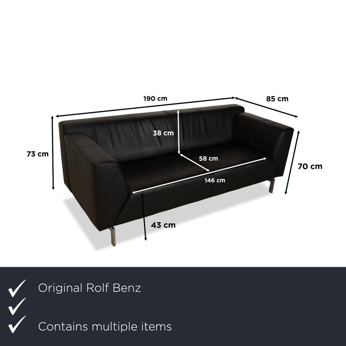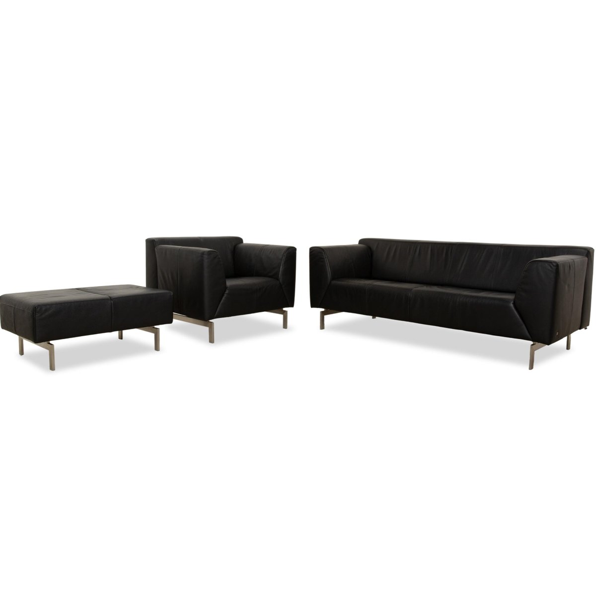 318 Linea 3-Seater Sofa, Ottoman and Lounge Chair in Black Leather from Rolf Benz, Set of 3