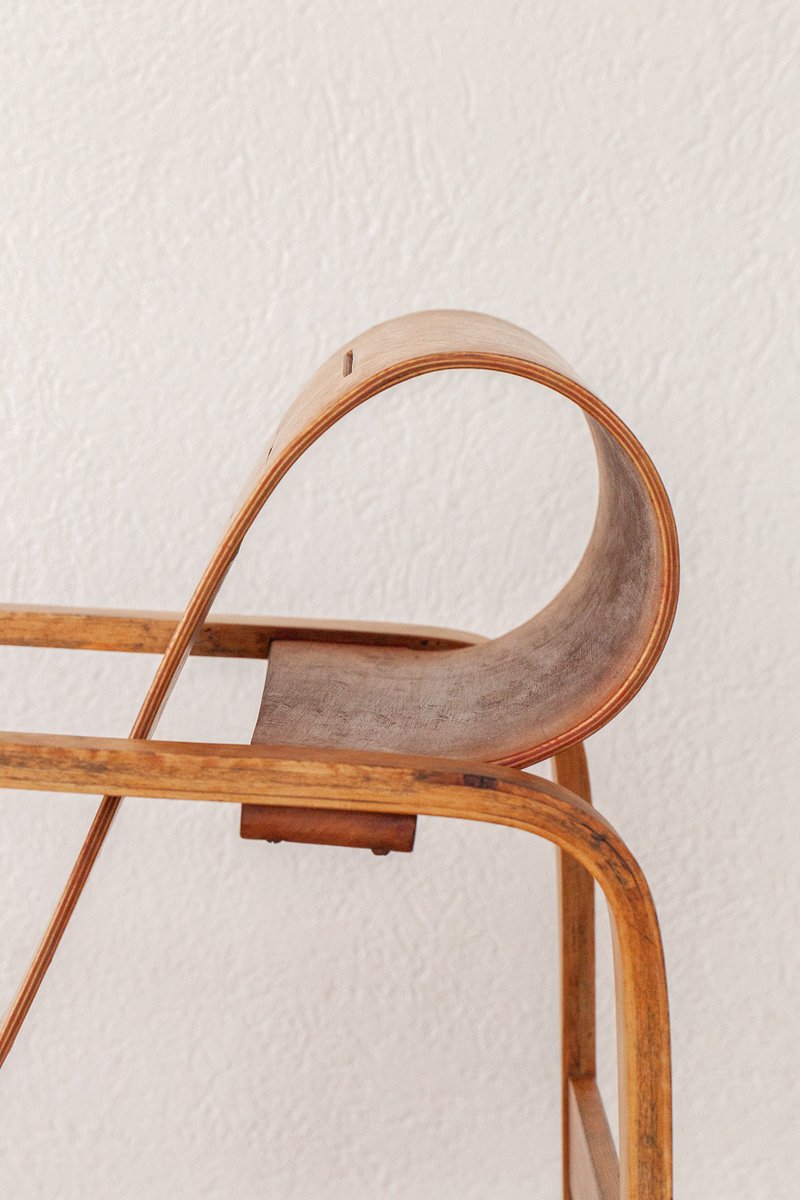 Architect-designer Alvar Aalto was born in Kuortane, Finland in 1898. He enrolled at the Helsinki Institute of Technology in 1916 and, although his studies were disrupted by the Finnish Civil War, he graduated with a degree in architecture in 1921. In 1923, he established an architectural studio in Jyväskylä, Finland, marrying fellow architect Aino Mandelin the following year. In 1927, the office moved to Turku. Aalto’s aesthetic evolved from a neo-classical style to a functionalist one during the late 1920s and, in the 1930s, moved towards a less rigid Rationalism with an eye for nature’s organic models, ultimately embracing modernism in the 1950s.