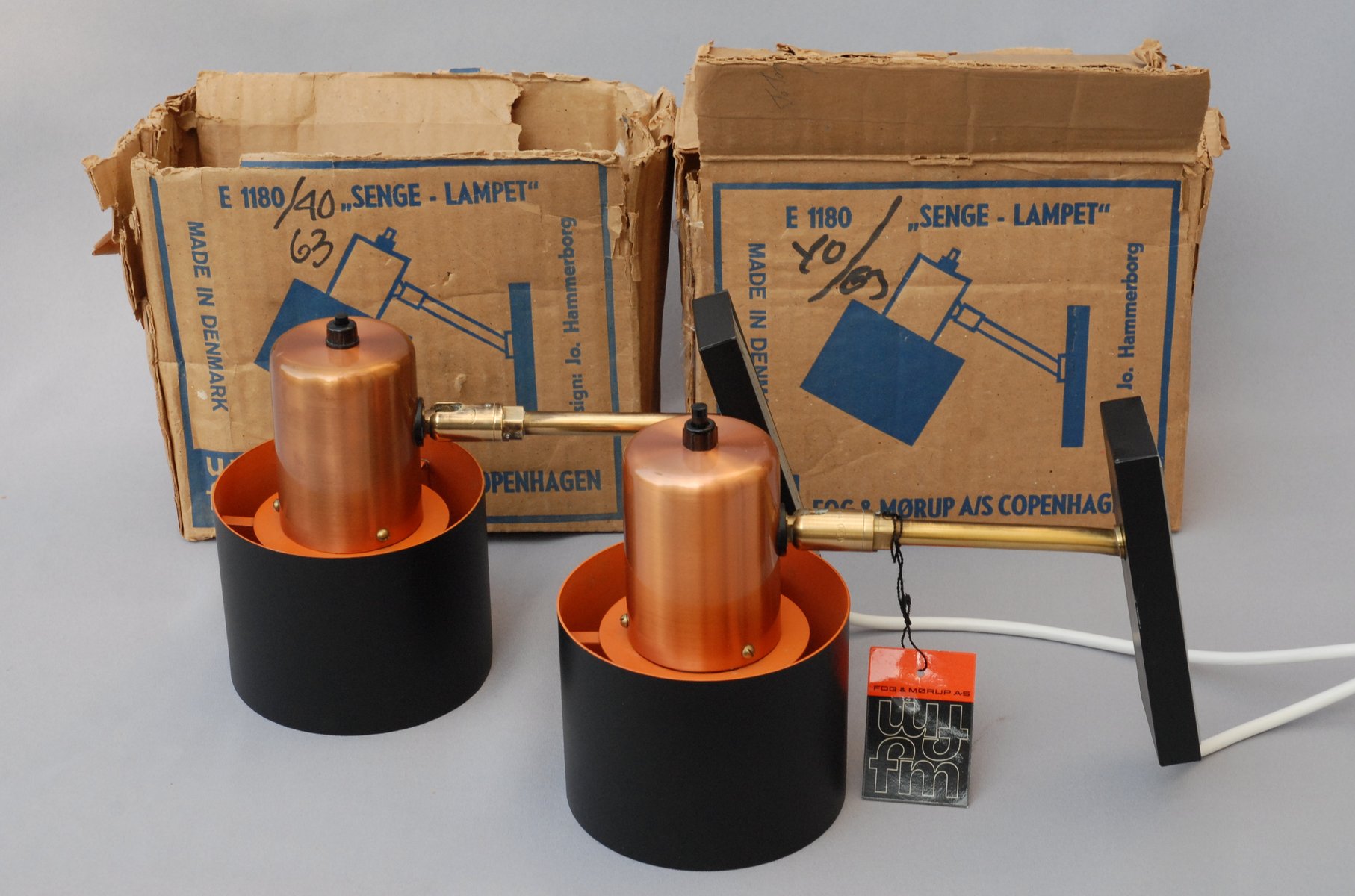 Alfa Wall Lamps by Jo Hammerborg for Fog & Morup, 1970s Set of 2