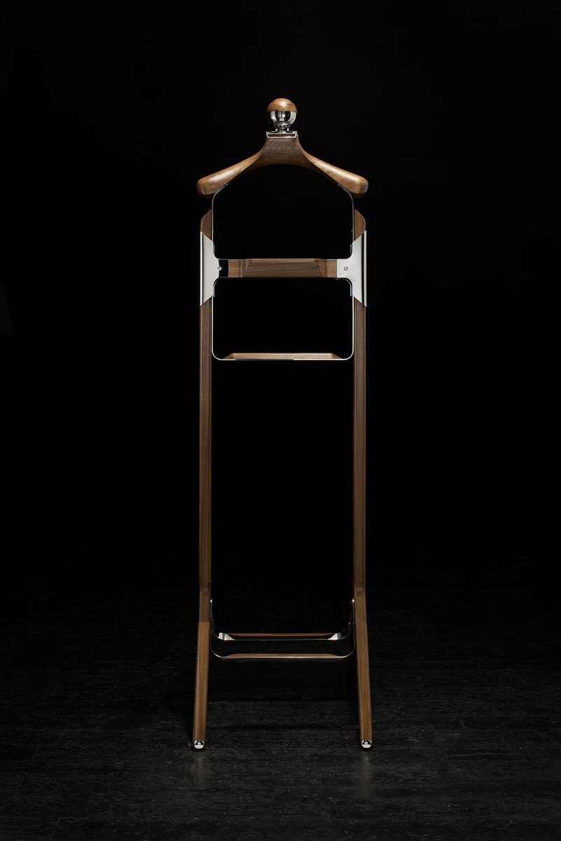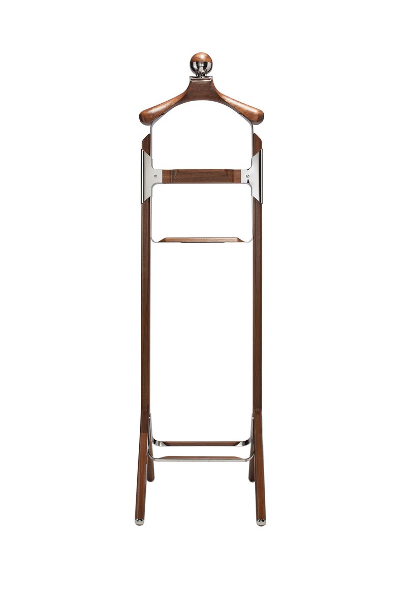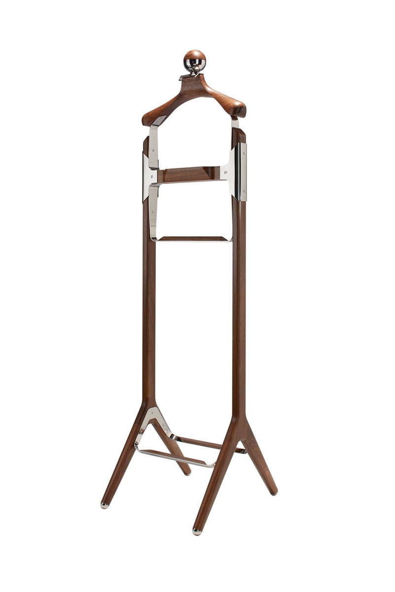 American Black Walnut & Polished Stainless Steel Permanent Style Valet Stand by Honorific
