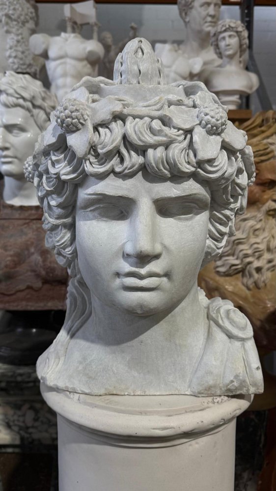 Antinous as Dionysus Bust Sculpture, 20th Century, Marble