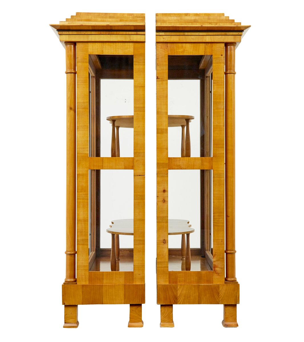 Antique Biedermeier Glazed Elm Display Cabinets, 1840, Set of 2