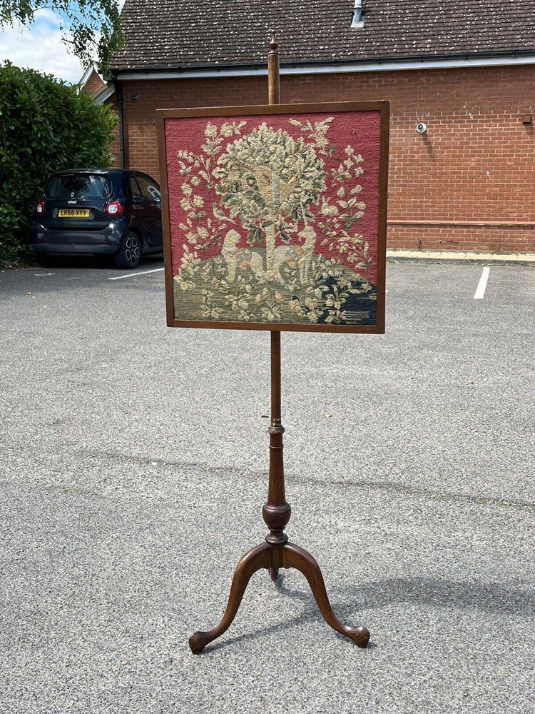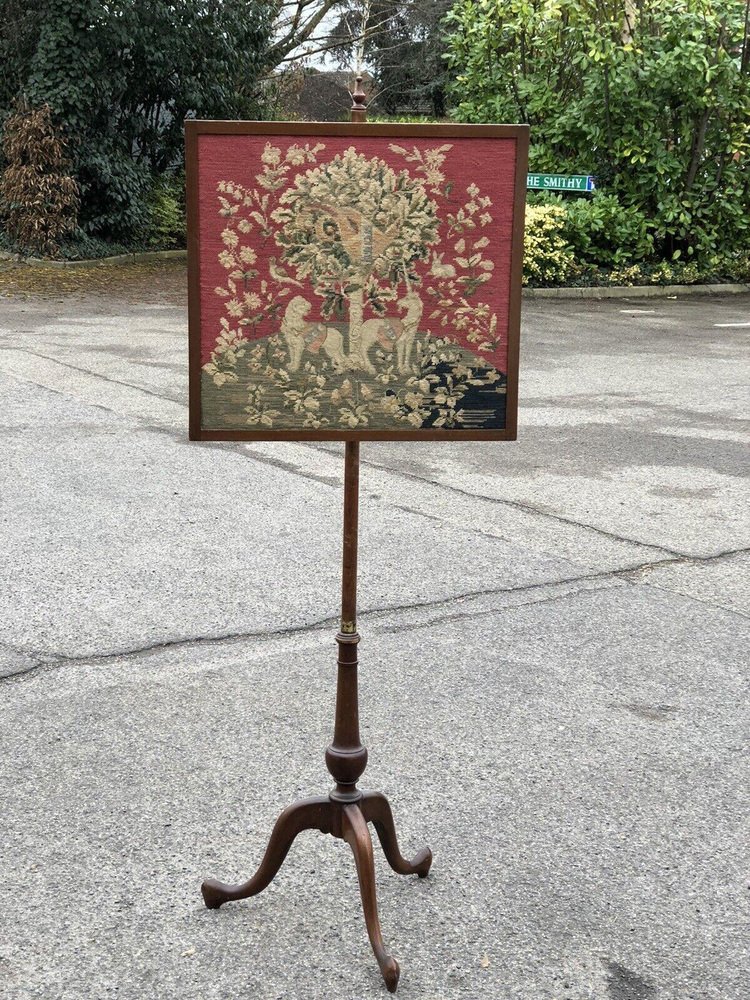 Antique Fire Screen with Tapestry
