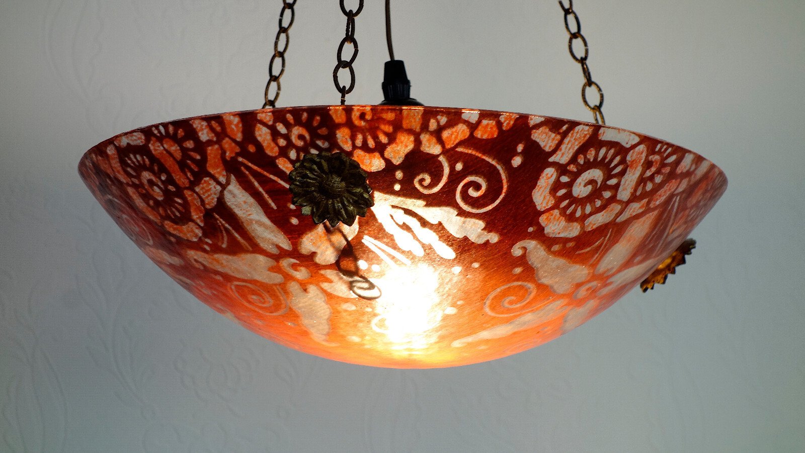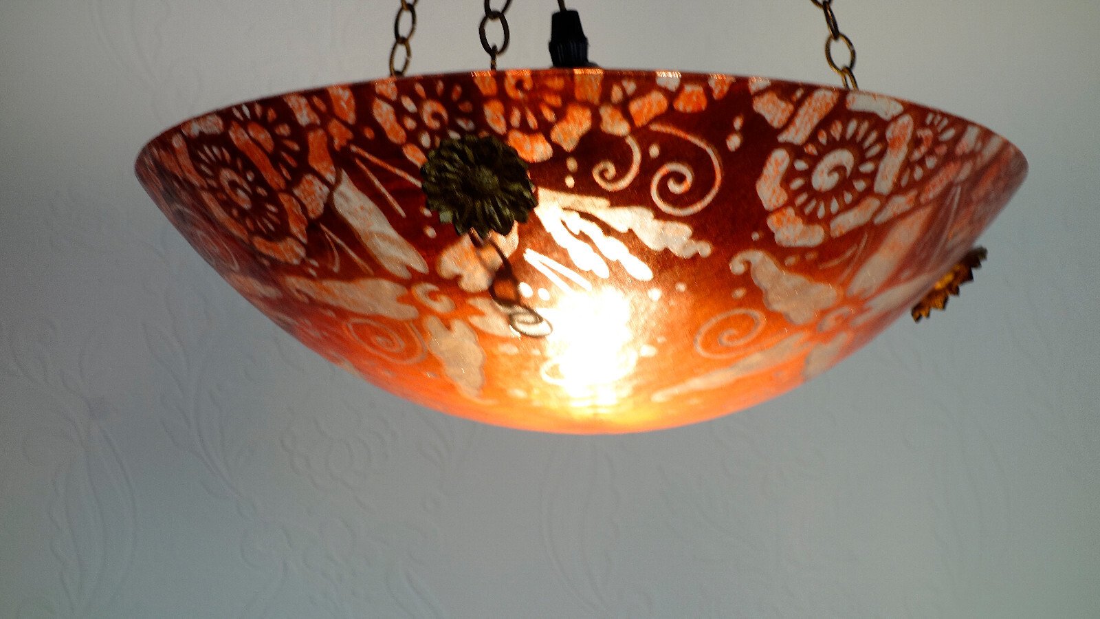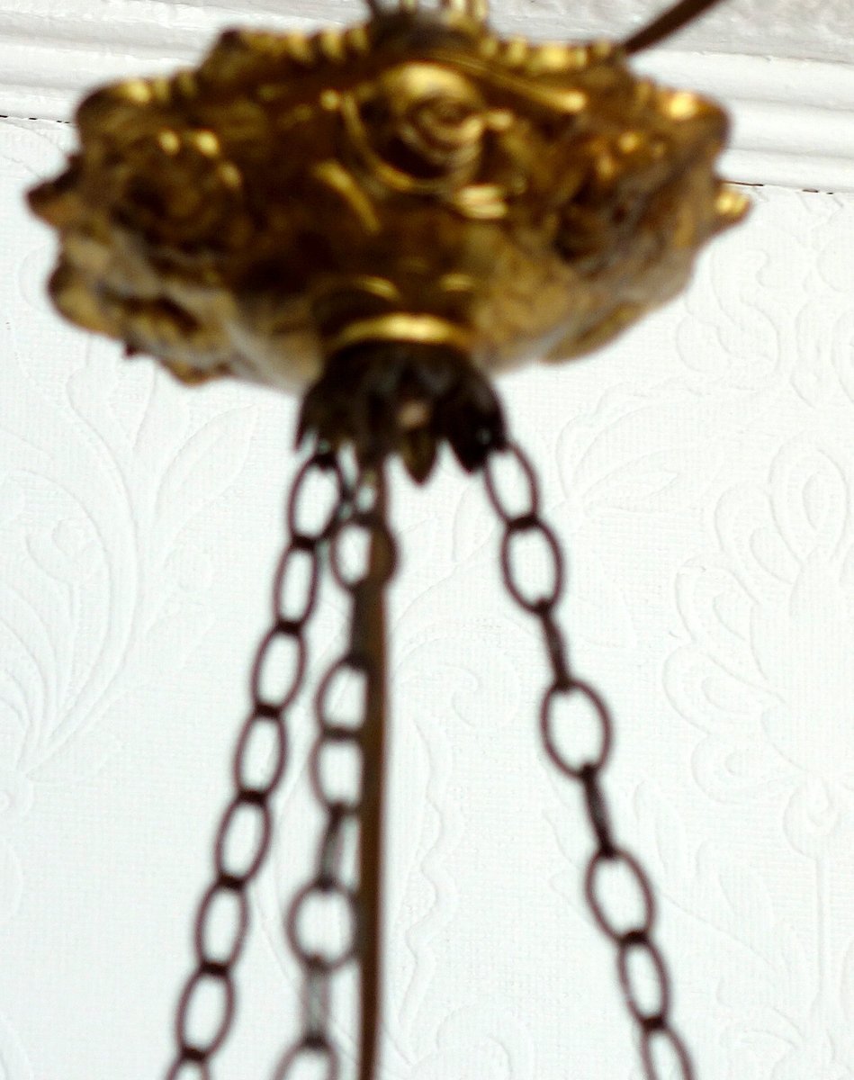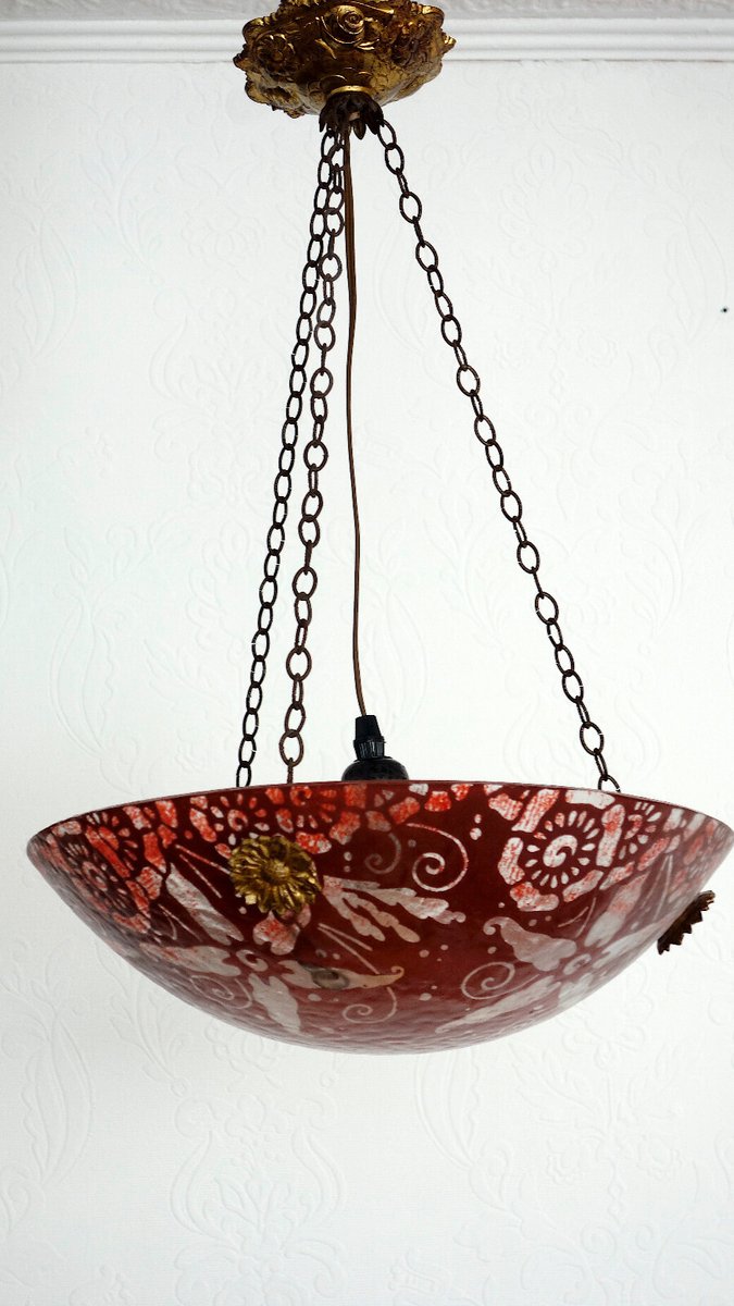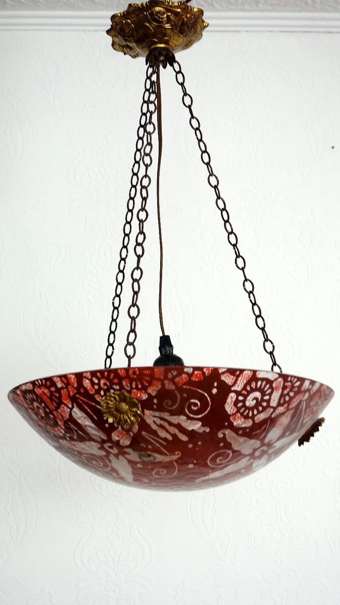 Antique French Brass and Pate de Verre Pendant, 1950s