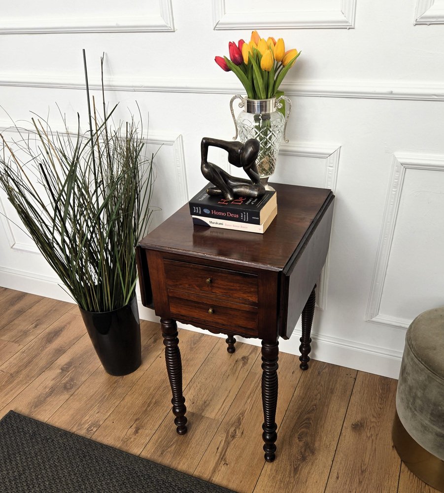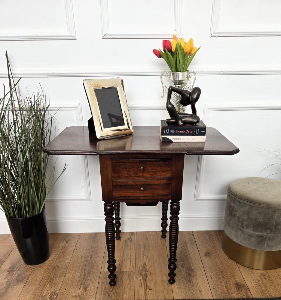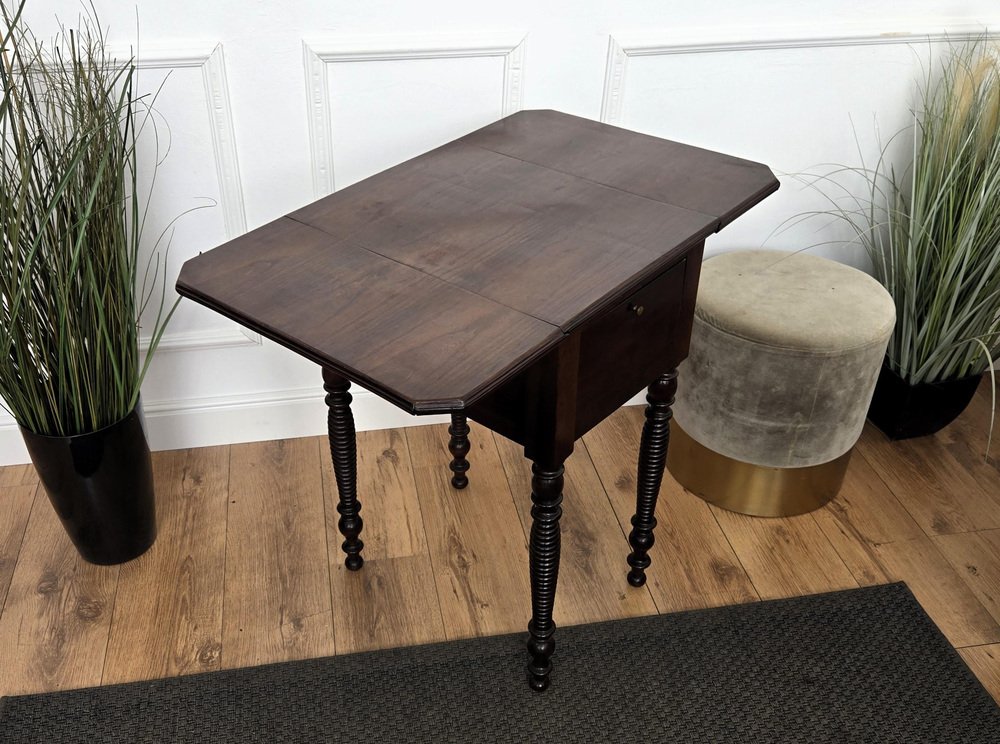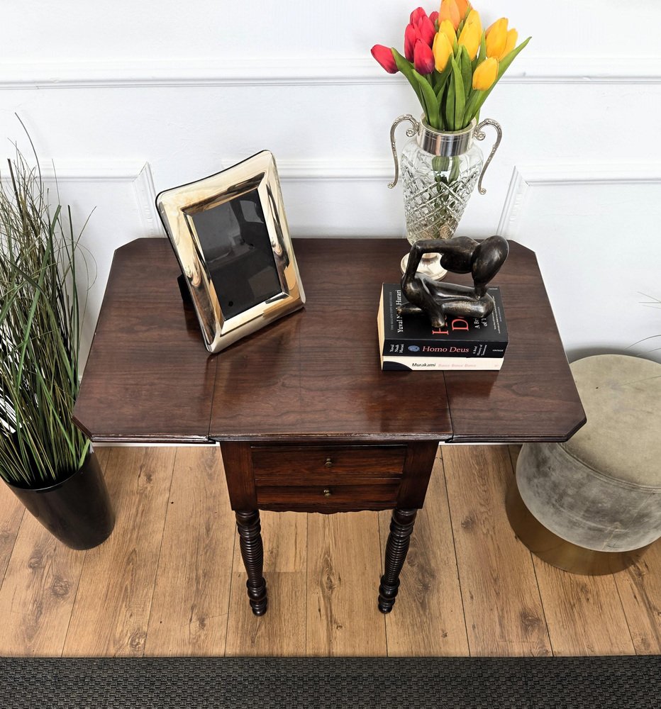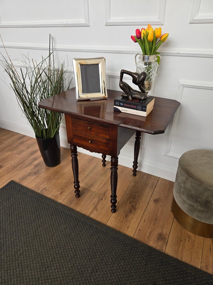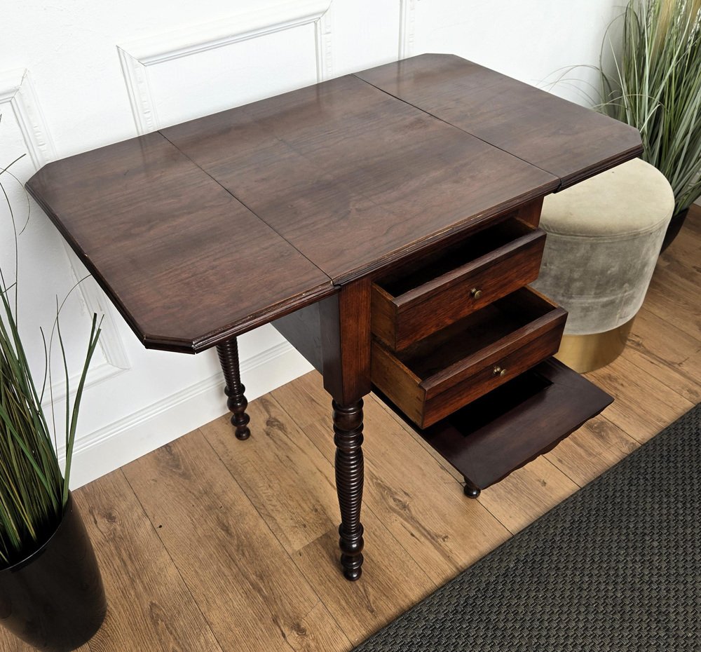 Antique Italian Walnut Drop Leaf Pembroke Console with Carved Turned Legs, 1890s