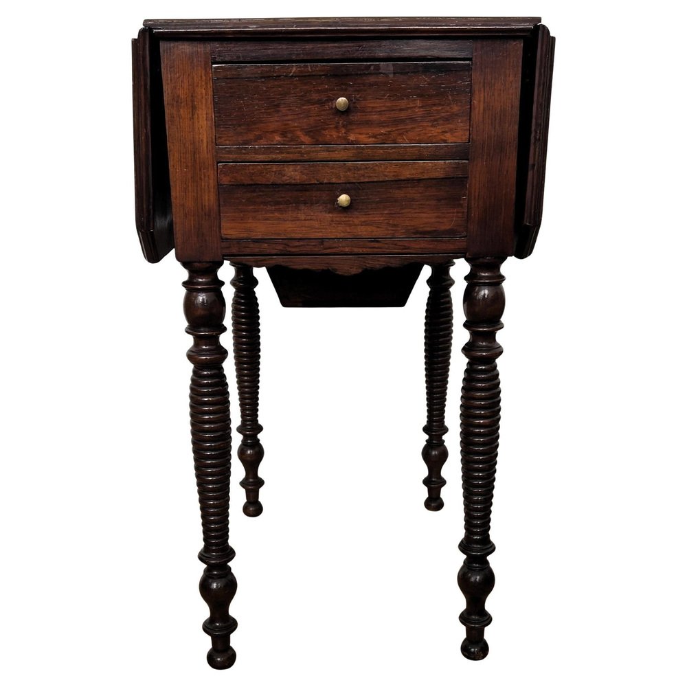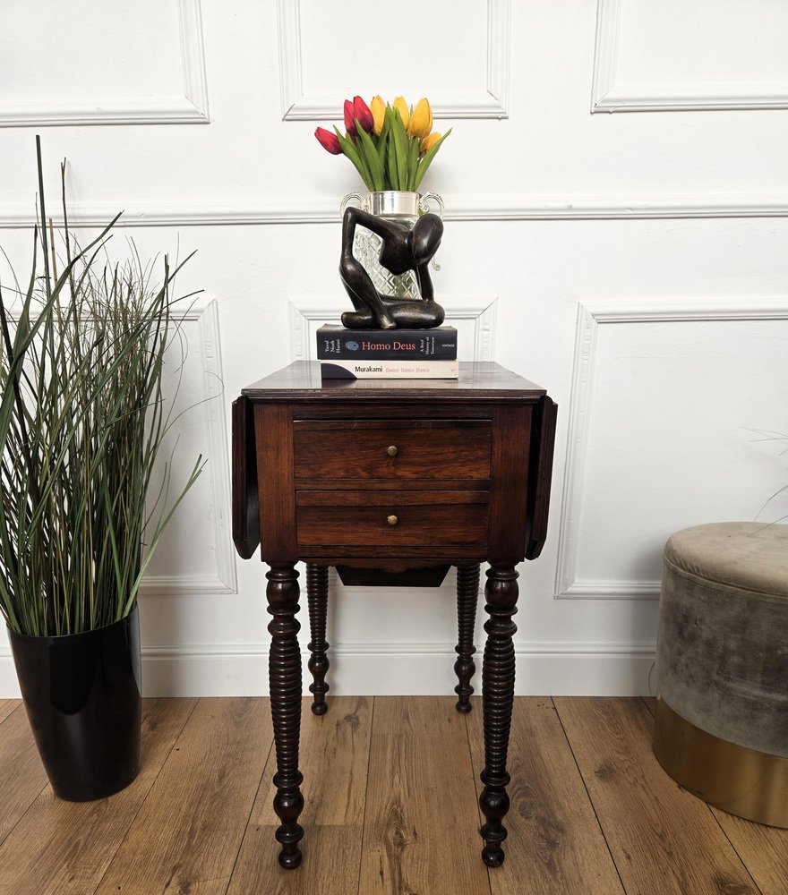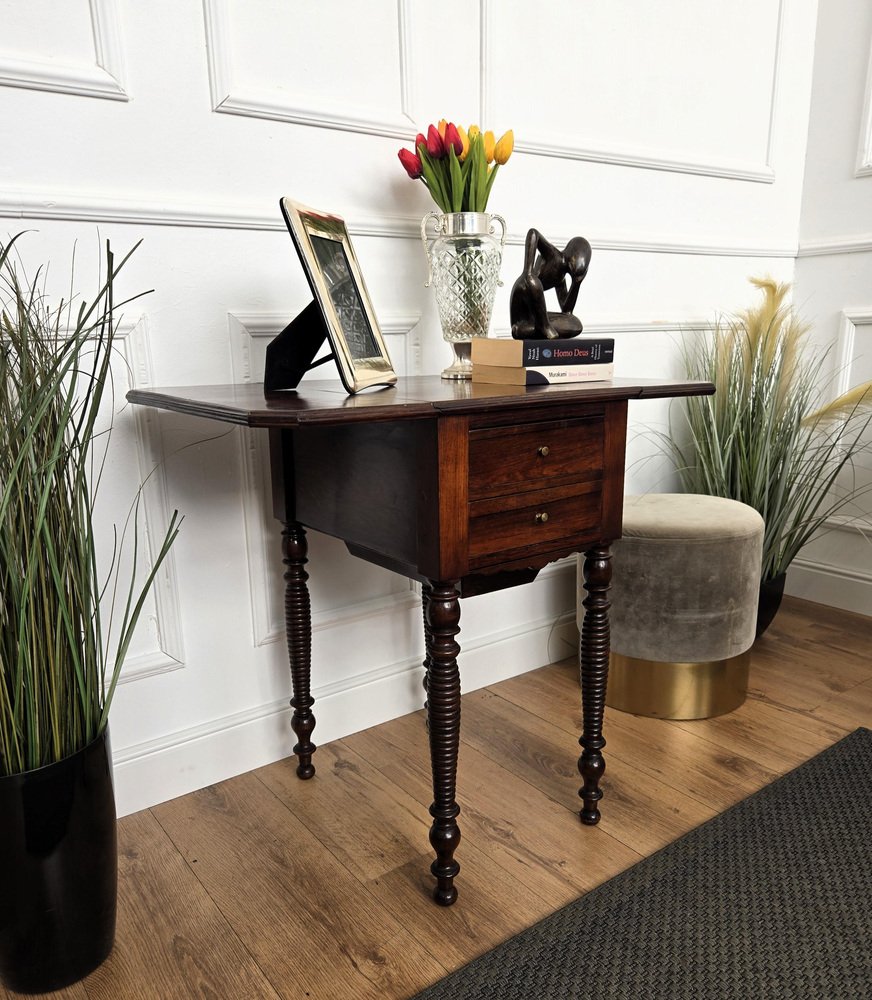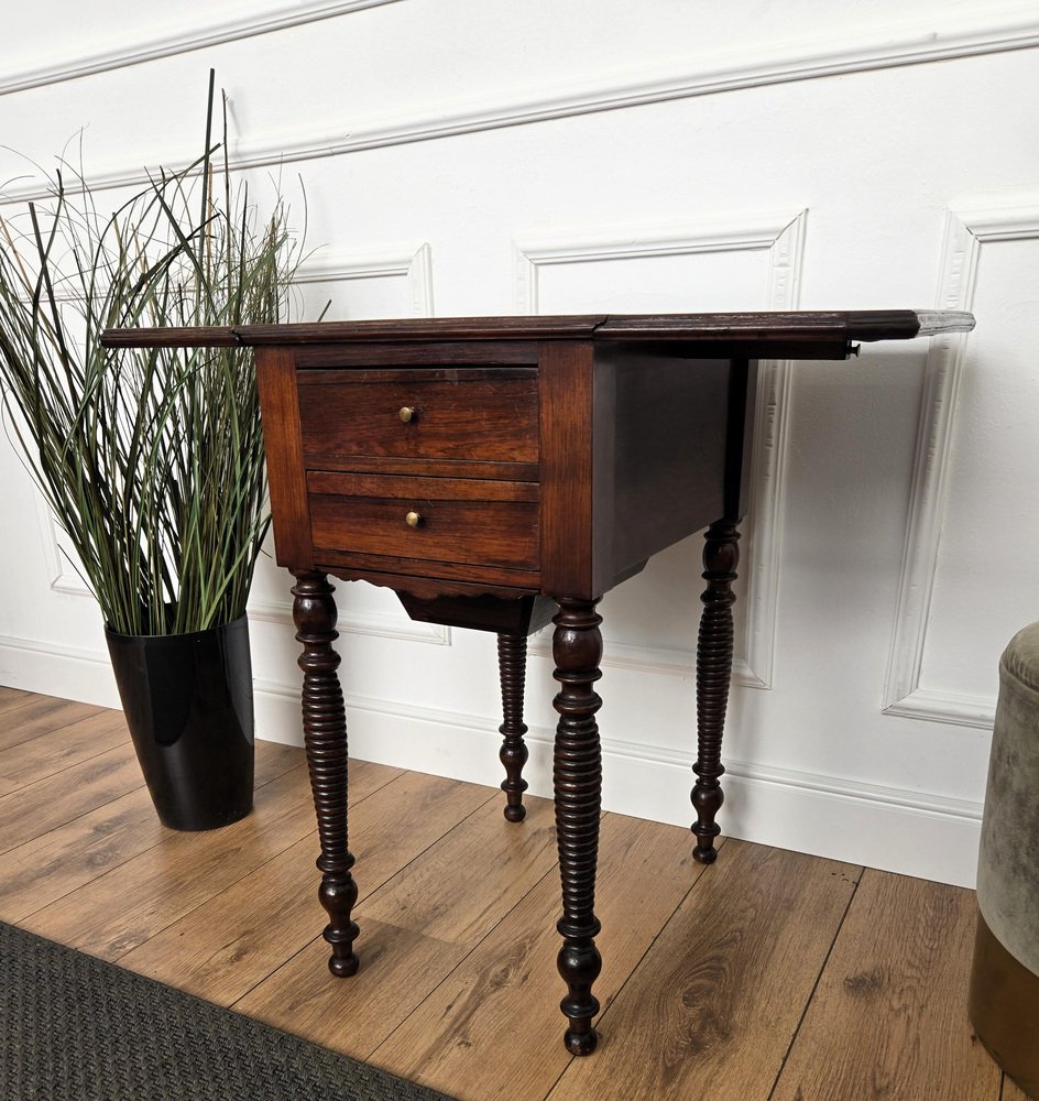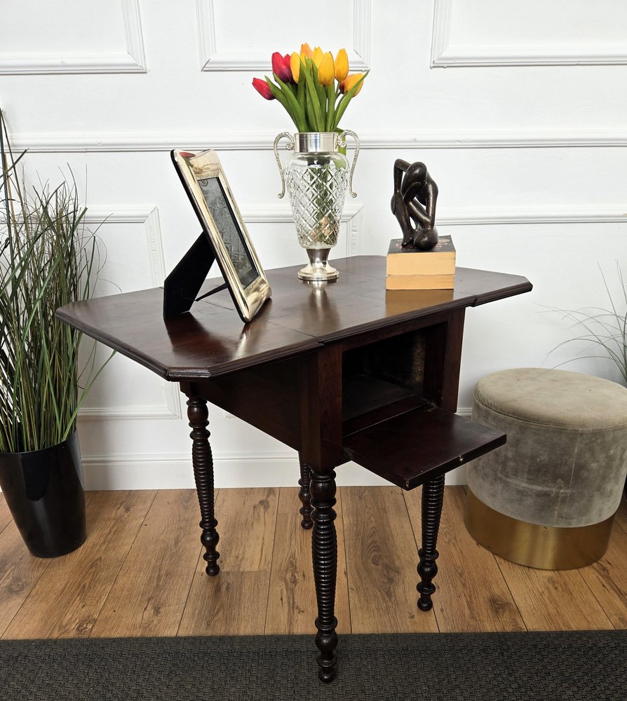 Antique Italian Walnut Drop Leaf Pembroke Console with Carved Turned Legs, 1890s