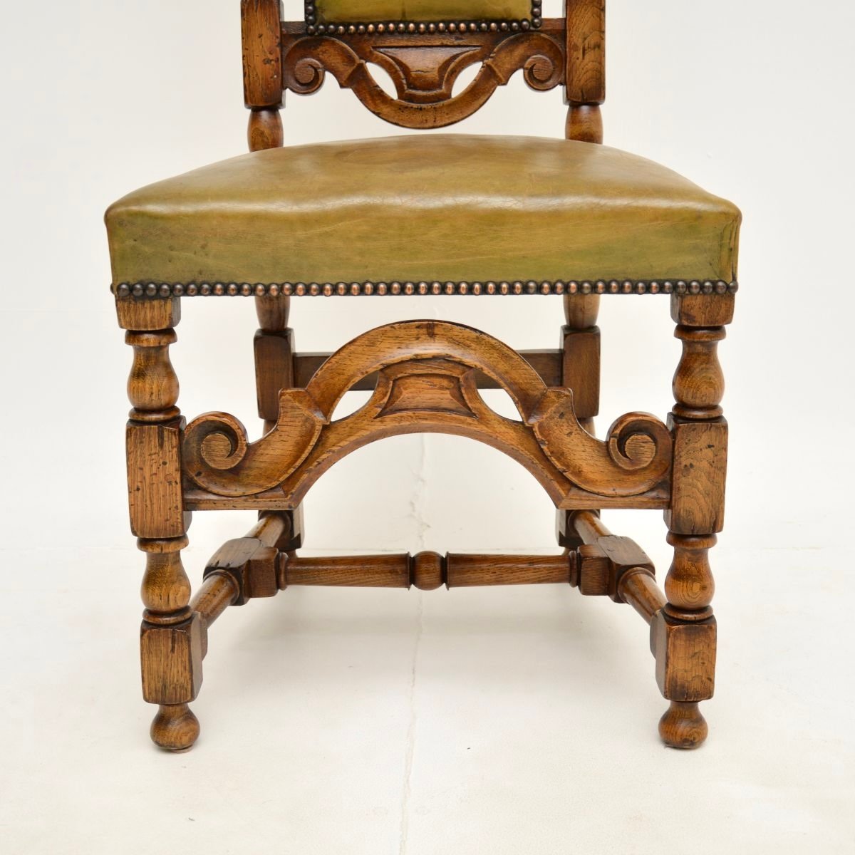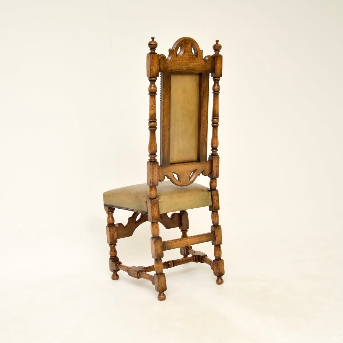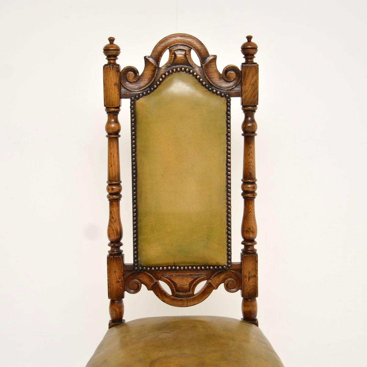 Antique Leather and Oak Side Chair, 1920s