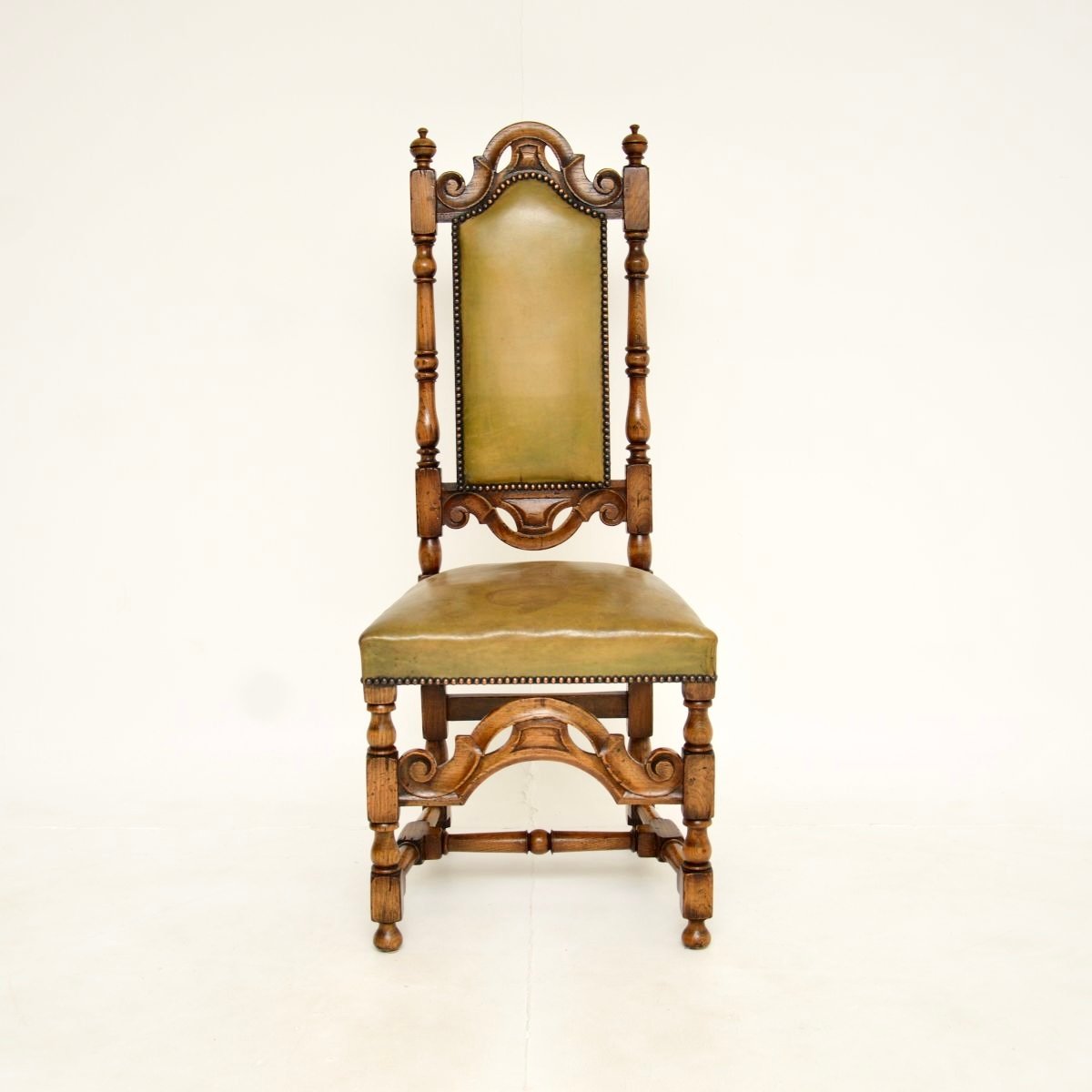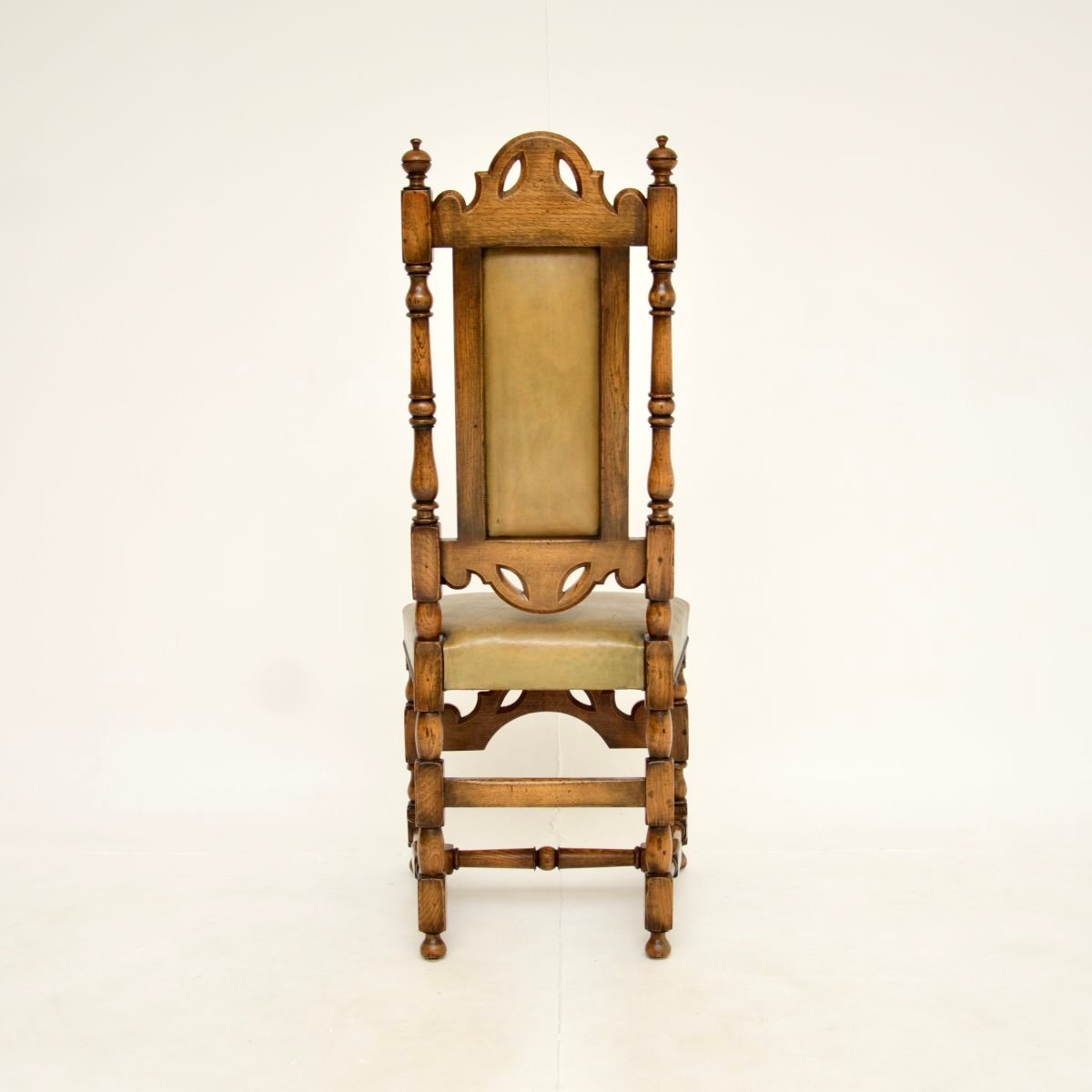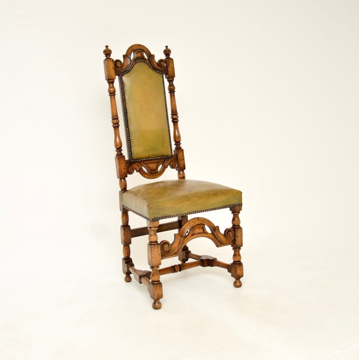 Antique Leather and Oak Side Chair, 1920s