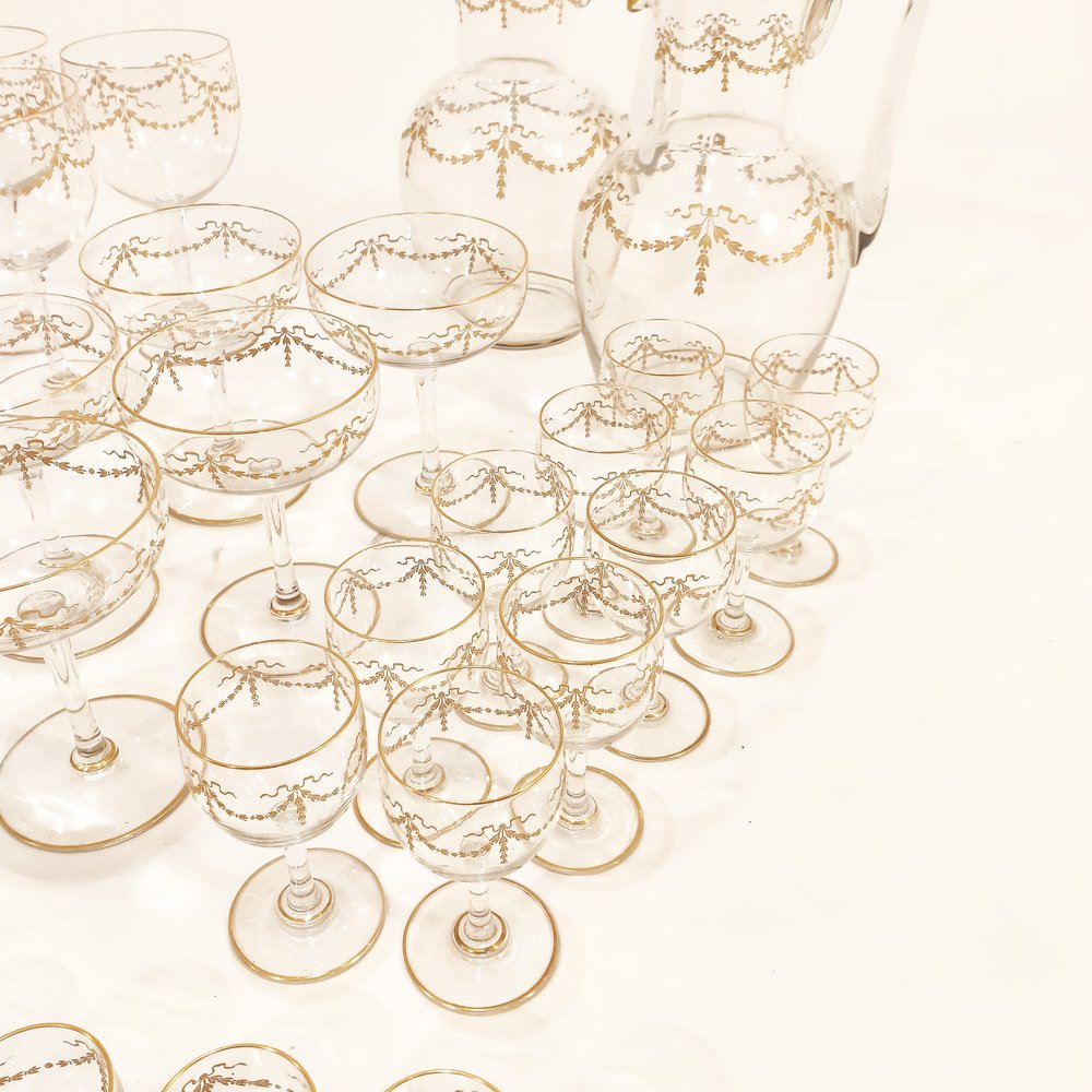 During the 1920s and 1930s, Baccarat modernized its look with pieces like the Paraison Collection, commissioned in 1933 for the Maharajah of Indore’s Manik Bagh Art Deco palace, and monogrammed glasses from the François Villon Collection, commissioned in 1936 by President Franklin D. Roosevelt.