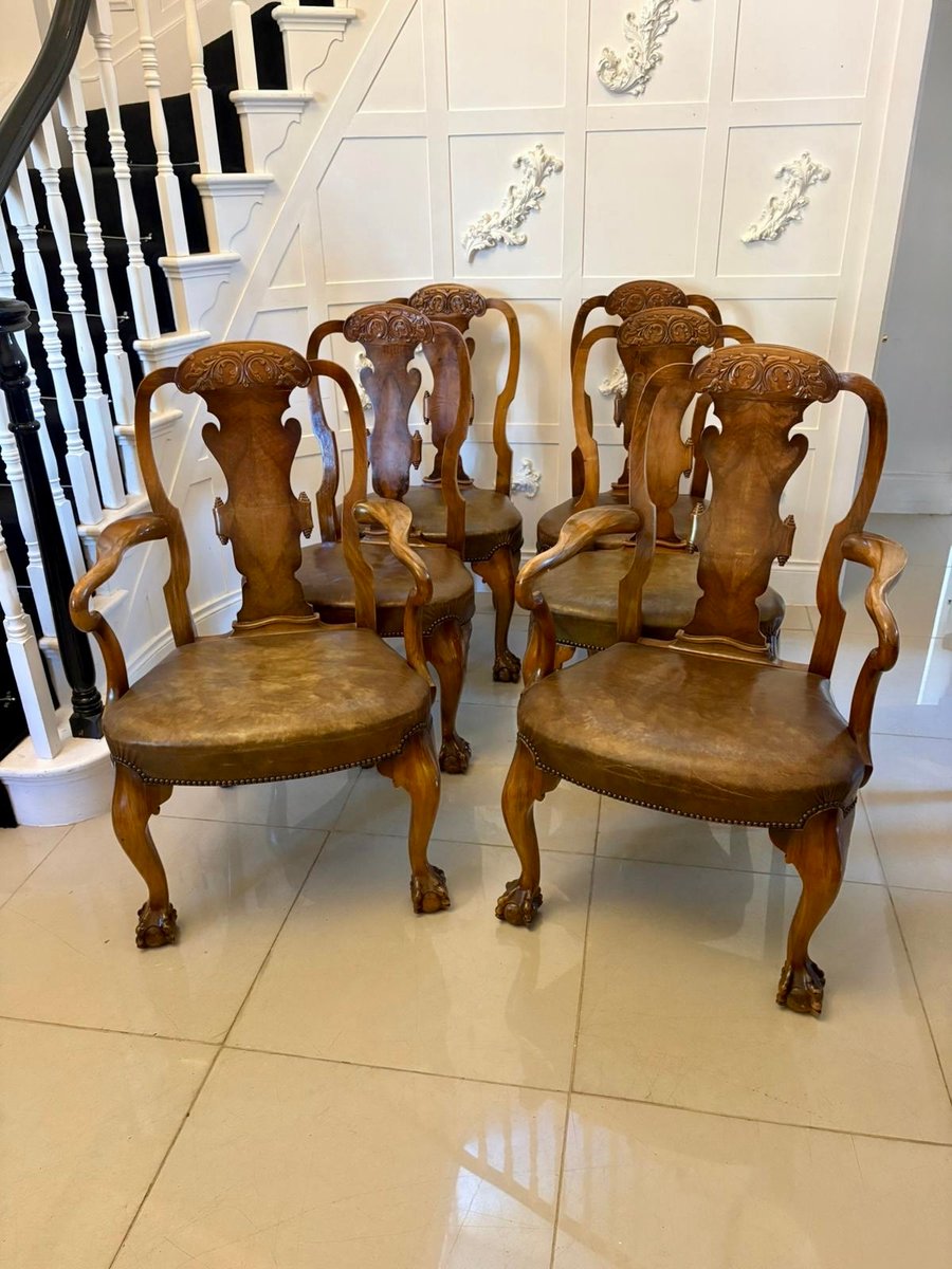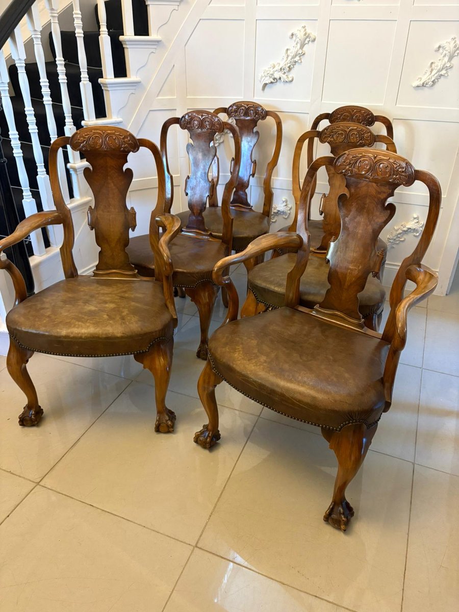 Antique Victorian Carved Walnut Dining Chairs, 1890s, Set of 6
