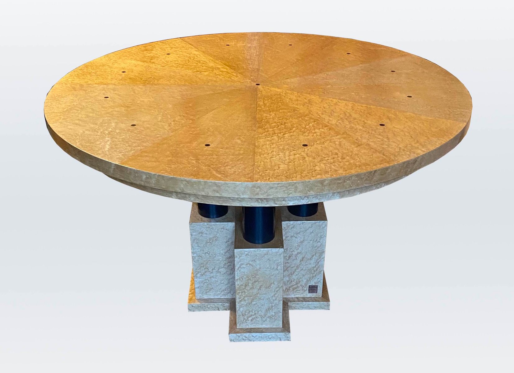 In the 1980s, Graves helped shift the architectural conversation from pure forms to a new language of hybrid, namely postmodern design. He espoused a humanistic approach, bringing color and art back into architecture. During this period, famed Italian architect Ettore Sottsass asked Graves to join his artistic collective Memphis, a tribe of radical, like-minded designers who questioned the conventional view of design and who helped to define the postmodern style. Graves contributed to Memphis with several designs, including the Plaza Dressing Table (1981) and the Stanhope Bed (1982). Graves’ seminal architectural work came in 1982, with the opening of Oregon’s Portland Building. The building received mixed reviews, but Graves’ postmodern building was recognized for its historical importance, earning an award from the American Institute of Architects in 1983.