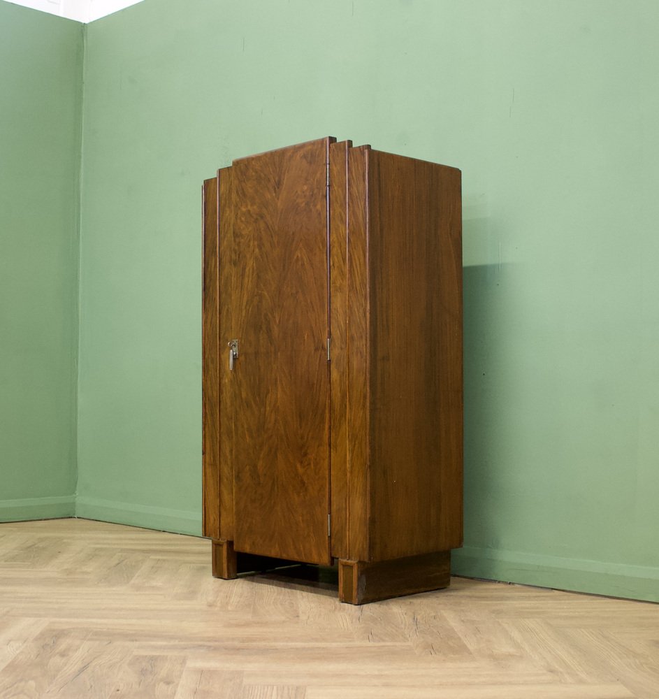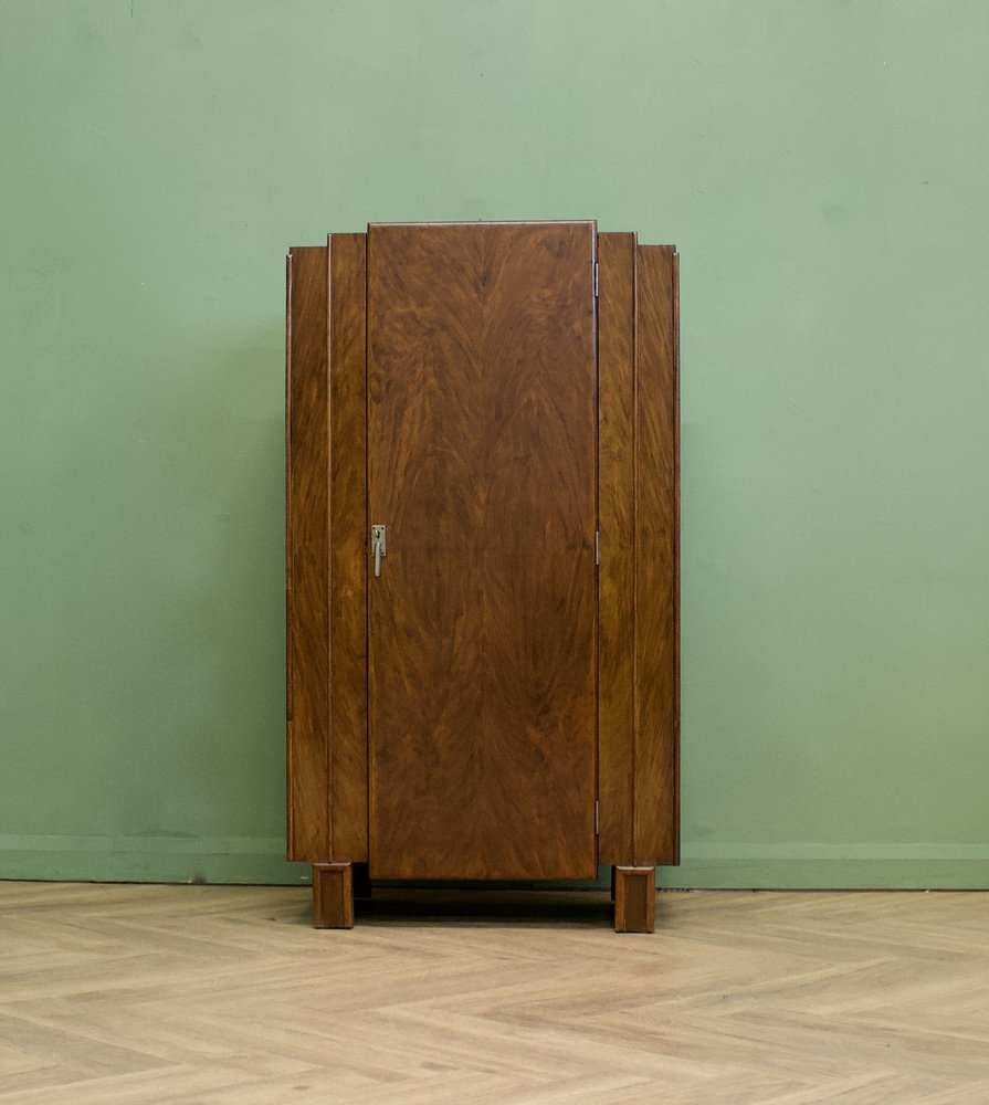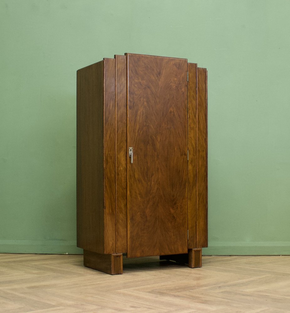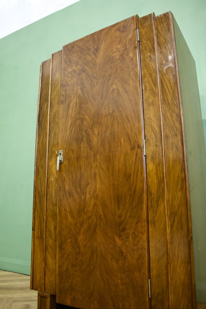Art Deco British Burr Walnut Tallboy Linen Cabinet, 1930s