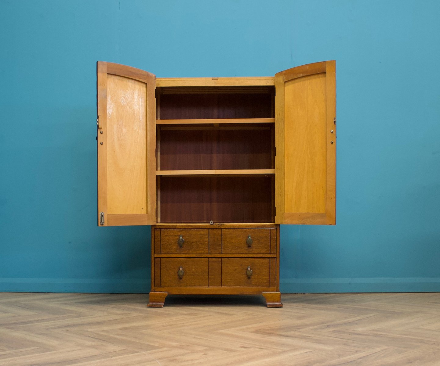 Art Deco Oak Tallboy by Harris Lebus for Utility Furniture, 1940s
