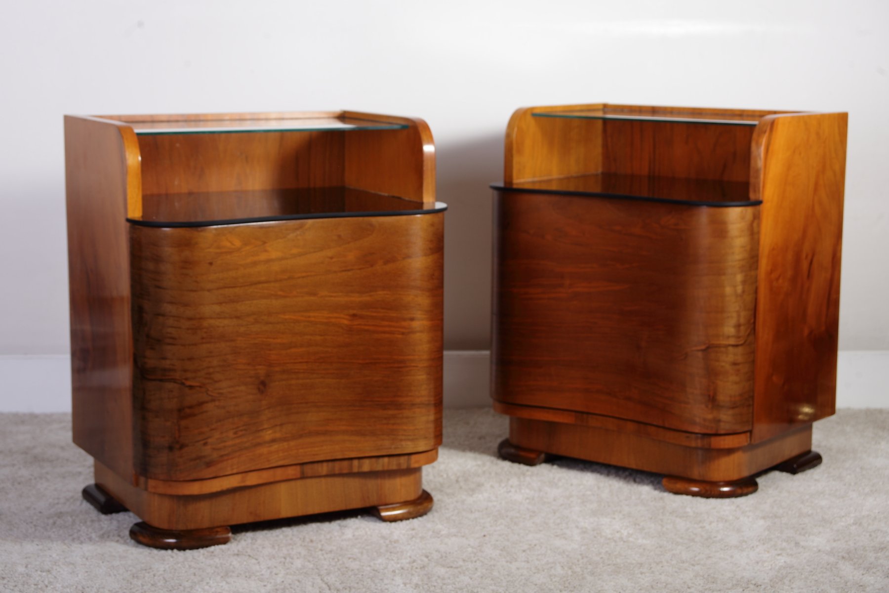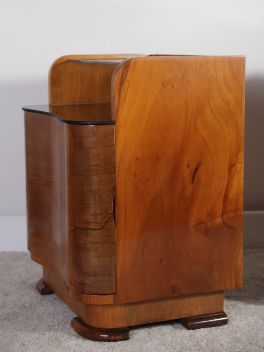 Art Deco Walnut Bedside Tables by Jindrich Halabala for Up Zavody, 1940s, Set of 2