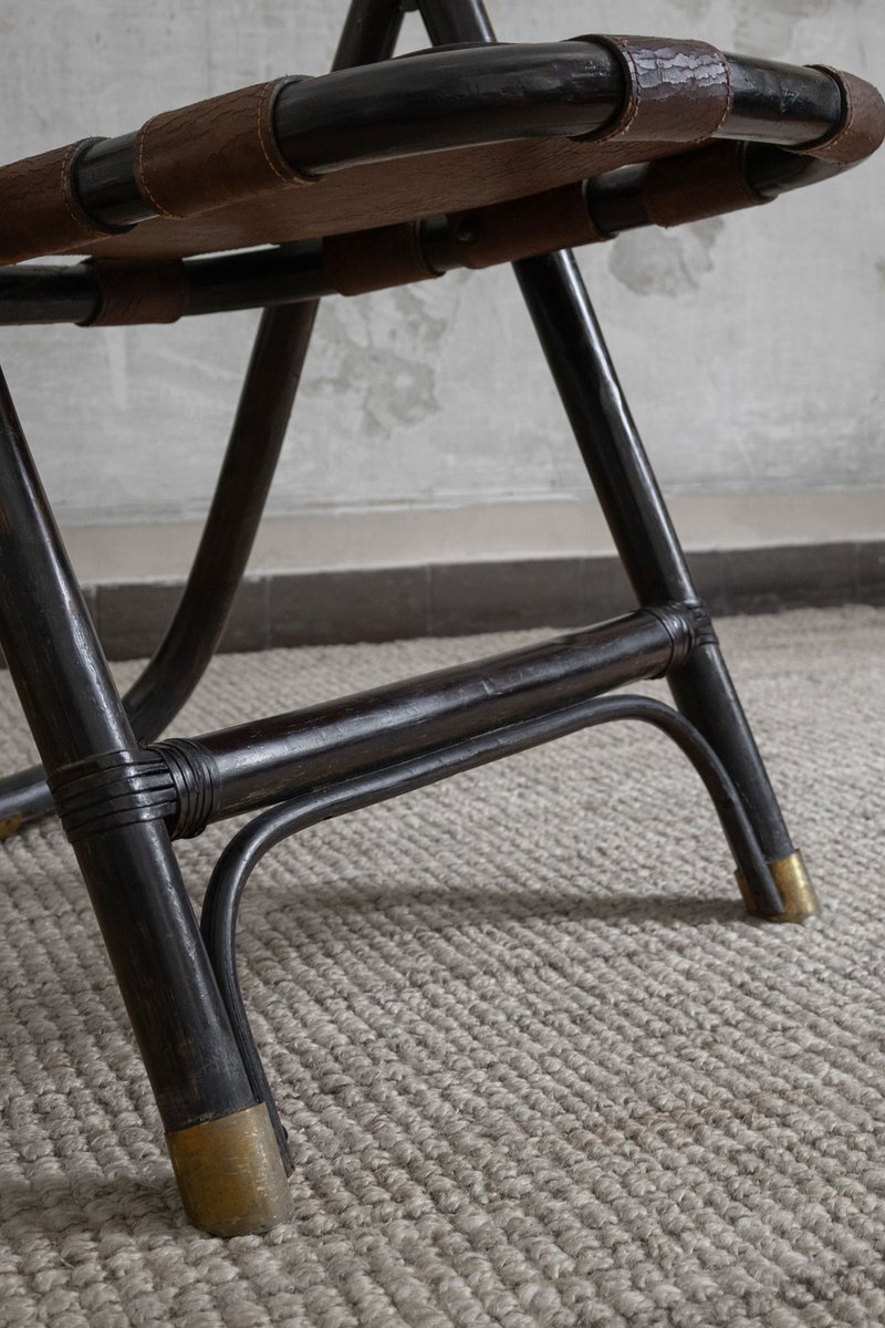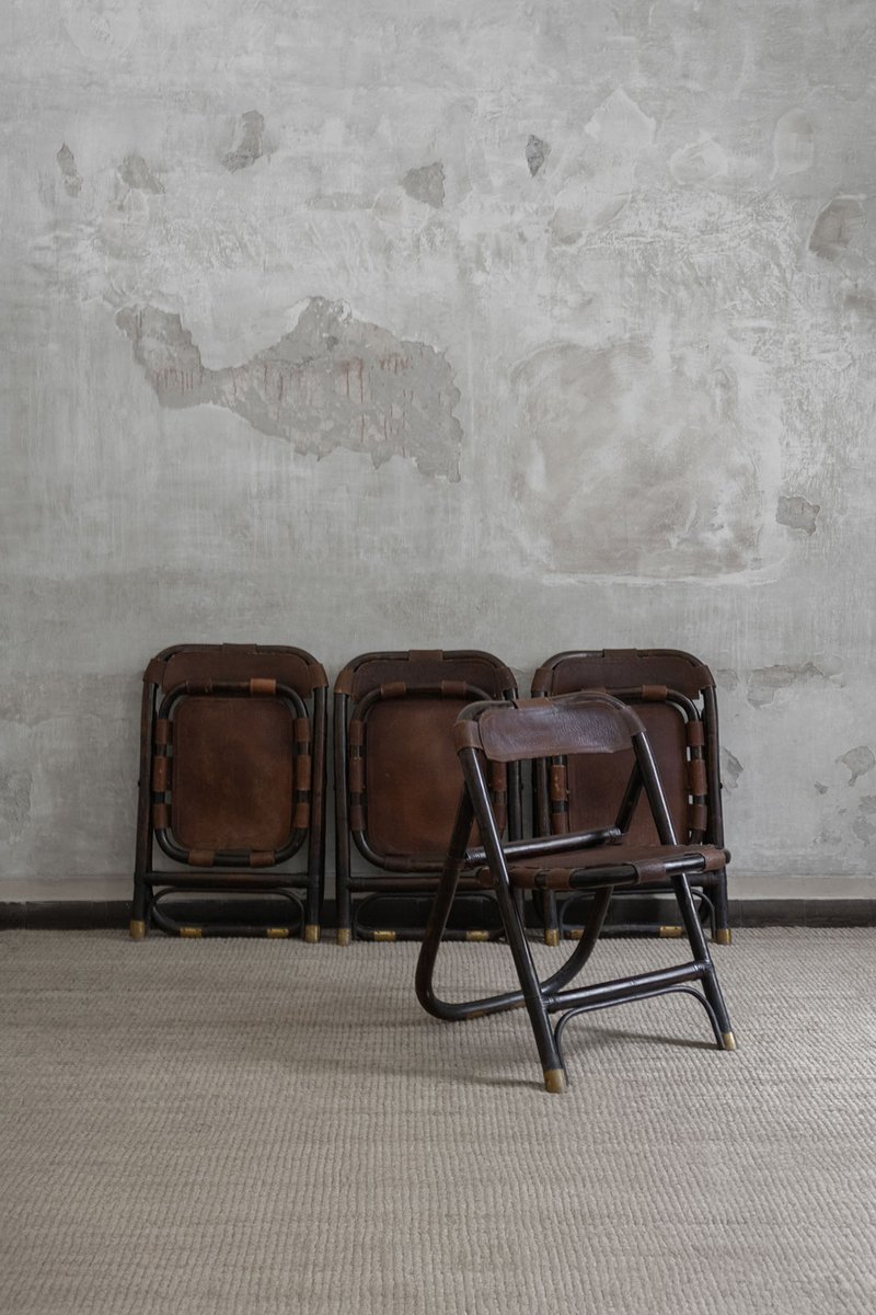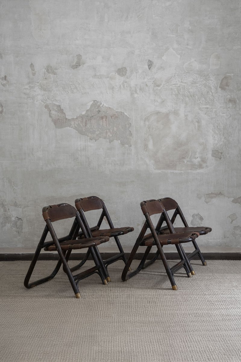 Bamboo and Leather Chairs attributed to Tito Agnoli, 1970s, Set of 4