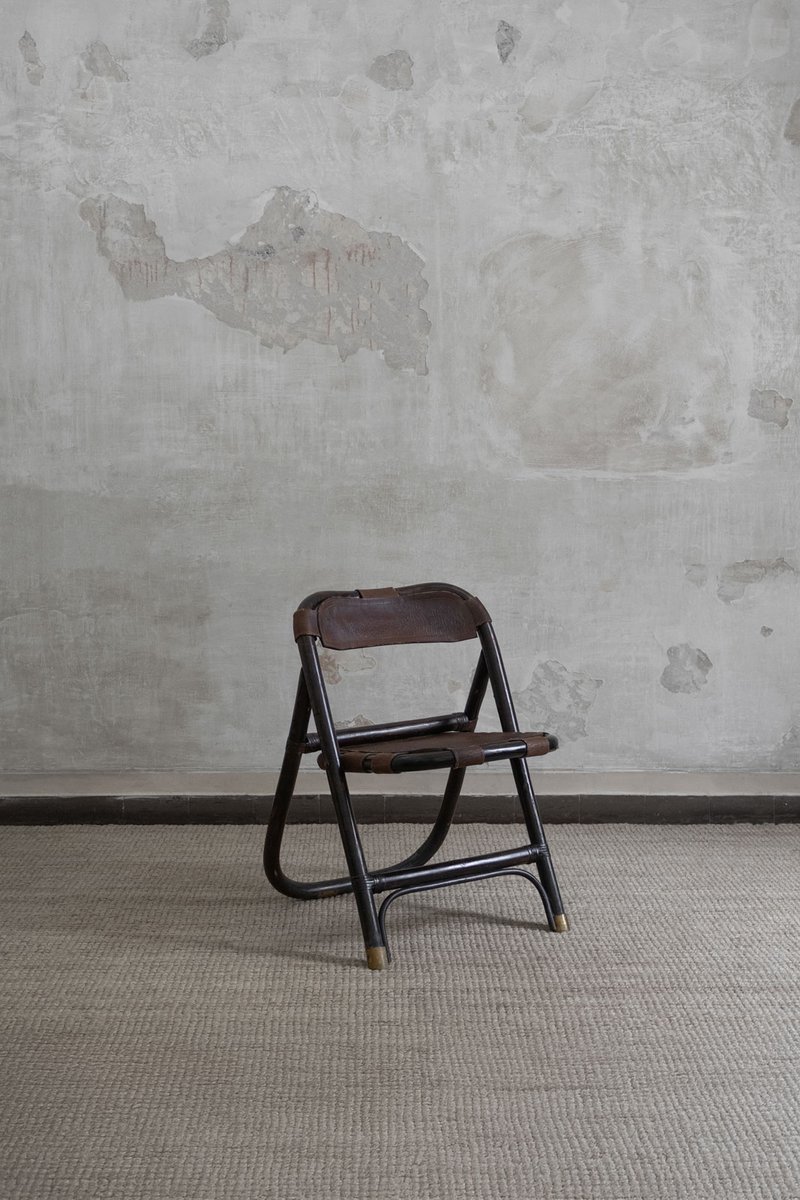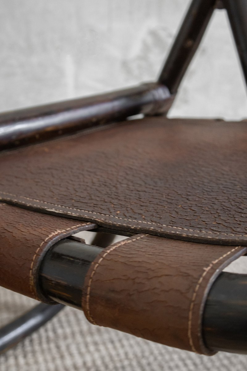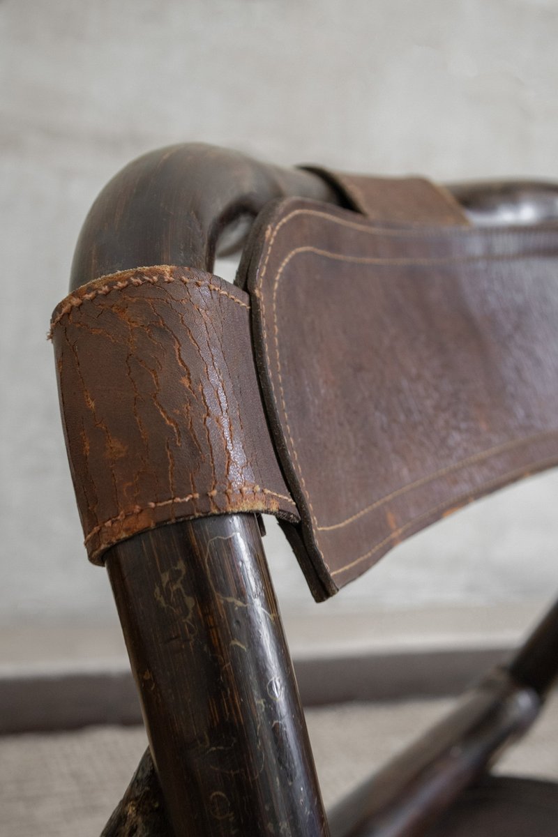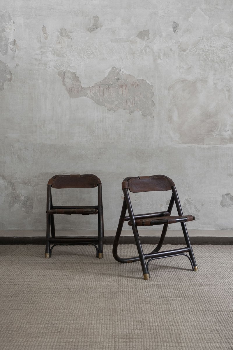 Bamboo and Leather Chairs attributed to Tito Agnoli, 1970s, Set of 4