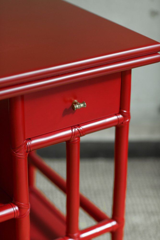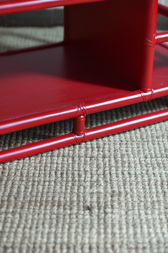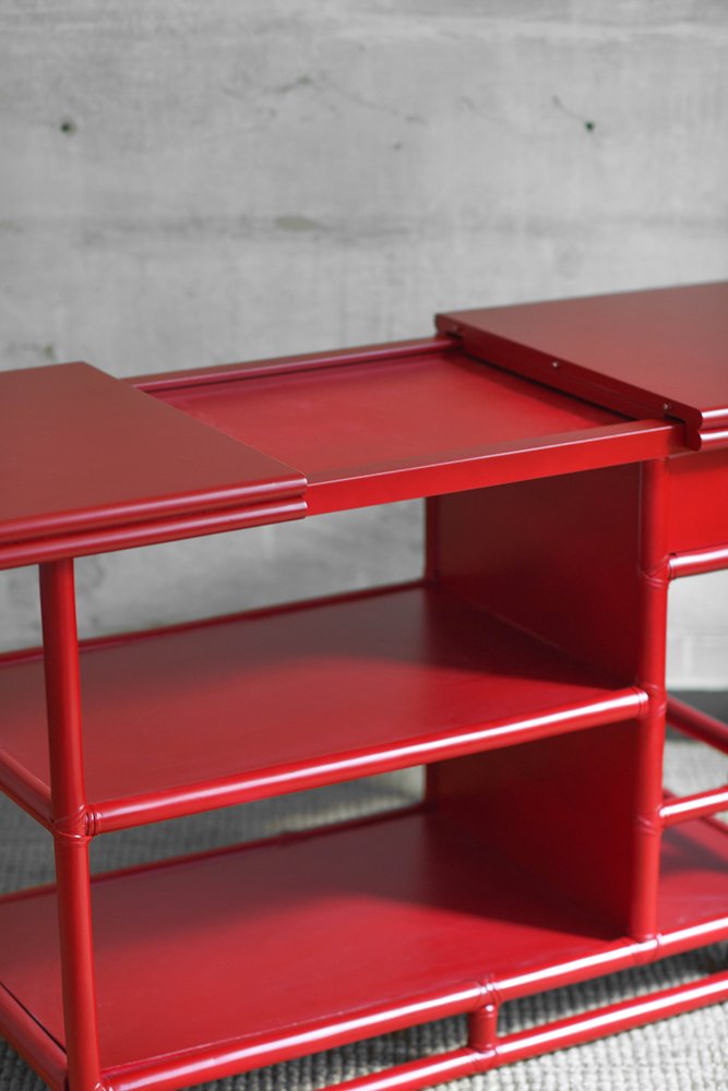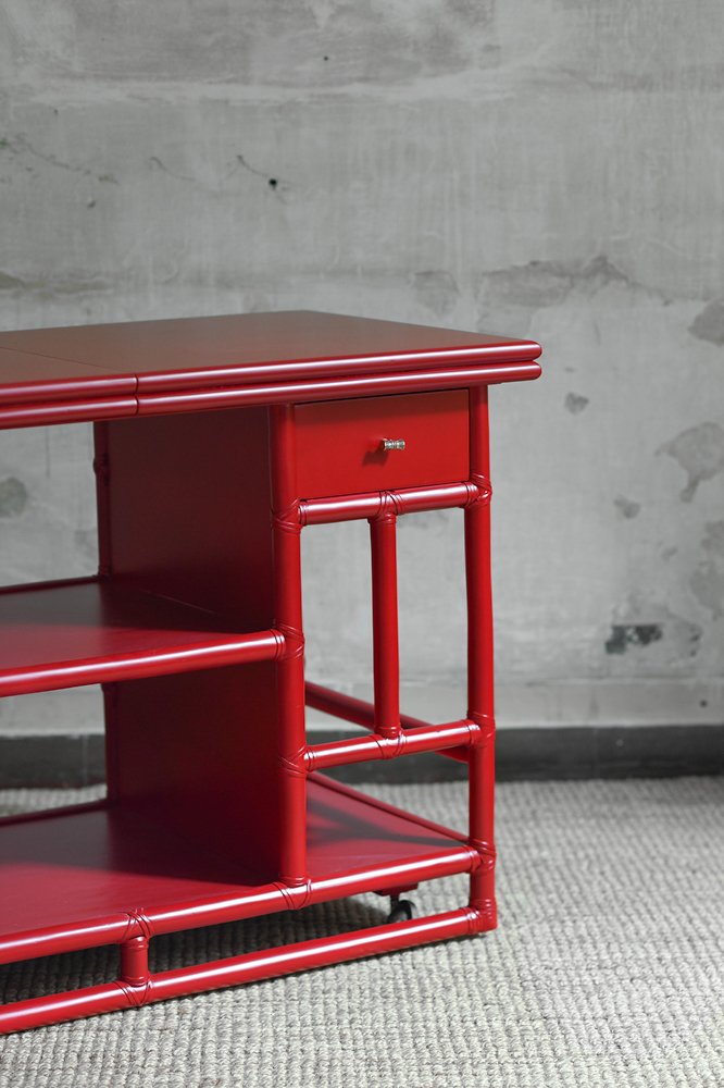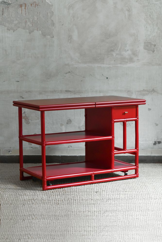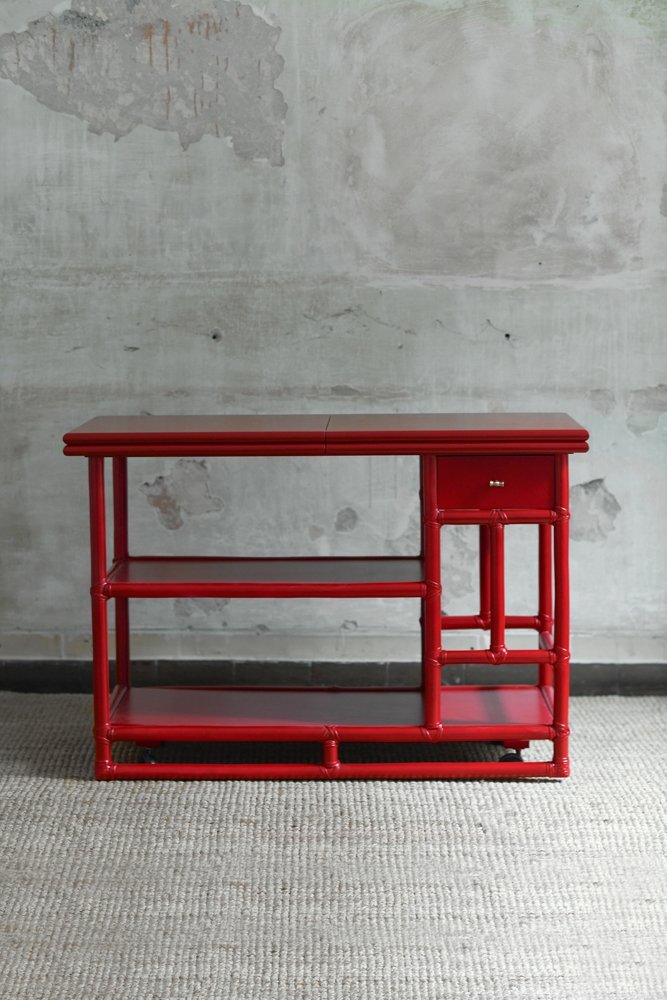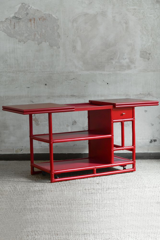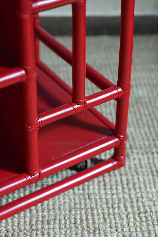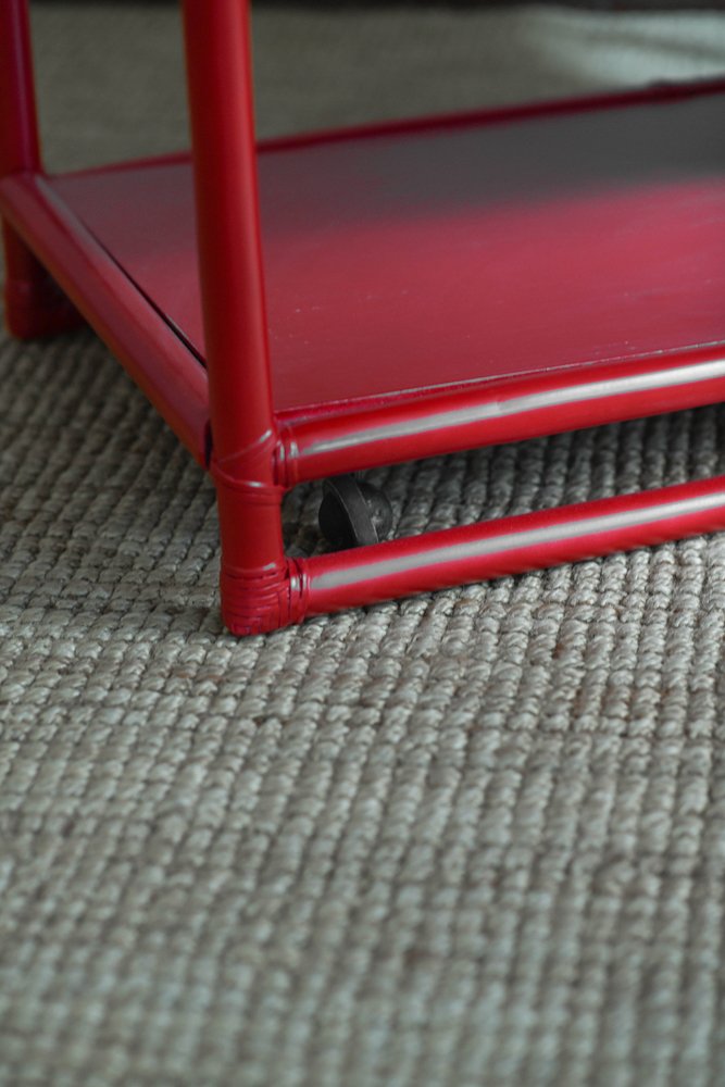 Bamboo Cart Server in China Red Lacquer by Lyda Levi for McGuire, San Francisco, 1970s
