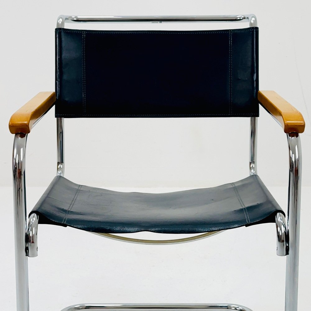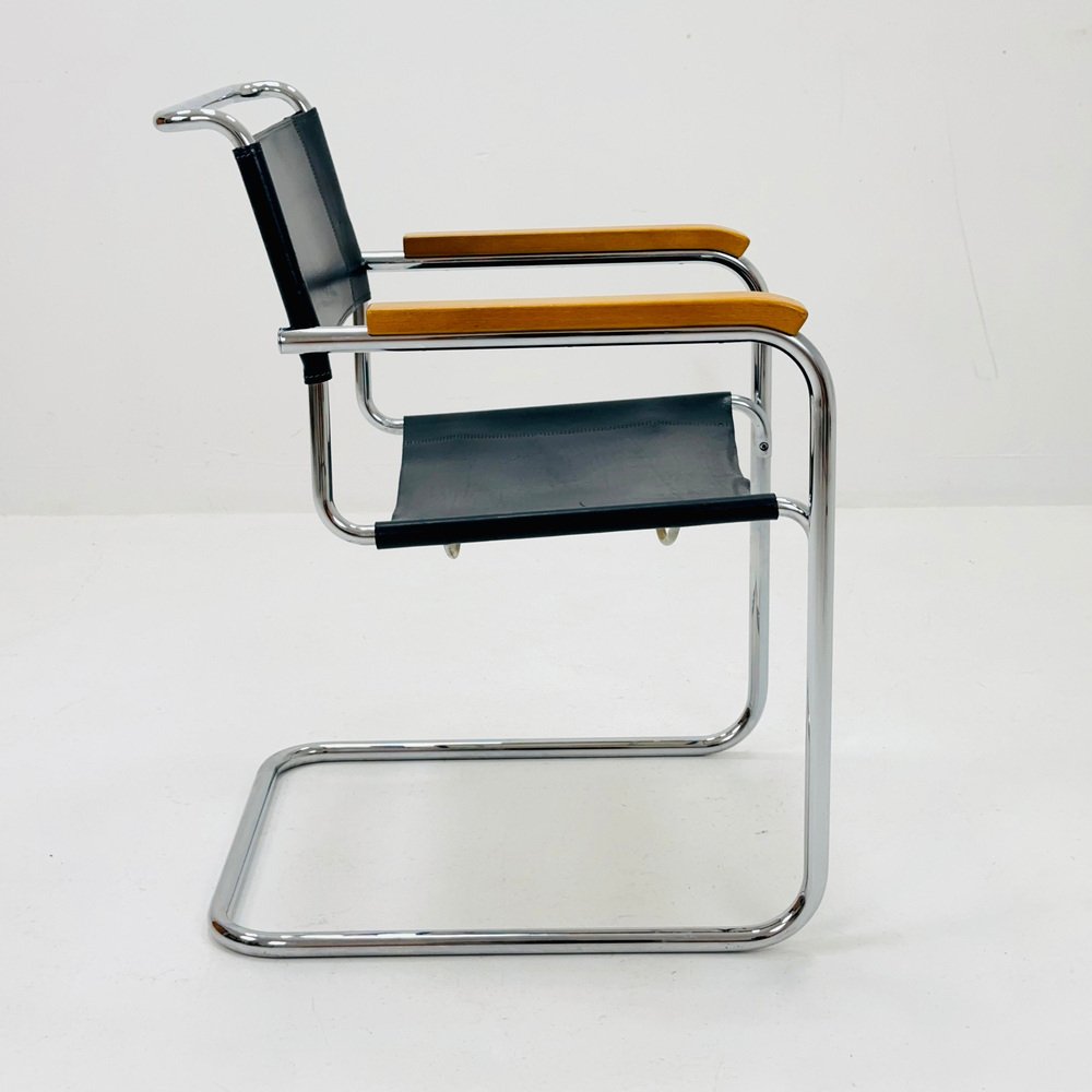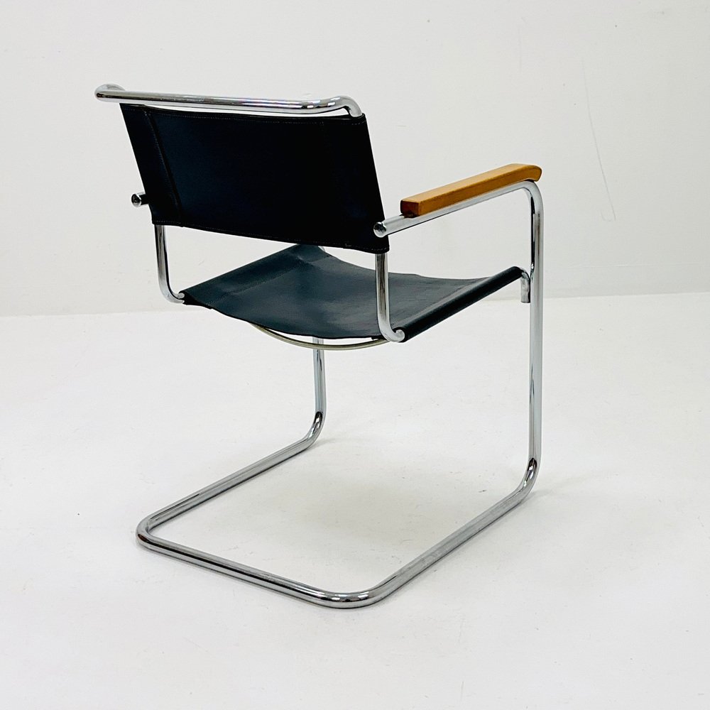 Bauhaus Black Leather S34 Armchair by Mart Stam for Thonet, 1980s