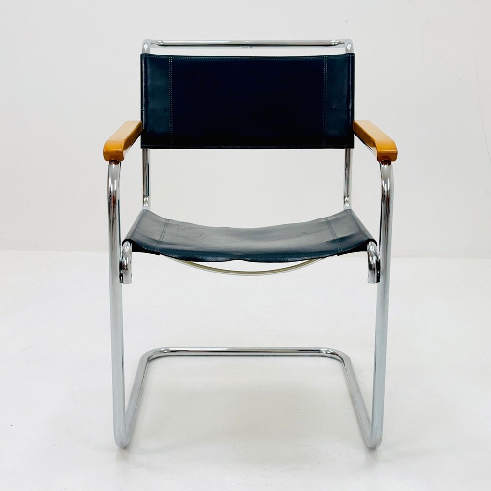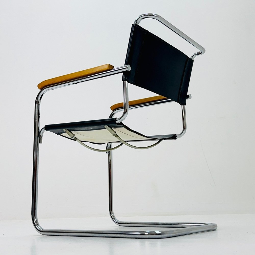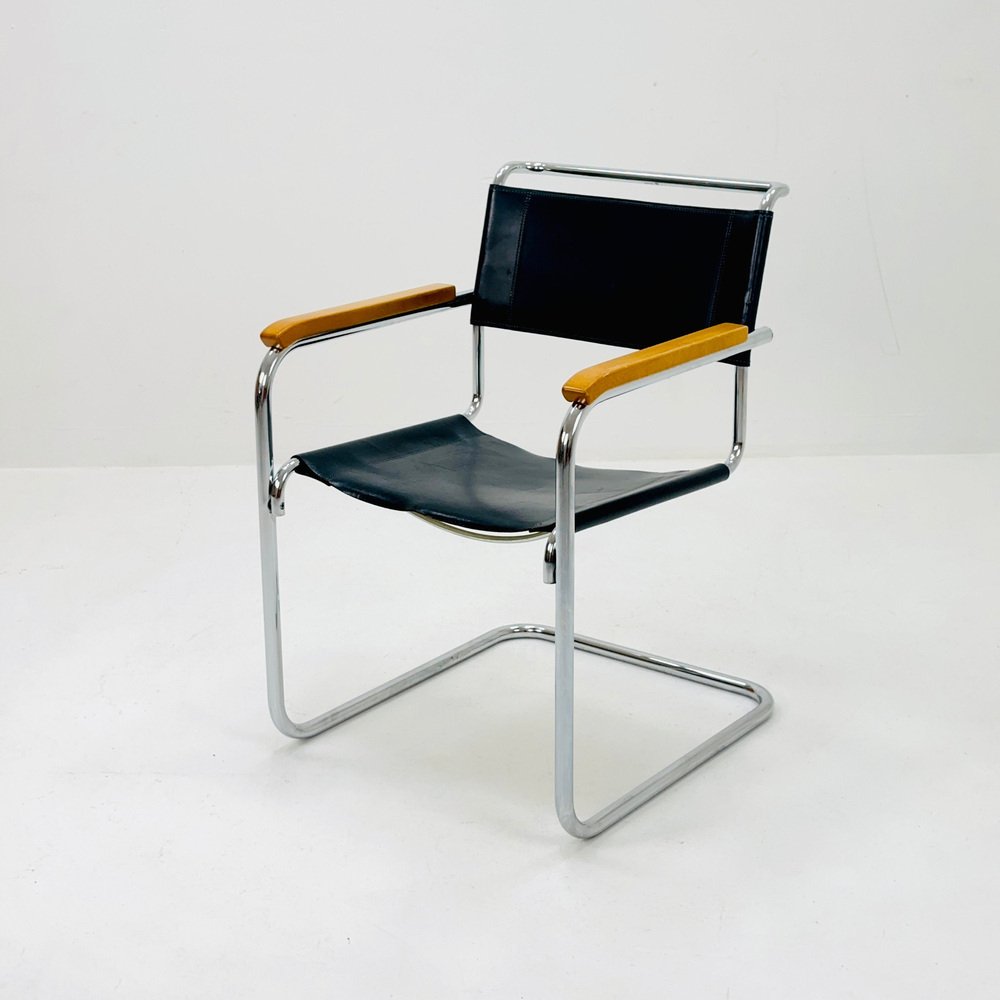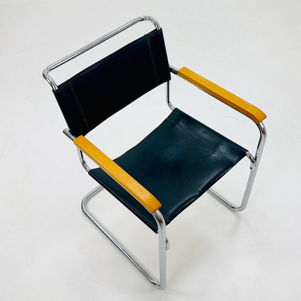 Bauhaus Black Leather S34 Armchair by Mart Stam for Thonet, 1980s