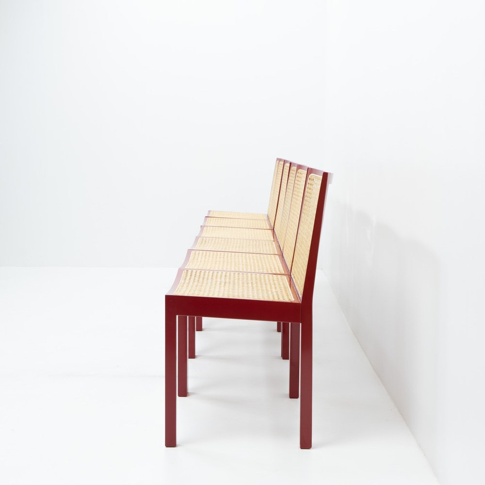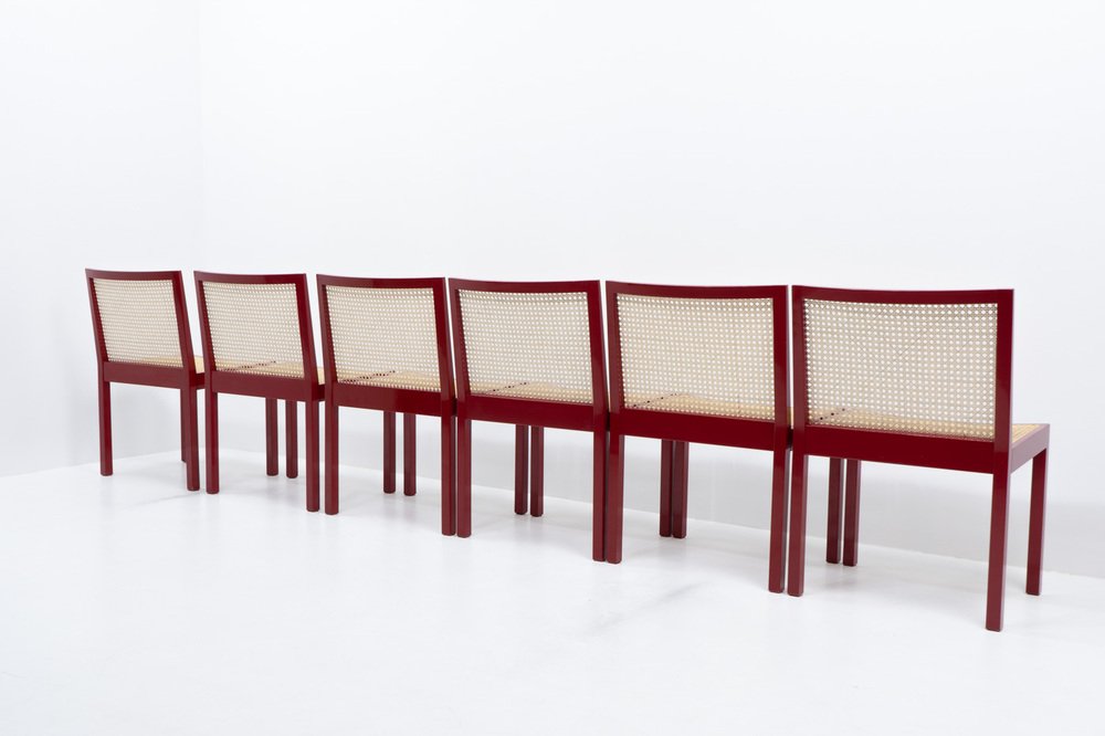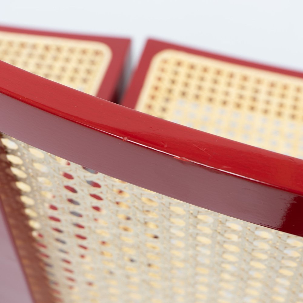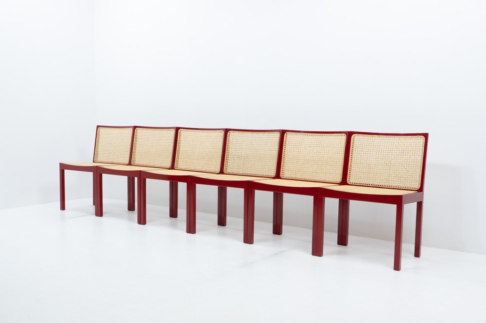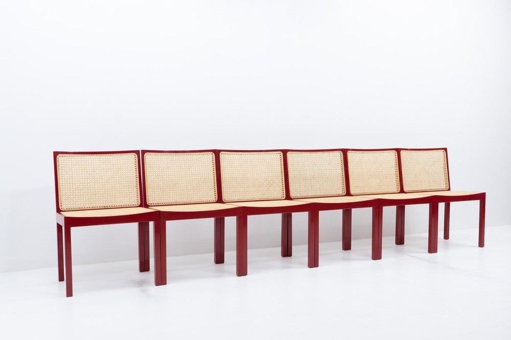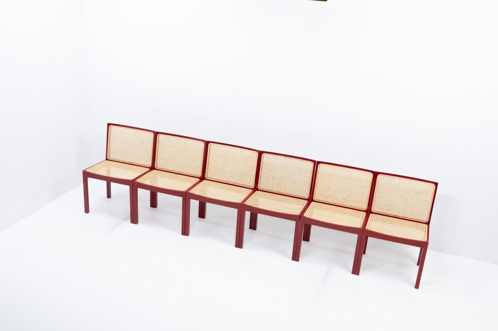 Born in 1915 in Stein-am-Rhein in German-speaking Switzerland, Guhl trained as a cabinetmaker at the School of Applied Arts in Zurich, opening his own design studio and workshop in 1939. One of his earliest furniture designs included the rectangular Bankstuhl (1941) for Röthlisberger, which featured a cane seat and backrest, as well as the ability to form a row of seats when connected with other models. He returned to his alma mater as an instructor of interior design, where he eventually became the director in 1951 and established Switzerland’s first specialized Product Design center.