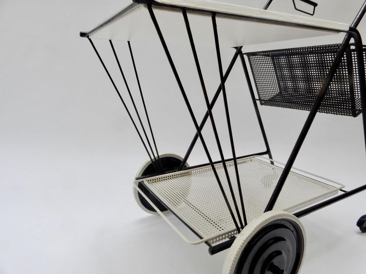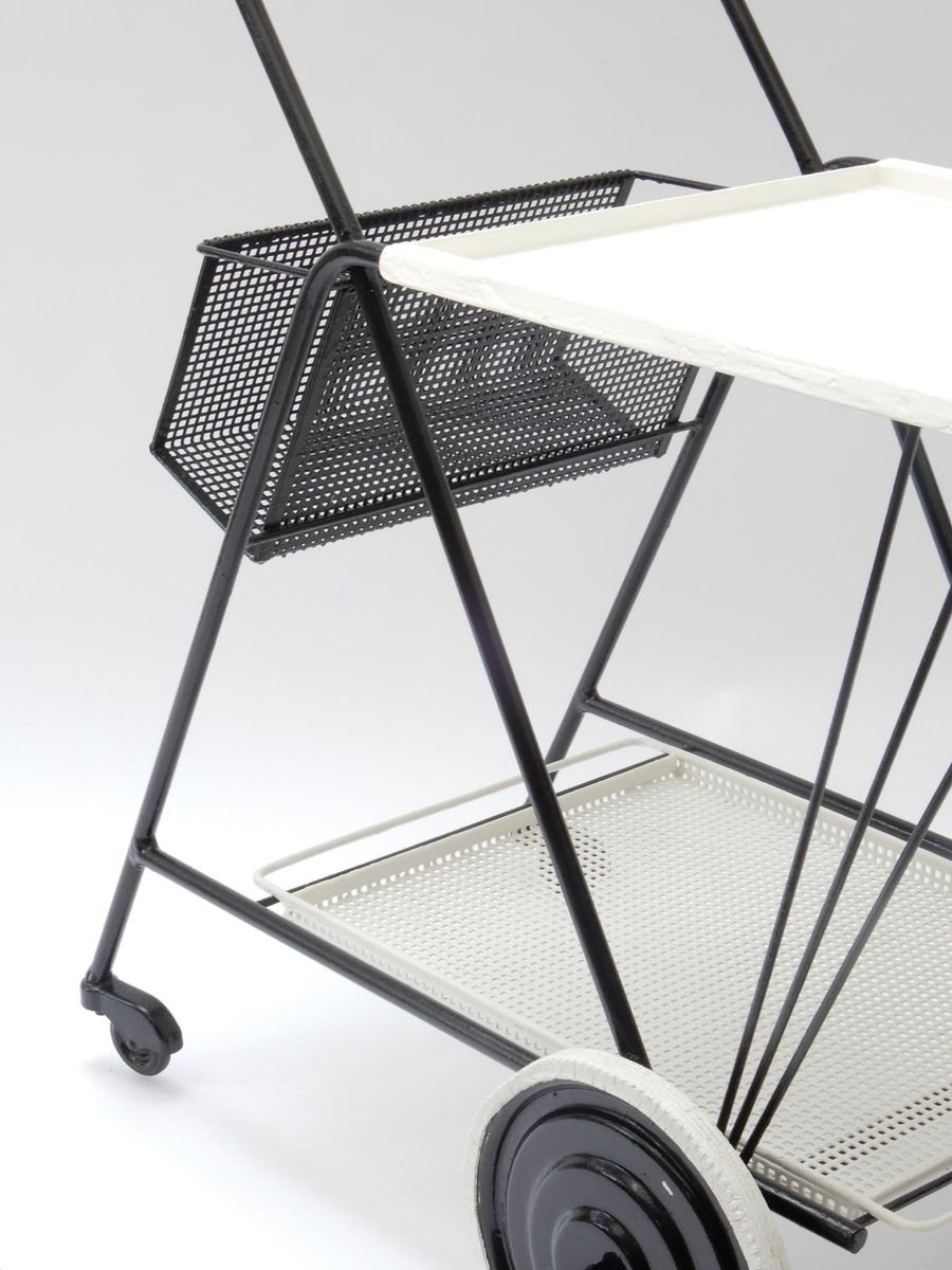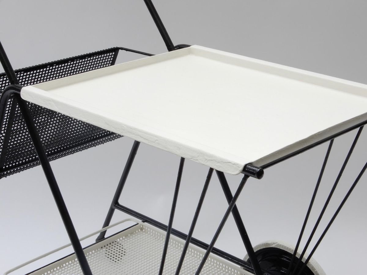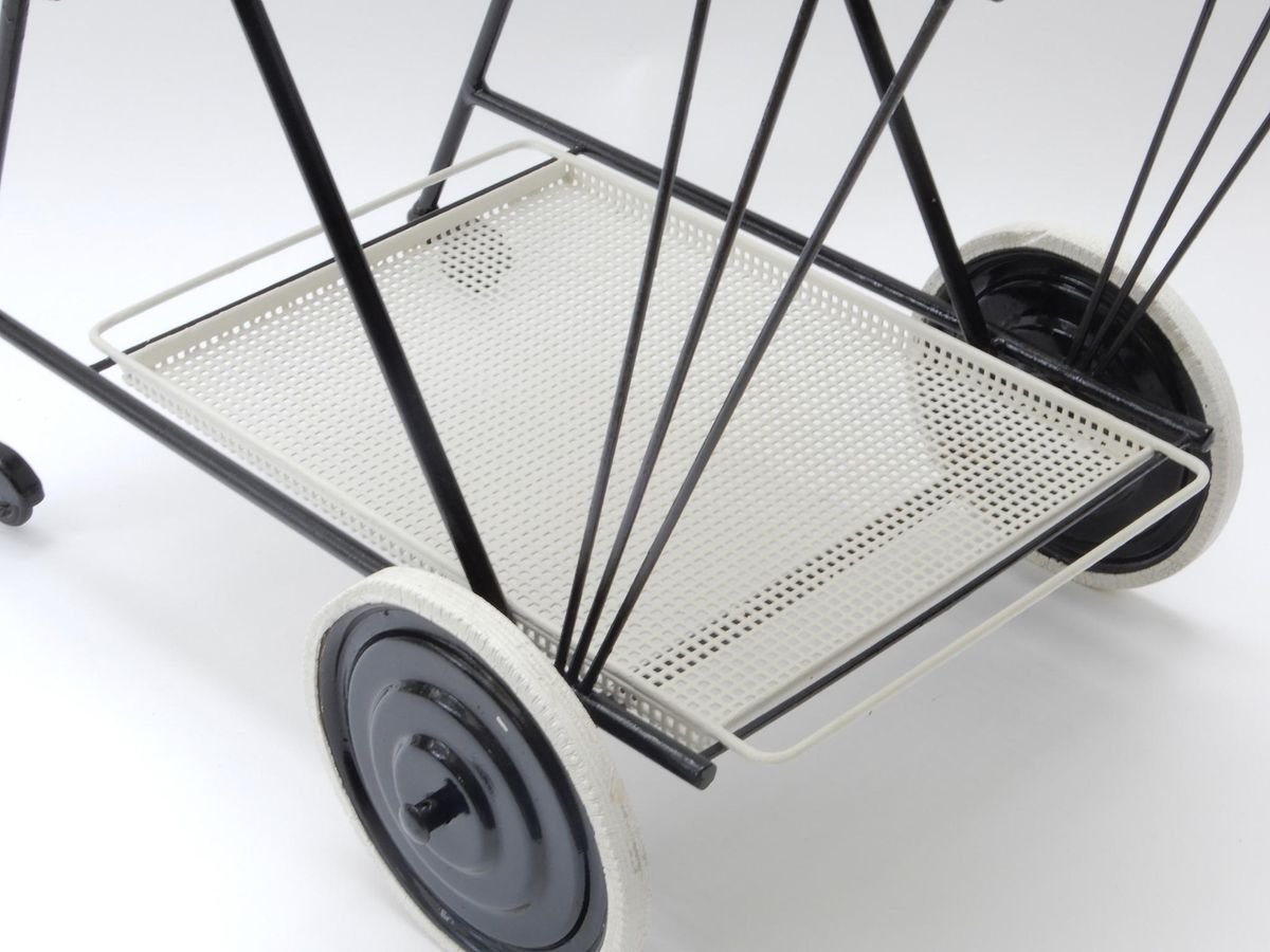 Black and White Perforated Metal Bar Cart in the style of Mathieu Mathegot, 1950s