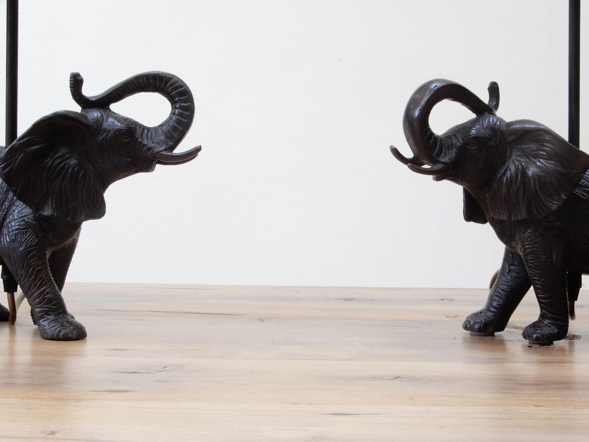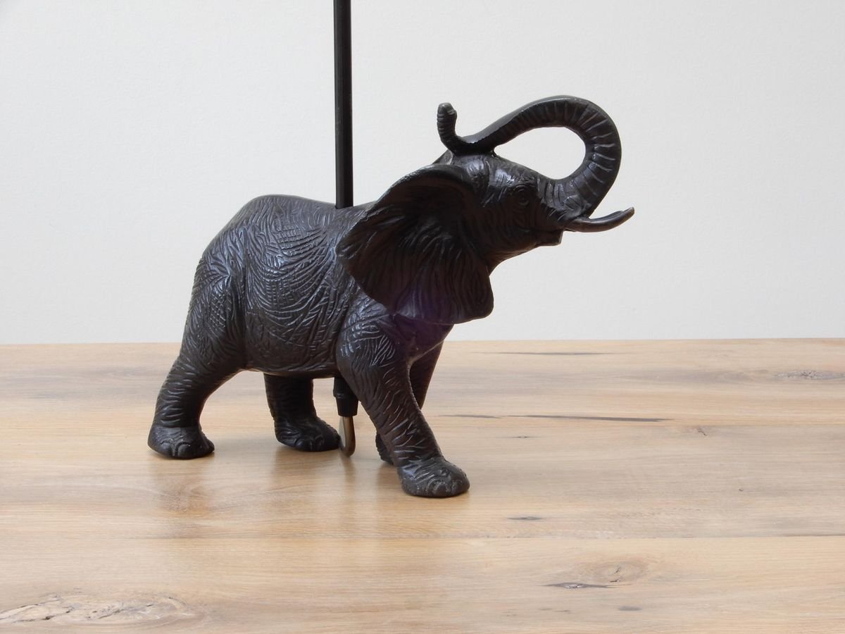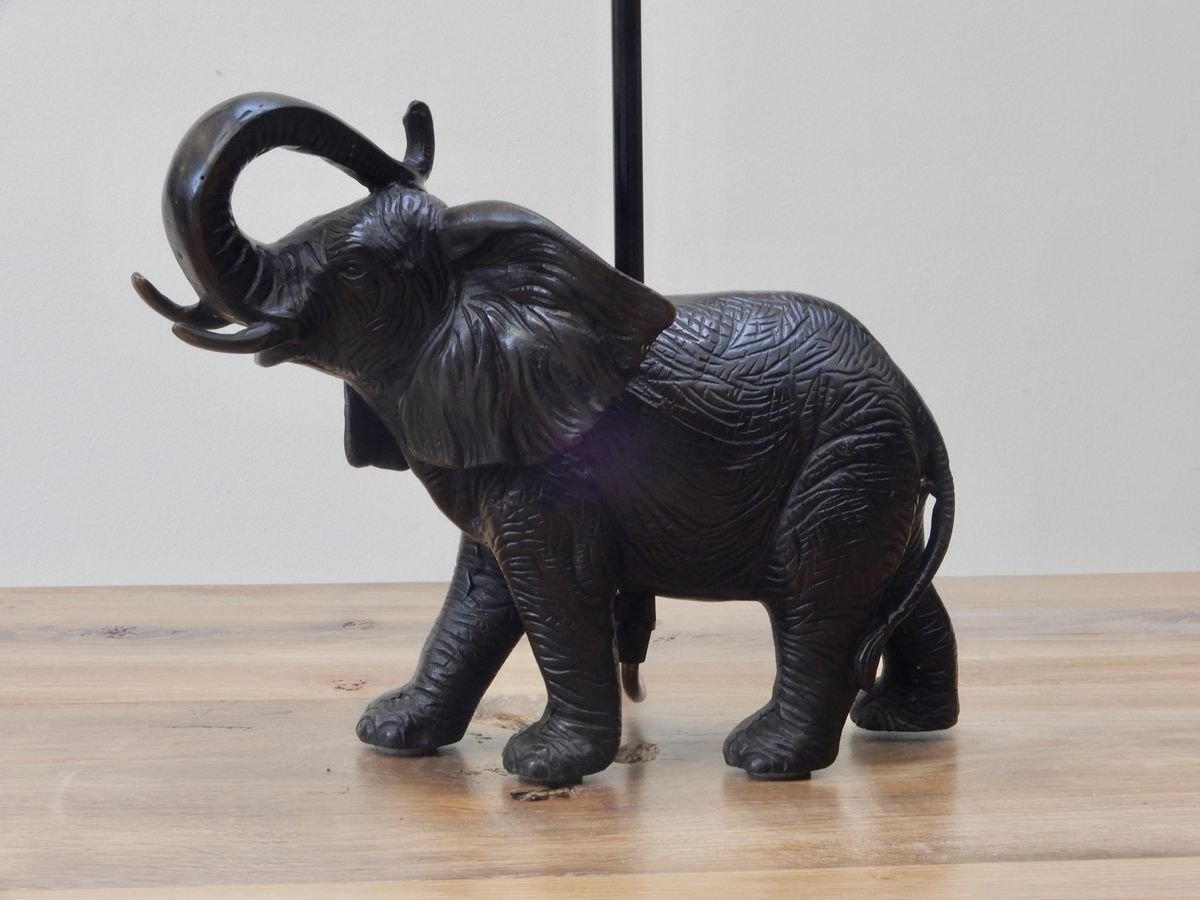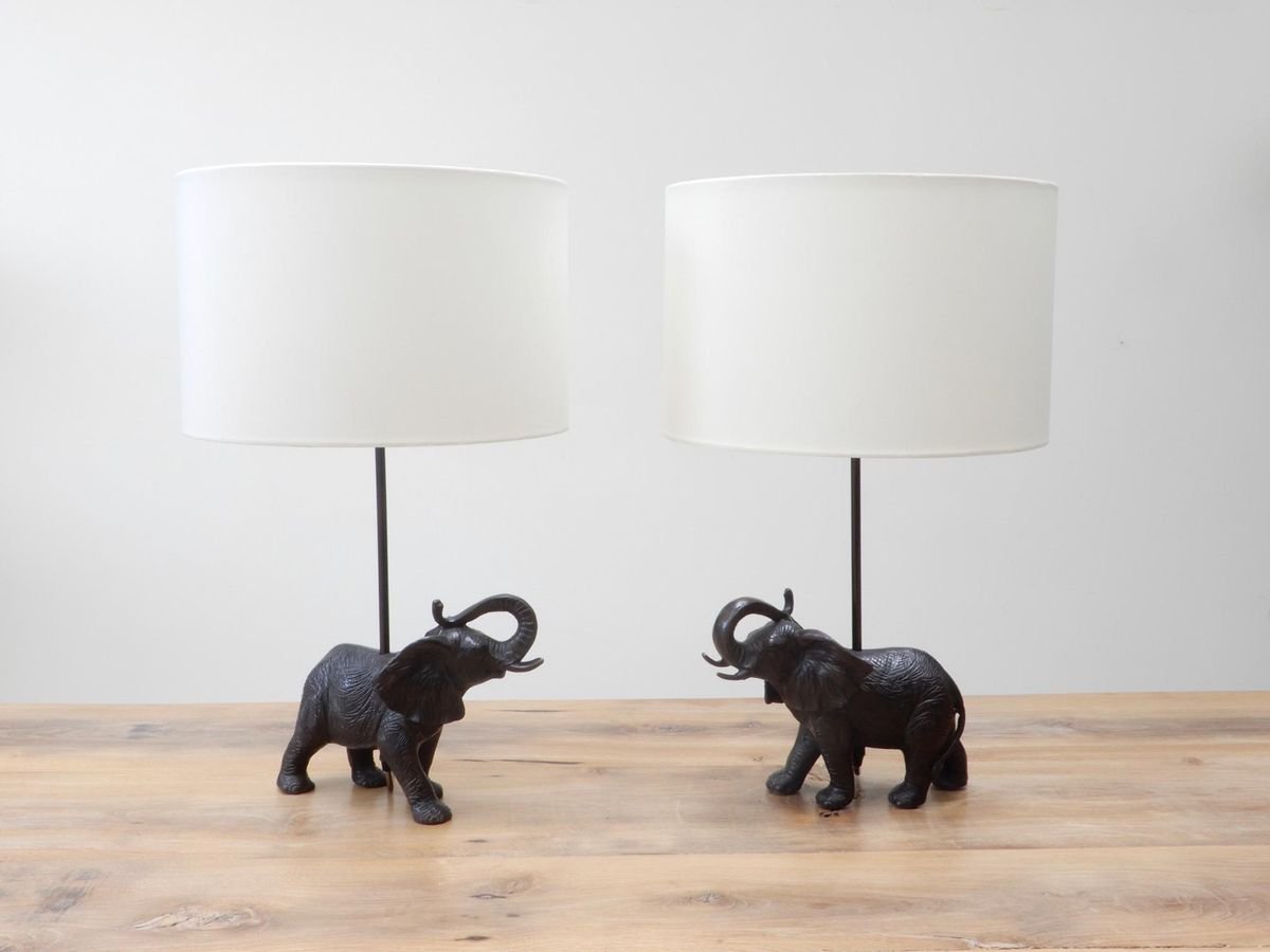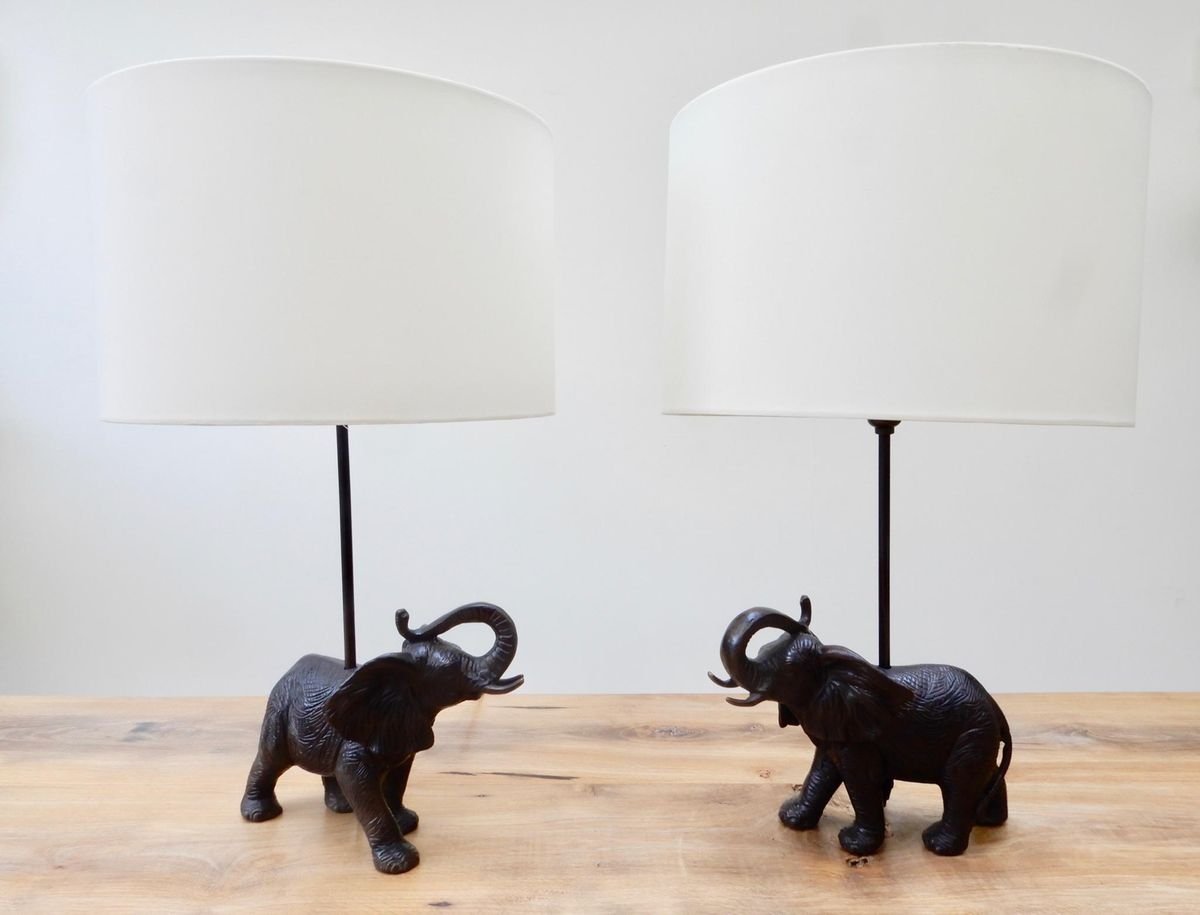 Black Patinated Bronze Elephant Lamps, Set of 2