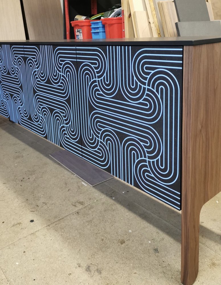 In her most recent collection, Wonderland, Nell has reverted back to predominantly using her hands, making unique one-off pieces, almost coming full circle to when she first started out but now having the experience and freedom to make much more unusual decorative pieces. Drawing inspiration from her previous home near Bath that overlooked the wooded Limpley Stoke valley, Nell uses techniques not dissimilar to sgraffito and intaglio, normally used with clay, to carve and incise onto her favoured material Valchromat.