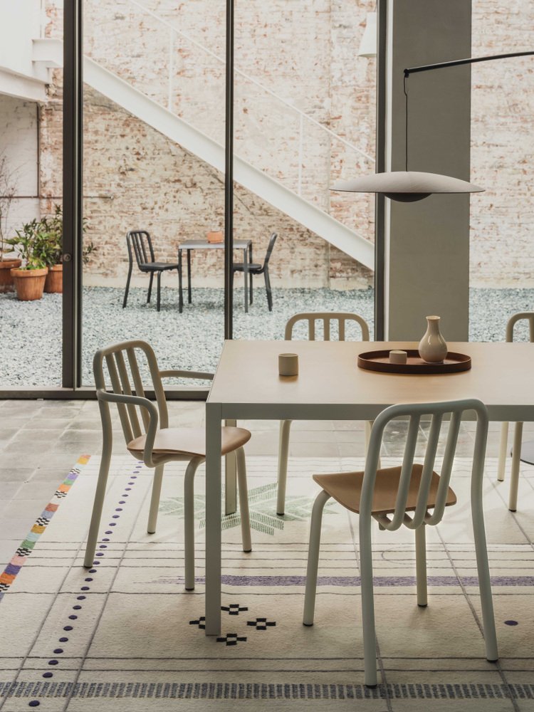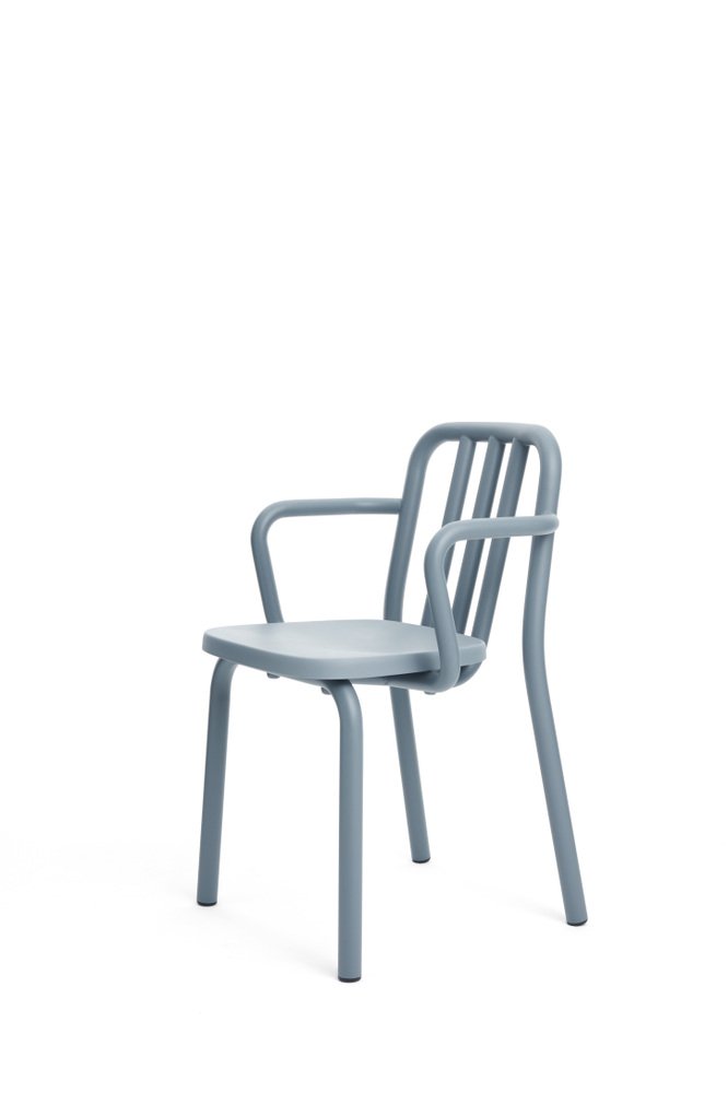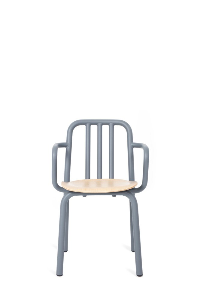 Blue-Grey Tube Armchair with Oak Seat by Eugeni Quitllet for Mobles 114