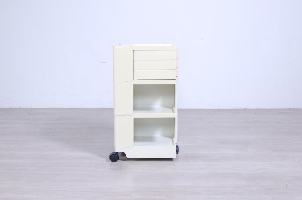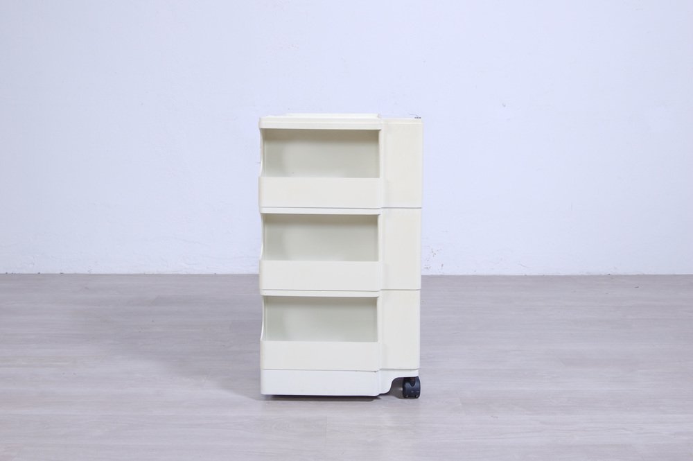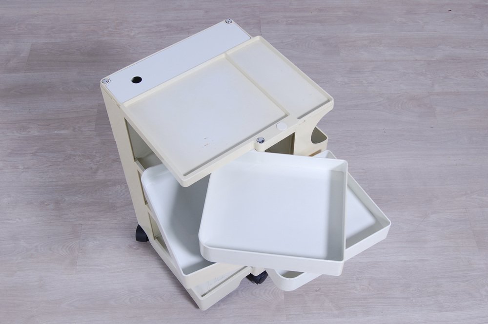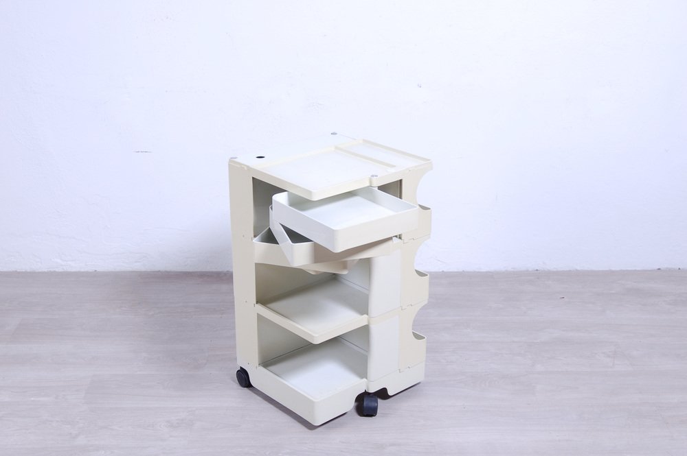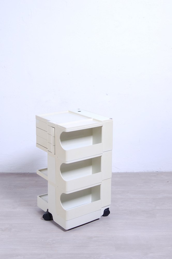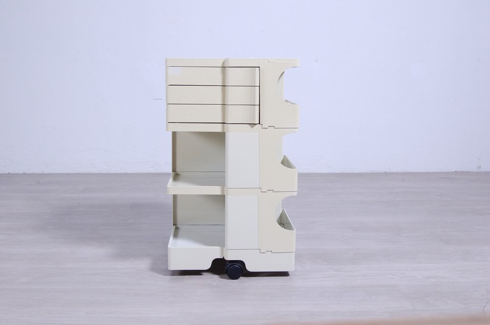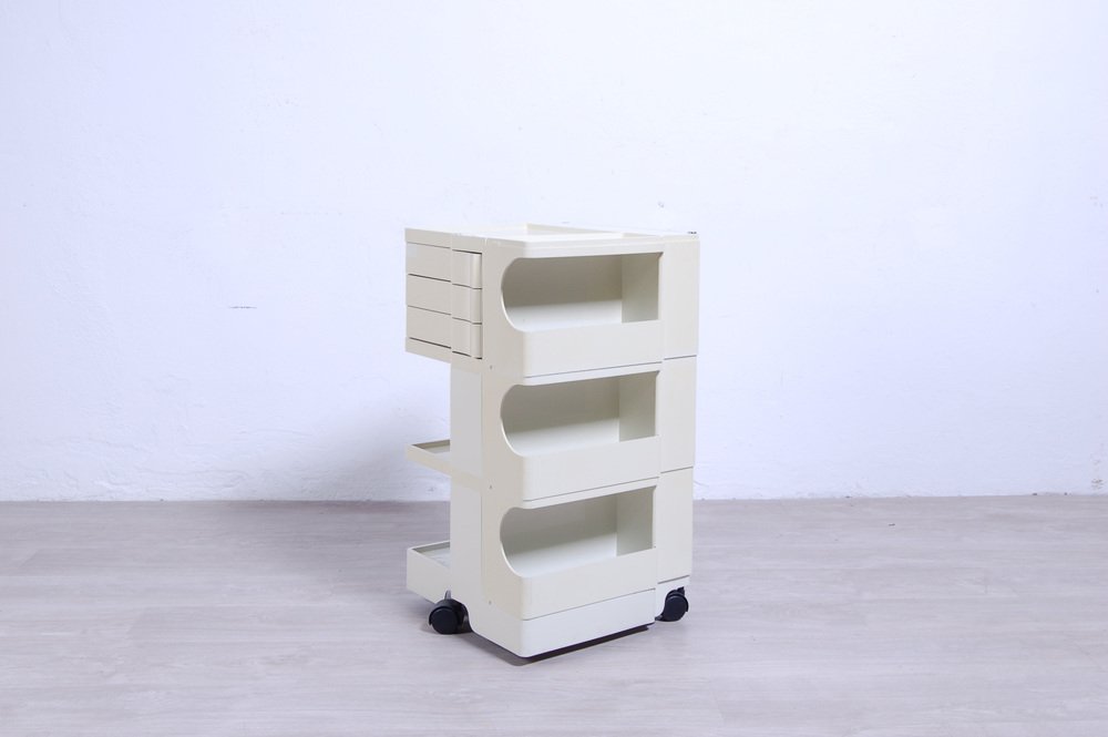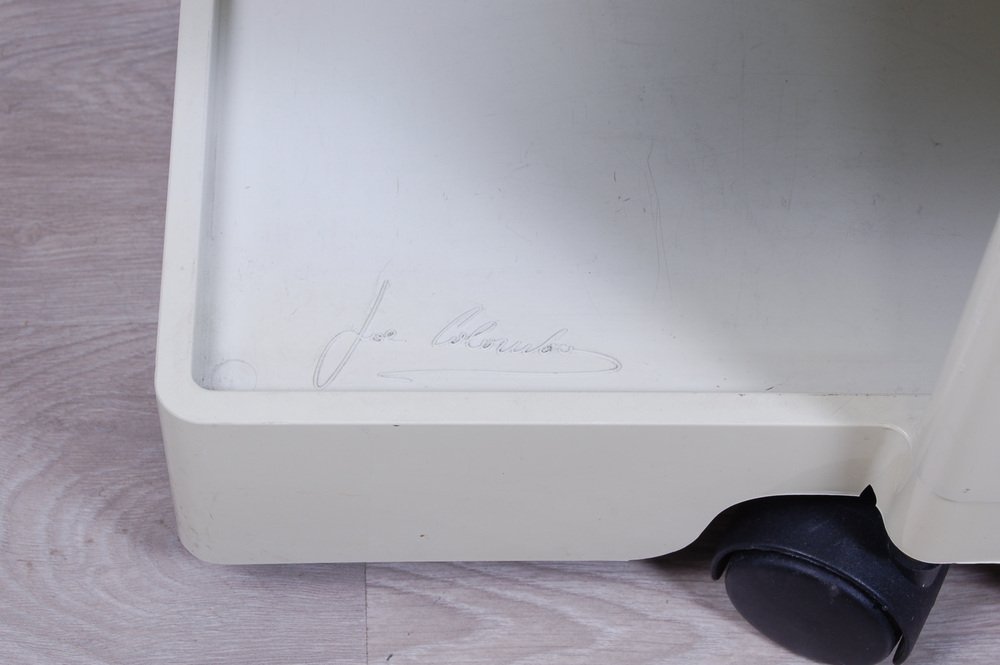 Colombo’s design career was cut tragically short in 1971 when he died of heart failure at age 41. However, he was remarkably prolific during his near decade as a designer. Notable projects include some of the most iconic designs of the 1960s, such as his 1963 Elda Armchair, made completely of fiberglass; the 1964 Ragno outdoor light, which doubled as a seat; the stackable Universale chair (1965/67), which came in varying heights and was created completely from polypropylene; his 1967 modular furniture series known as the Additional Living System, which was composed of different-size curved pieces that could be pinned together in various configurations to form chairs, sofas, or entire living areas, and which ultimately included the famous 1969 Tubo lounge chair; and the Optic alarm clock and Bobby trolley (both 1970).