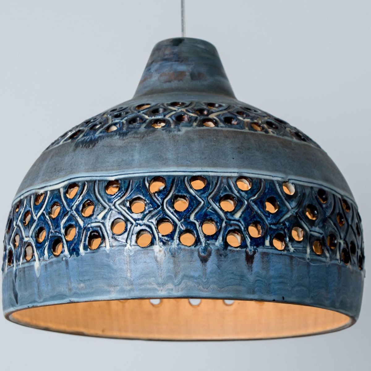 Bowl Blue Ceramic Pendant Light, Denmark, 1970
