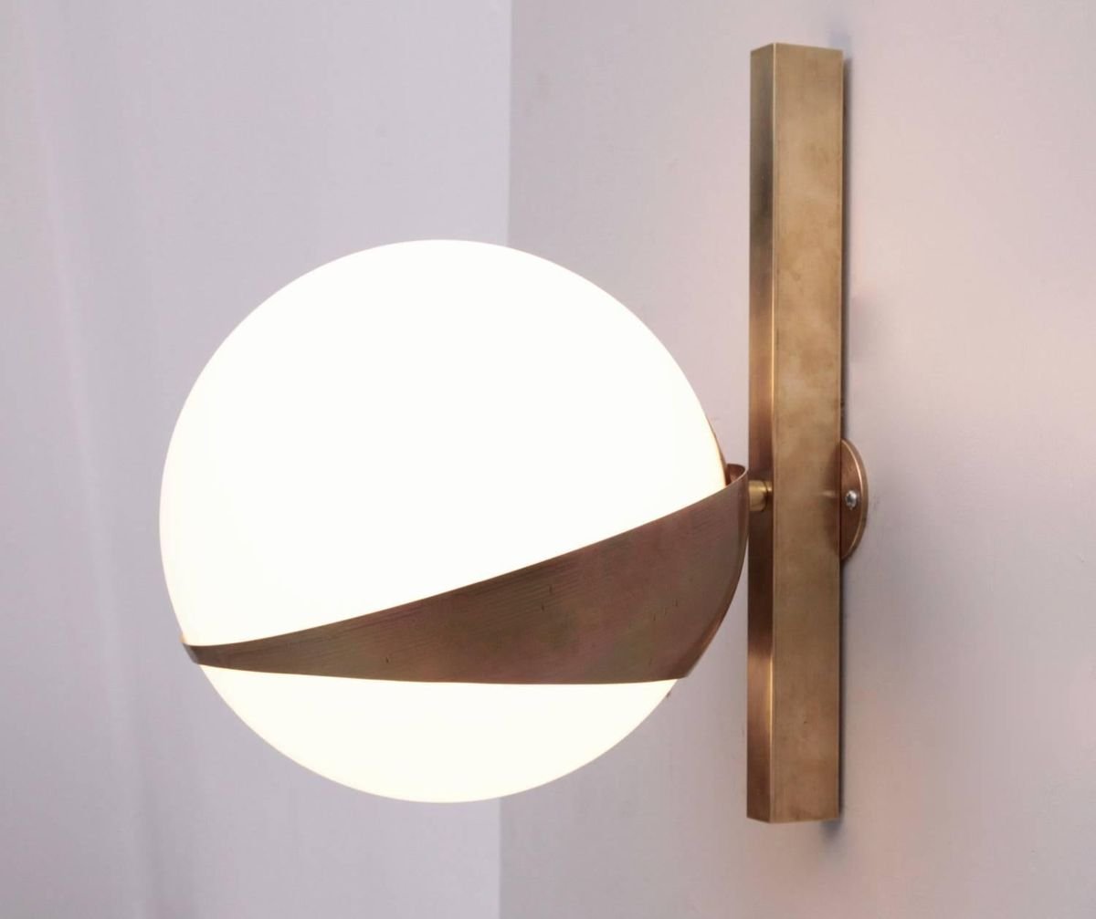 Brass and White Glass Sconce in the Style of Stilnovo