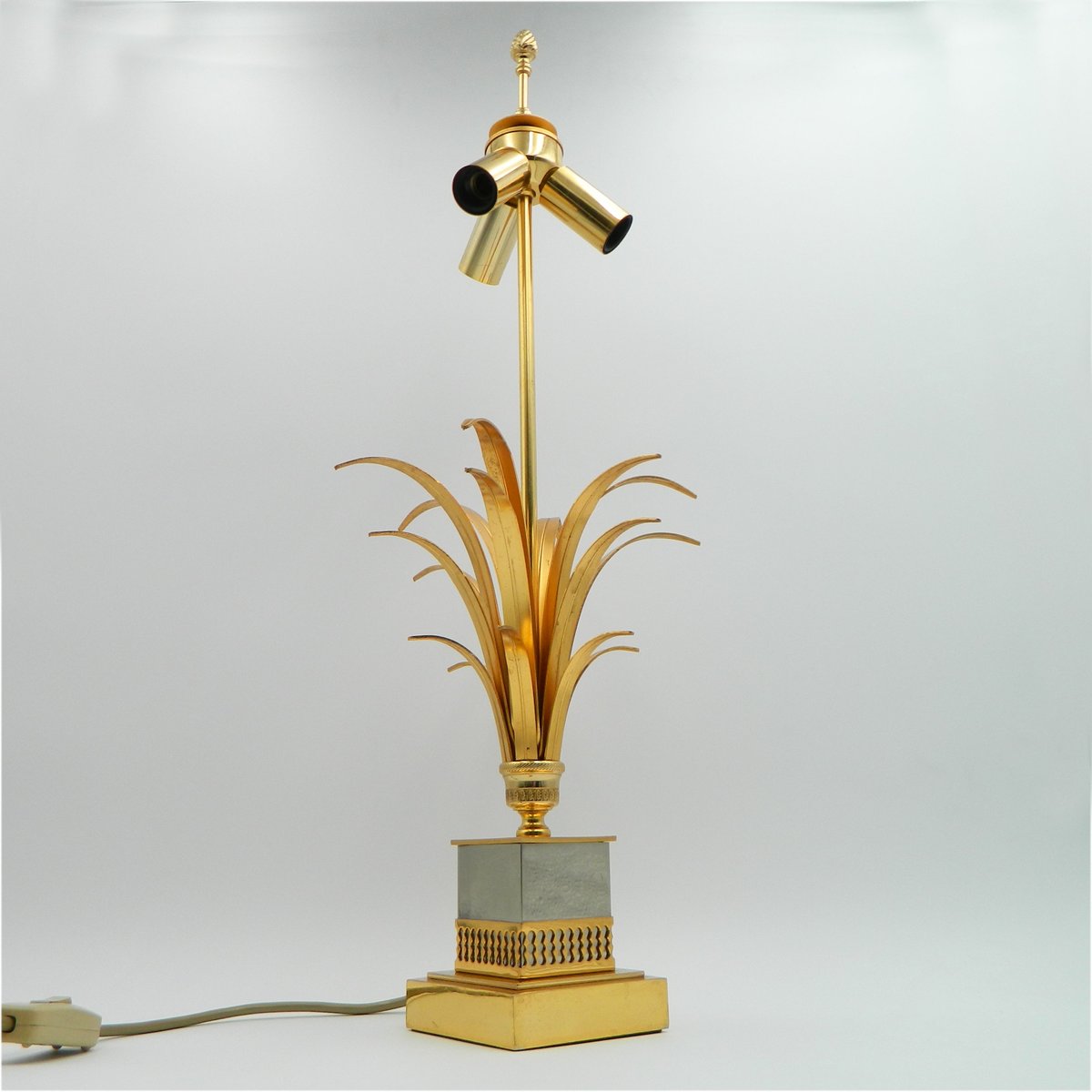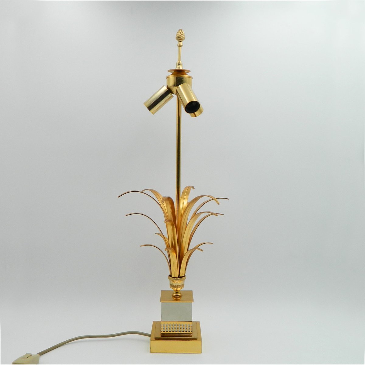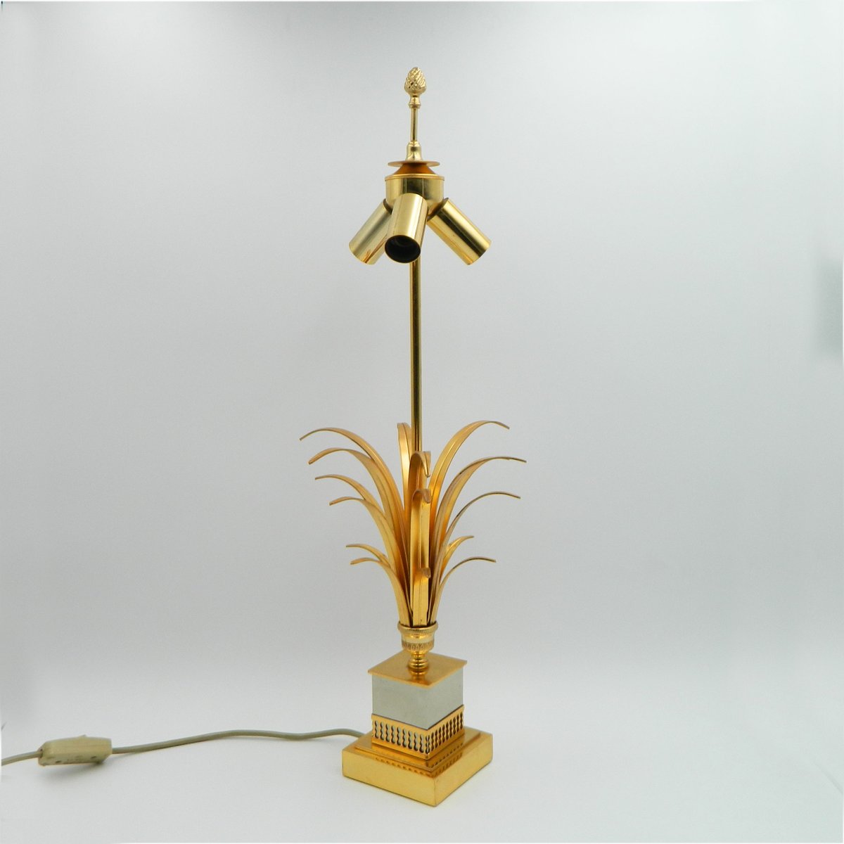 Brass Table Lamp with Golden Leaves by Boulanger, 1970s