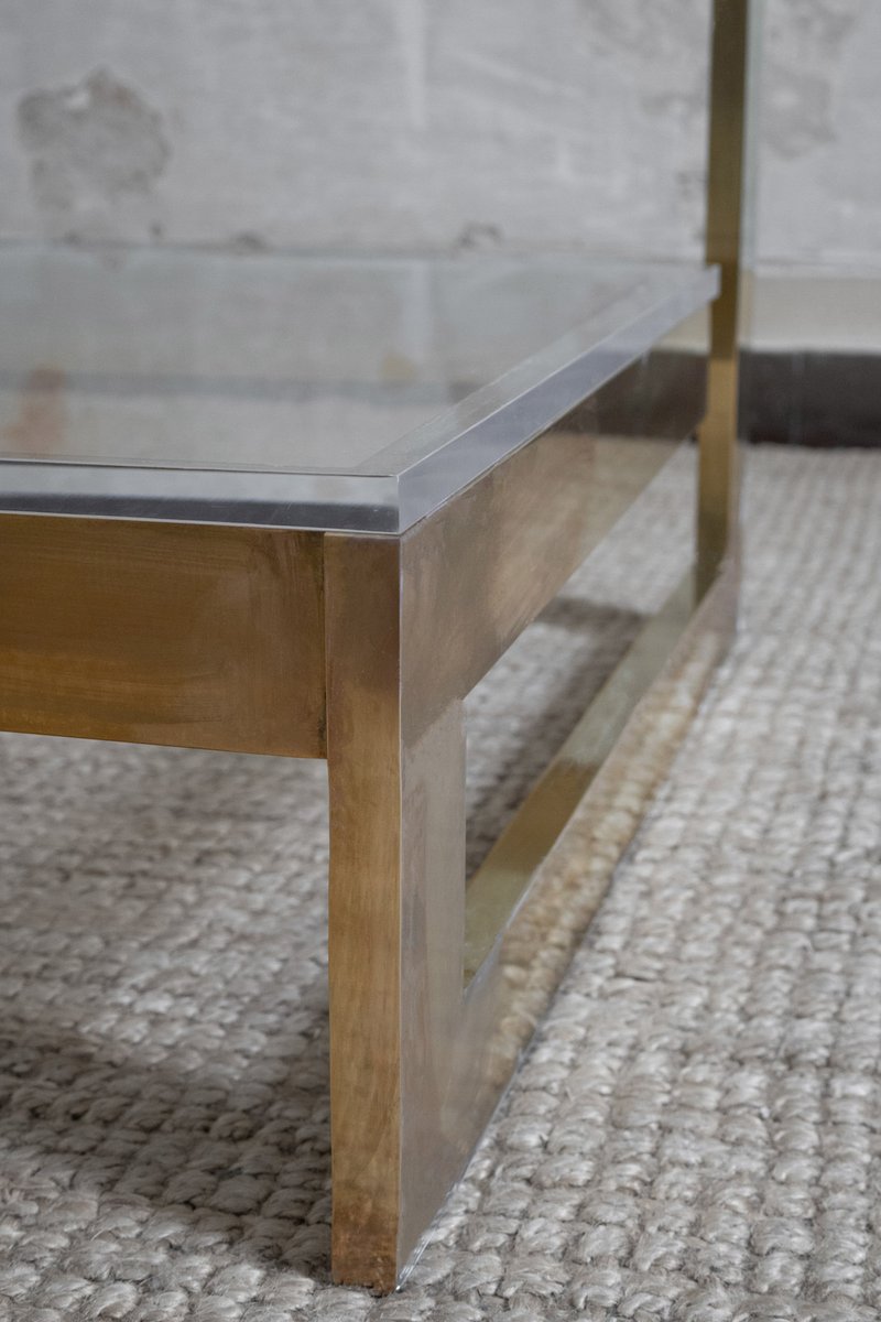 Brass Tables with Acrylic Glass Shelves, Set of 2