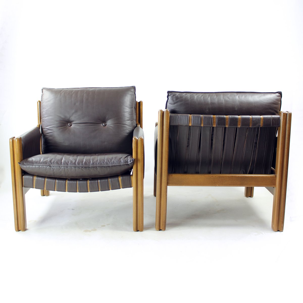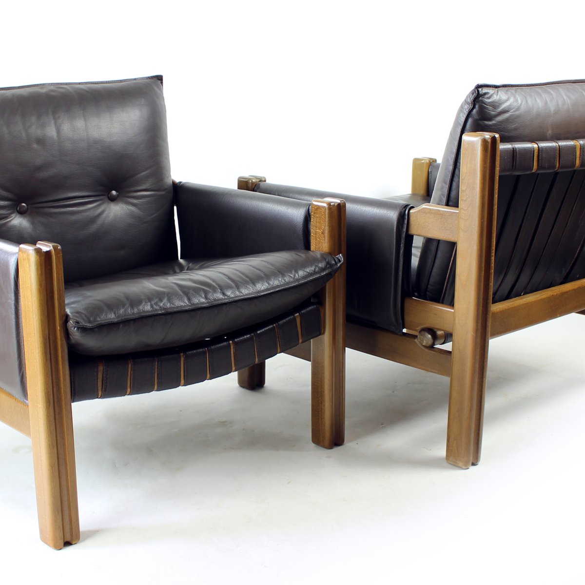 Brown Leather and Walnut Lounge Chairs from Ton, Former Czechoslovakia, 1990s, Set of 2