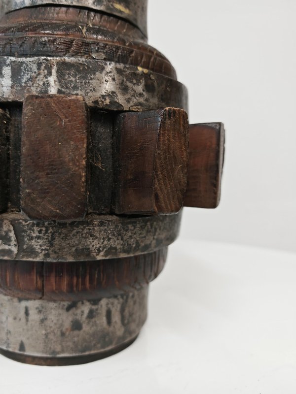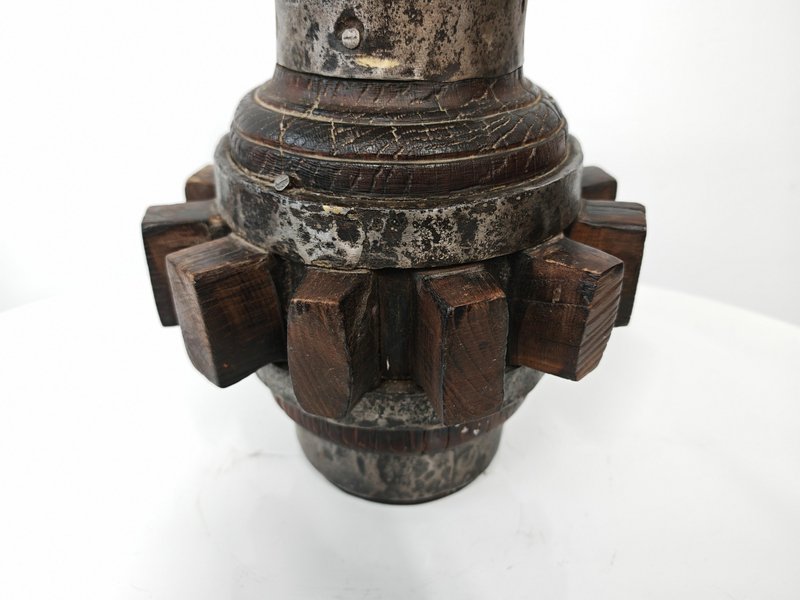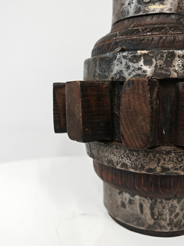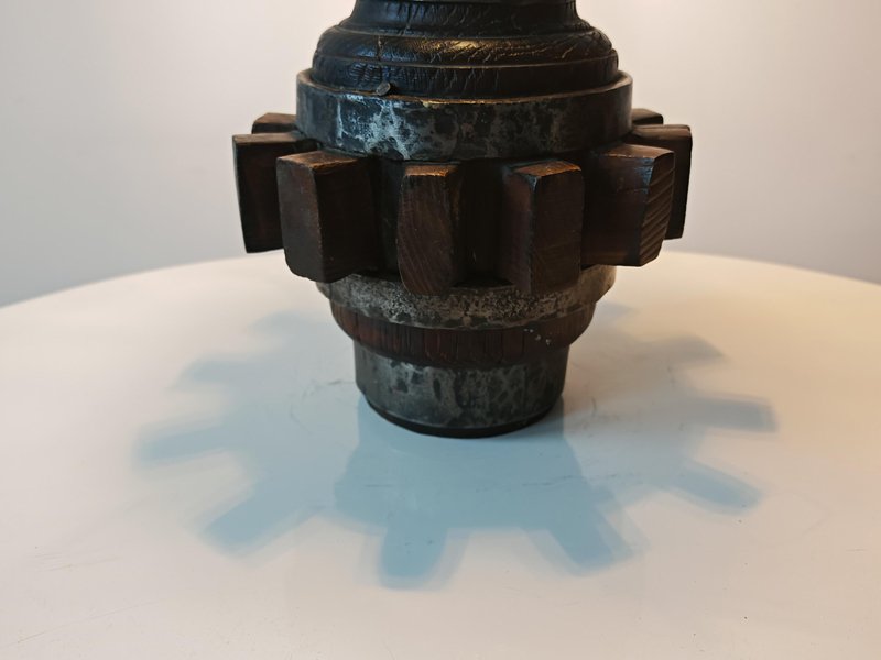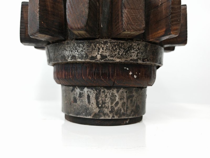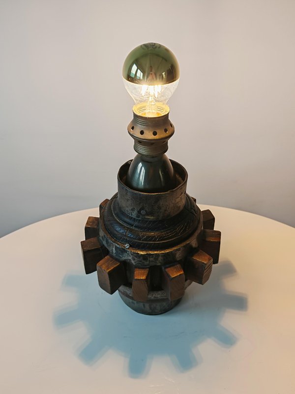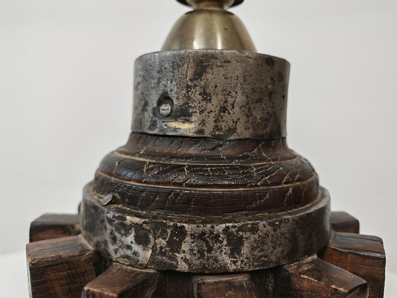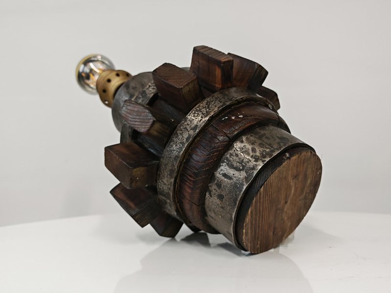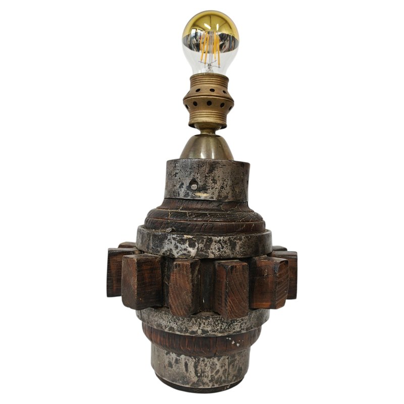 Brutalist Sculptural Table Lamp in Wrought Iron and Wood, Germany, 1960s