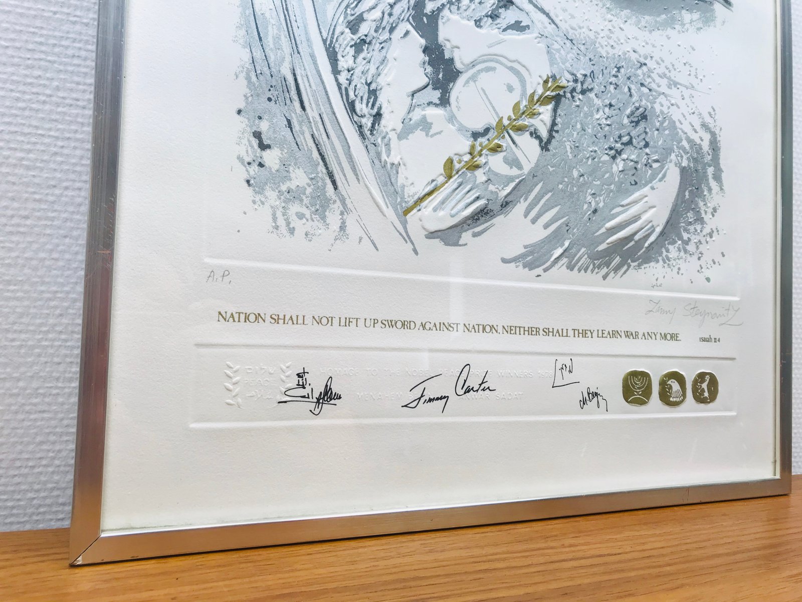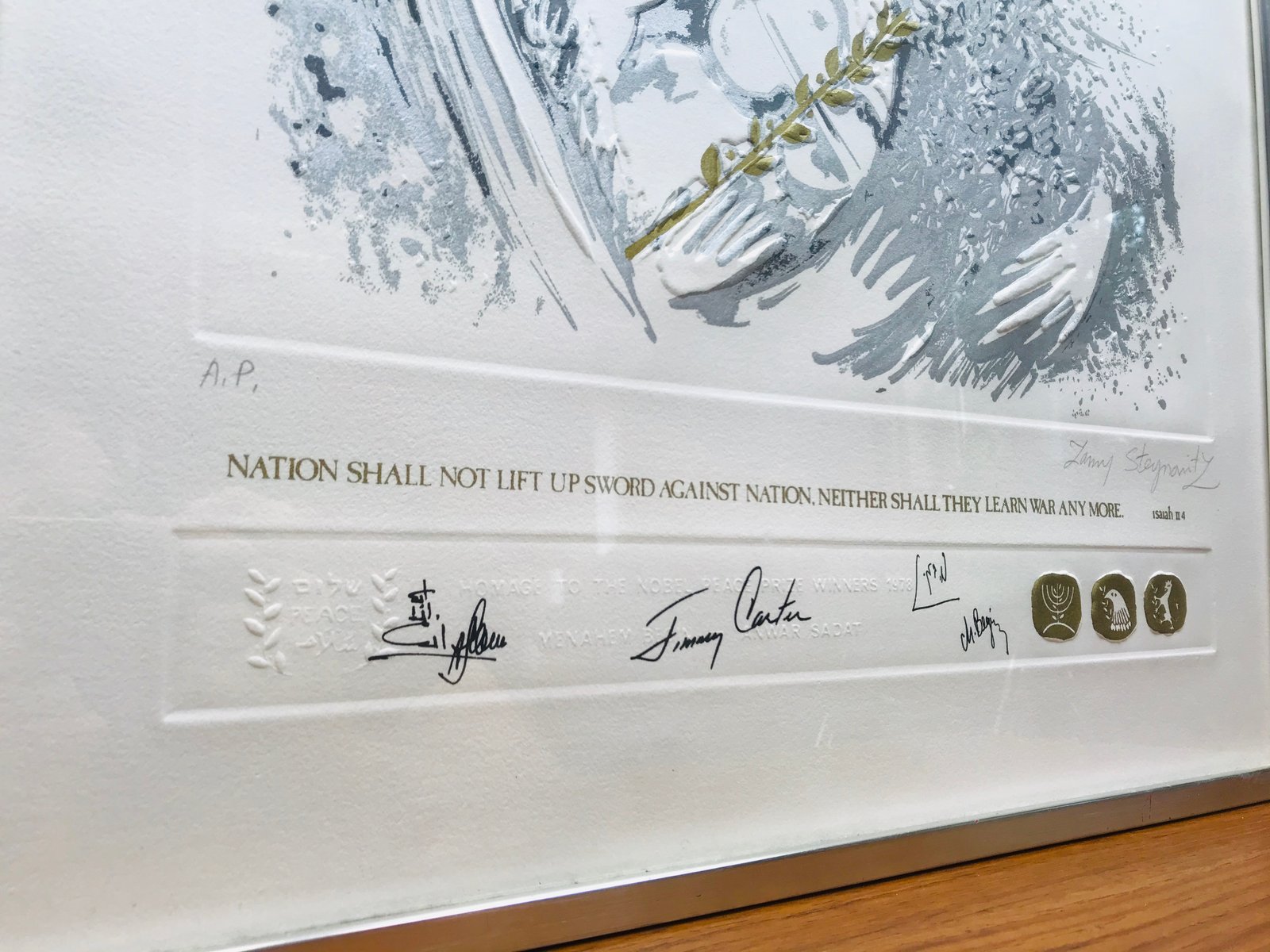 Camp David Peace Treaty, Homage to The Nobel Prize Winners Embossed Serigraph from Zamy Steynovitz, 1979