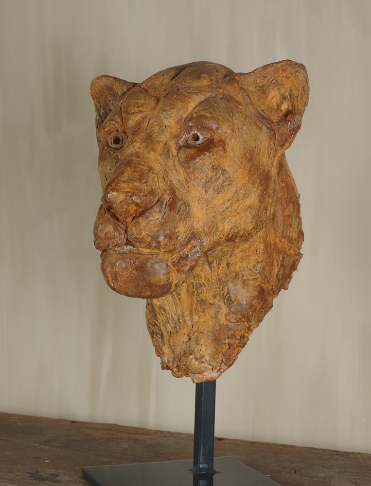 Carine Laeveren, Lion Head Sculpture, 2000s, Plaster