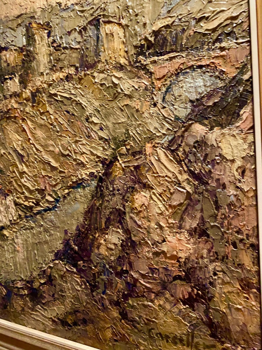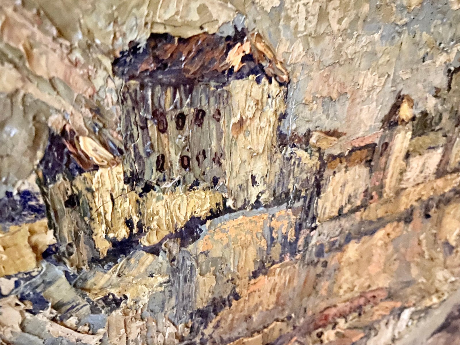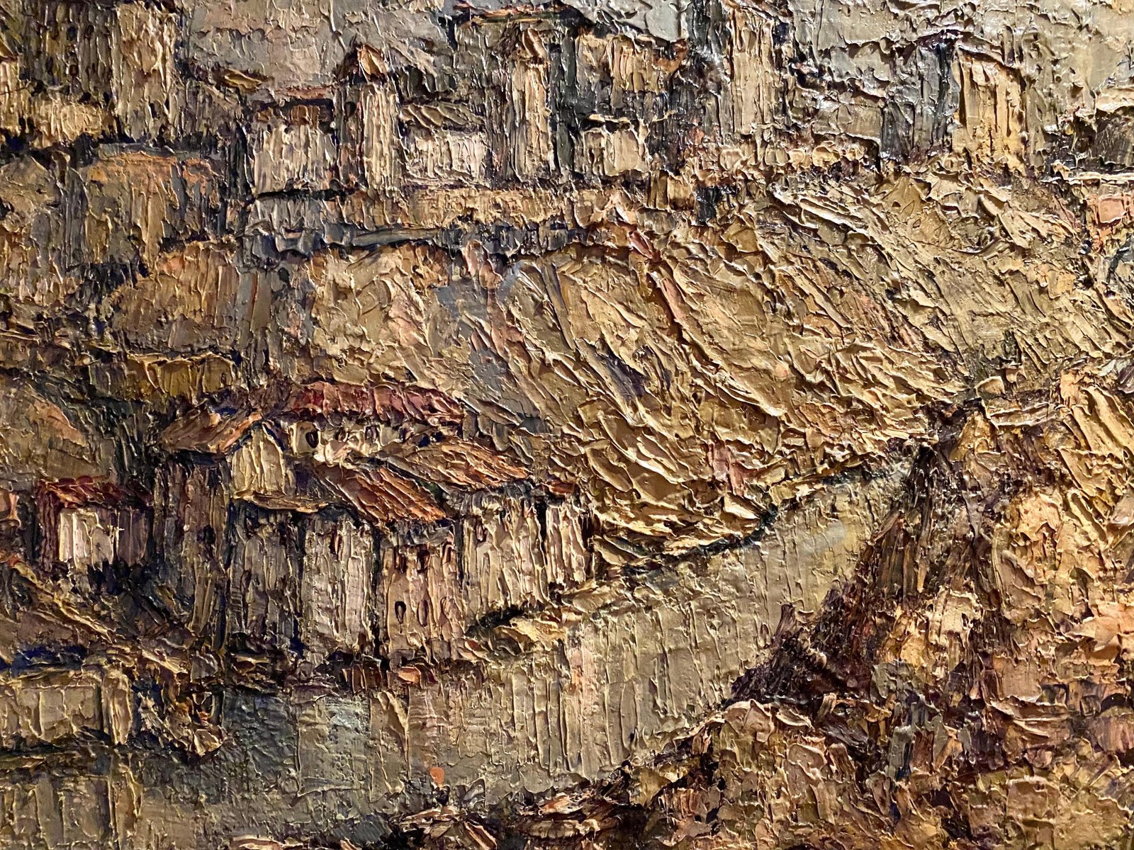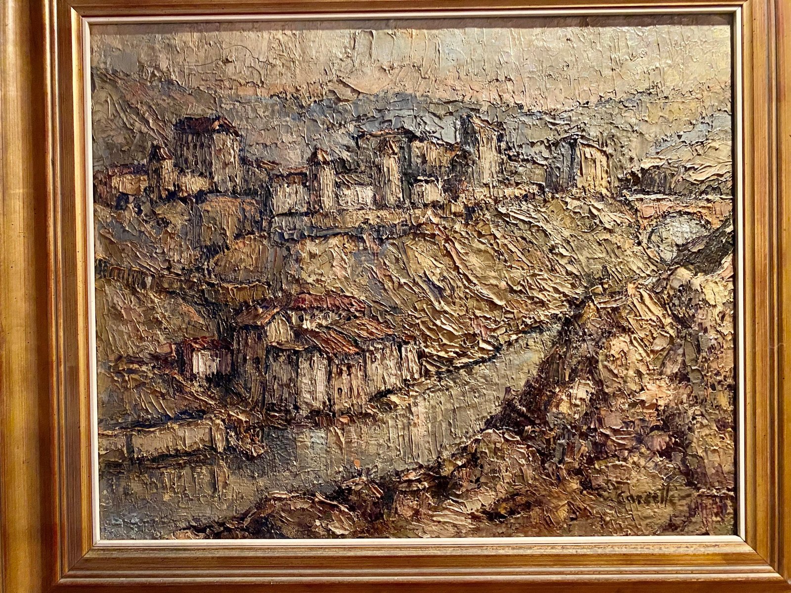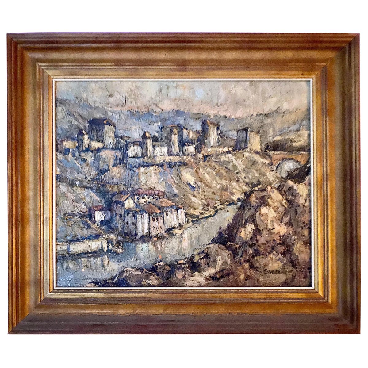 Castle with Village, Spain, 1950, Canvas, Framed