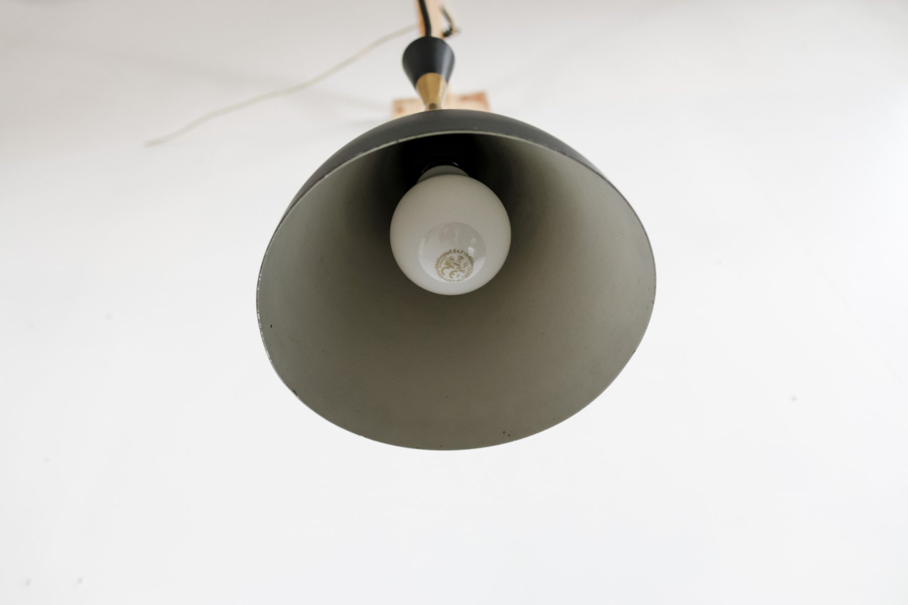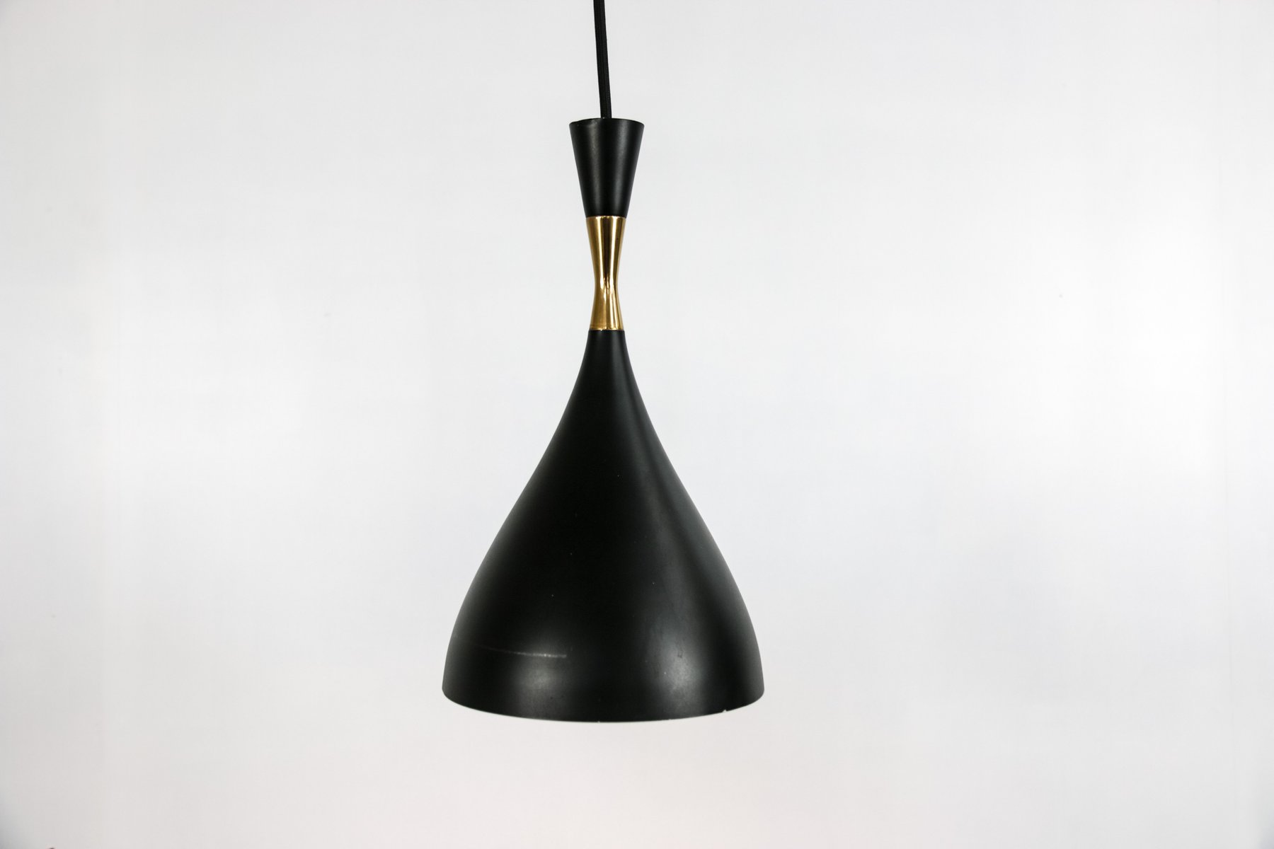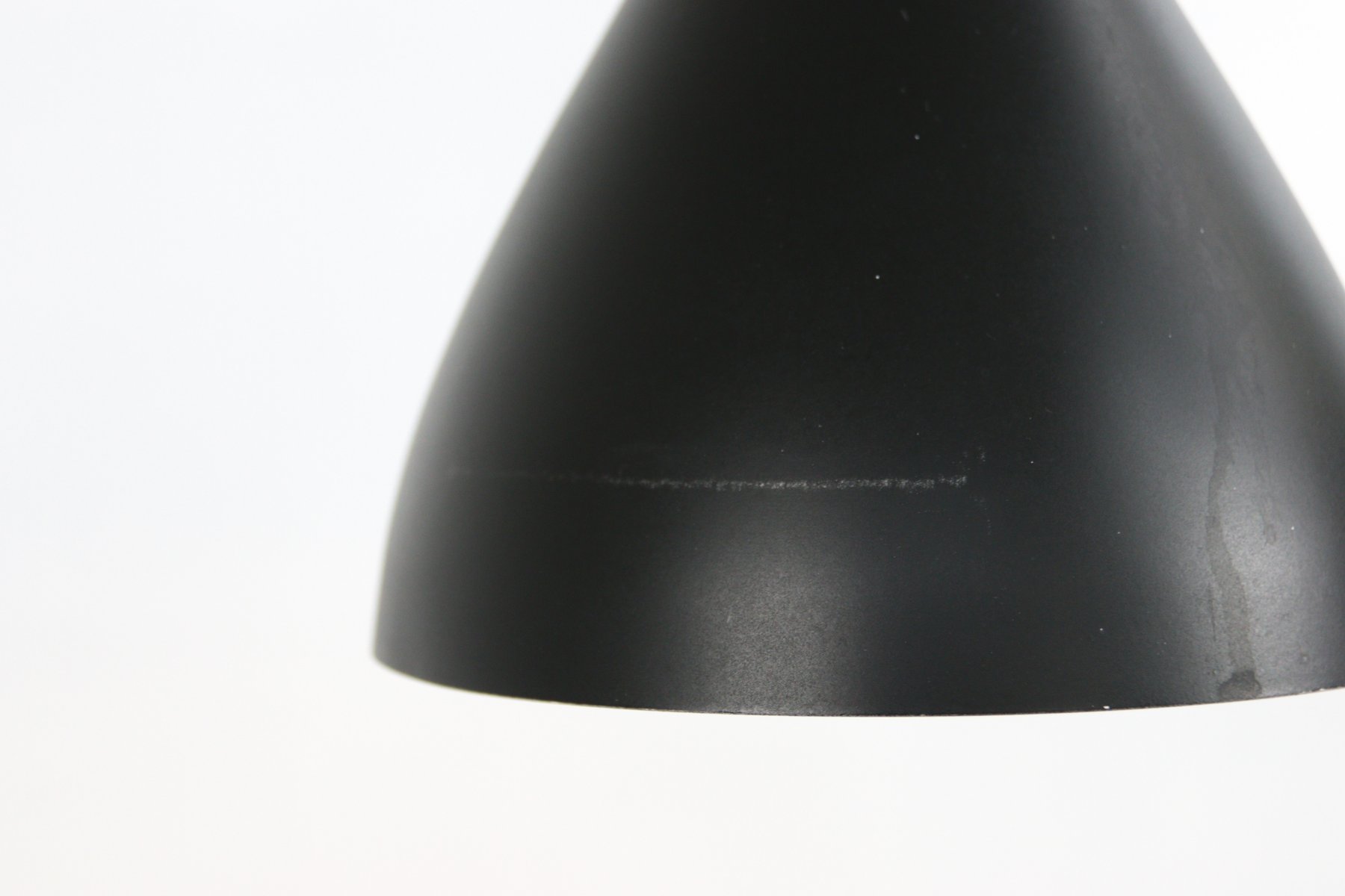 From the 1960s onwards, Holm Sørensen’s style changed utterly. His designs diverged from colorful, geometric table lamps and floor lamps, to pendants with unfinished brass and copper surfaces. These pendant lamps showcase Holm Sørensen’s interpretation of the Brutalist style, which was popular from the 1950s to the mid-70s. Originally coined by the Swedish architect Hans Asplund, the style was internationally espoused by many iconic designers, including Le Corbusier.