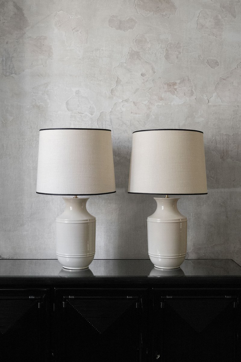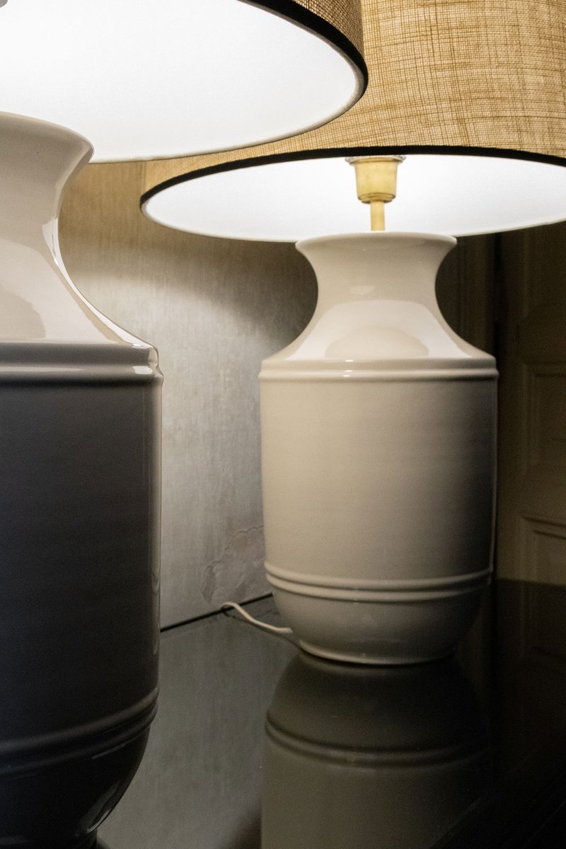 Ceramic Table Lamps with Fabric Lampshades, 1960s, Set of 2