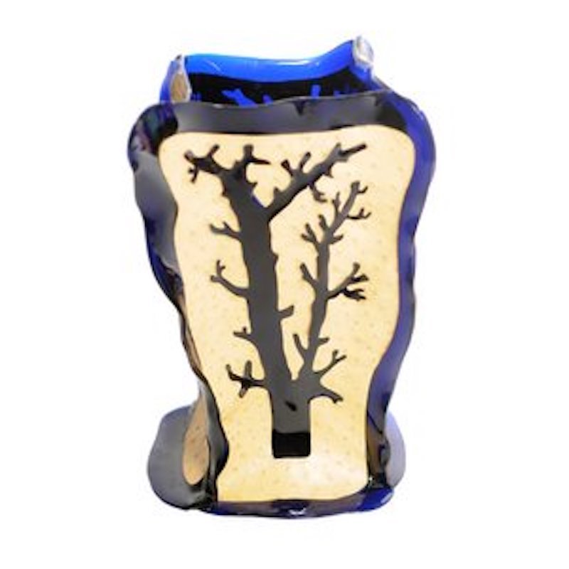 Cerrado Vase in Clear Blue and Beige Leather by Fernando & Humberto Campana for Corsi Design Factory