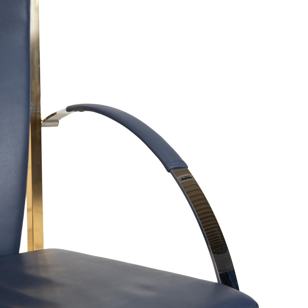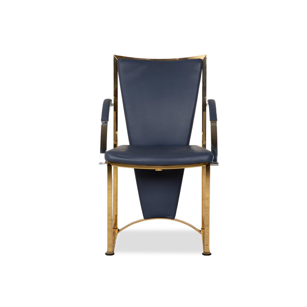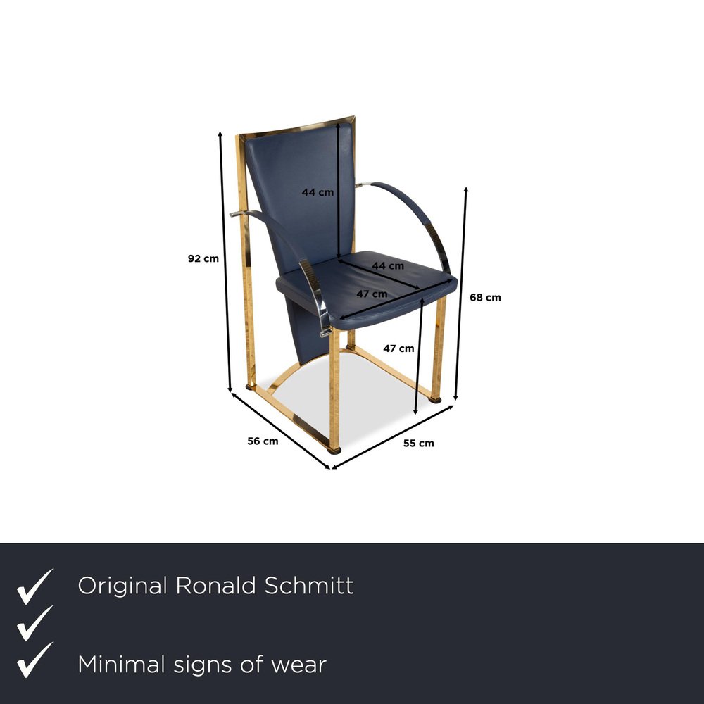 Chairs in Blue Leather and Golden Metal from Ronald Schmitt, Set of 4