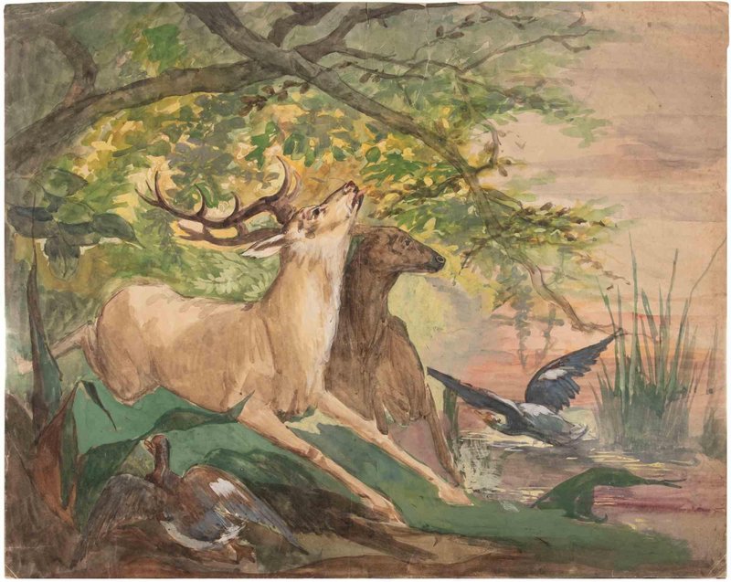 Charlotte Gardelle, In the Wood, Mixed Media on Paper, Early 20th Century