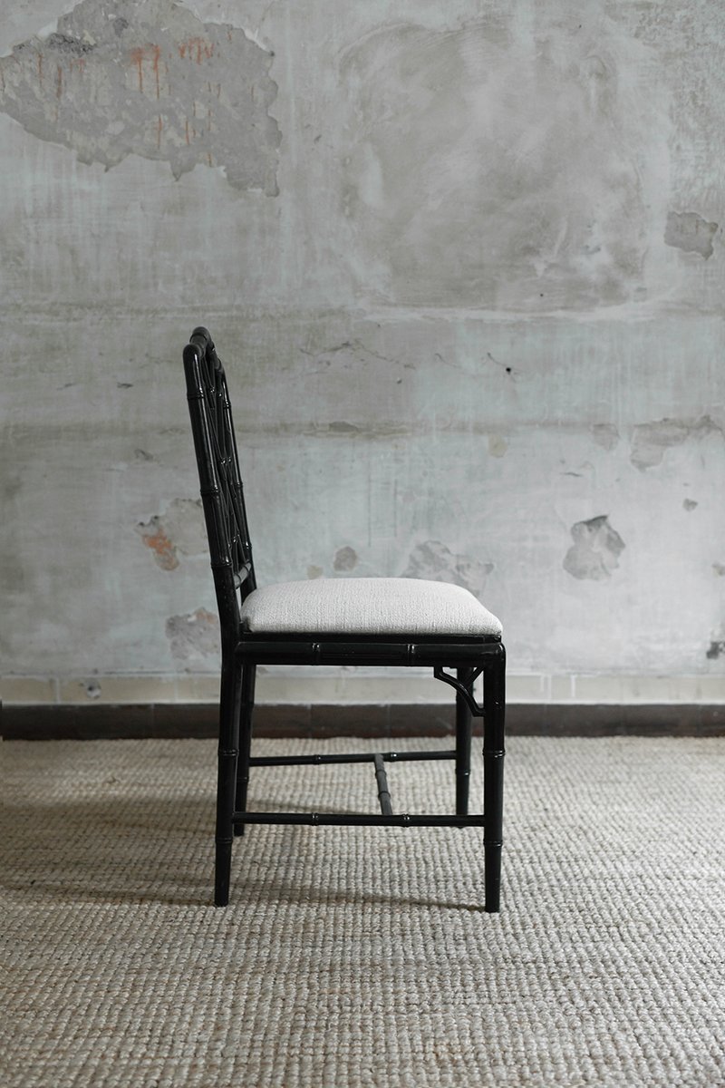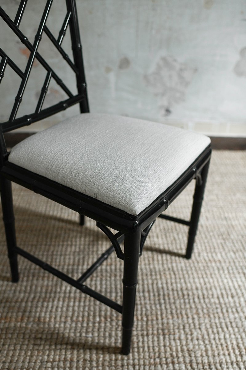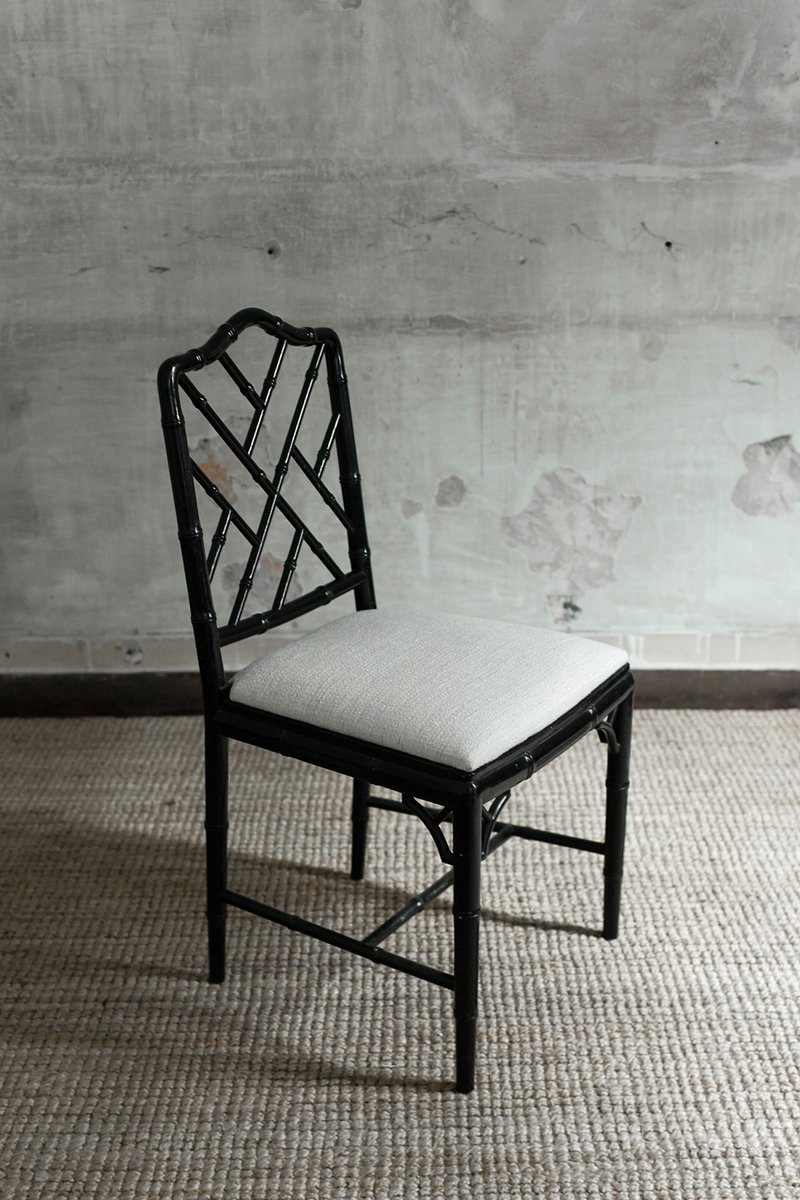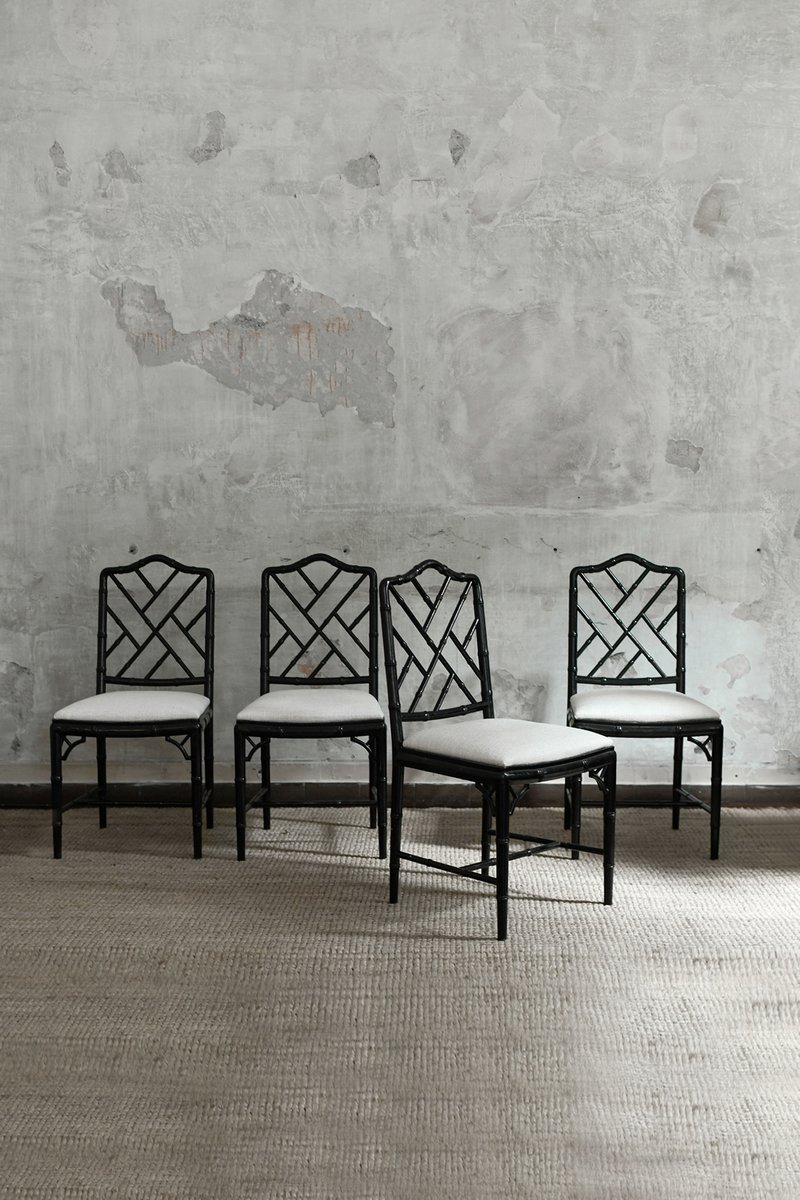 Chippendale-Style Faux Bamboo Black Lacquered Chairs, 1970s, Set of 4