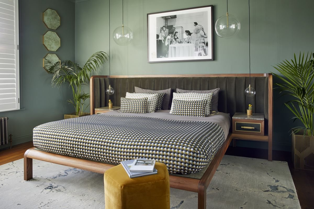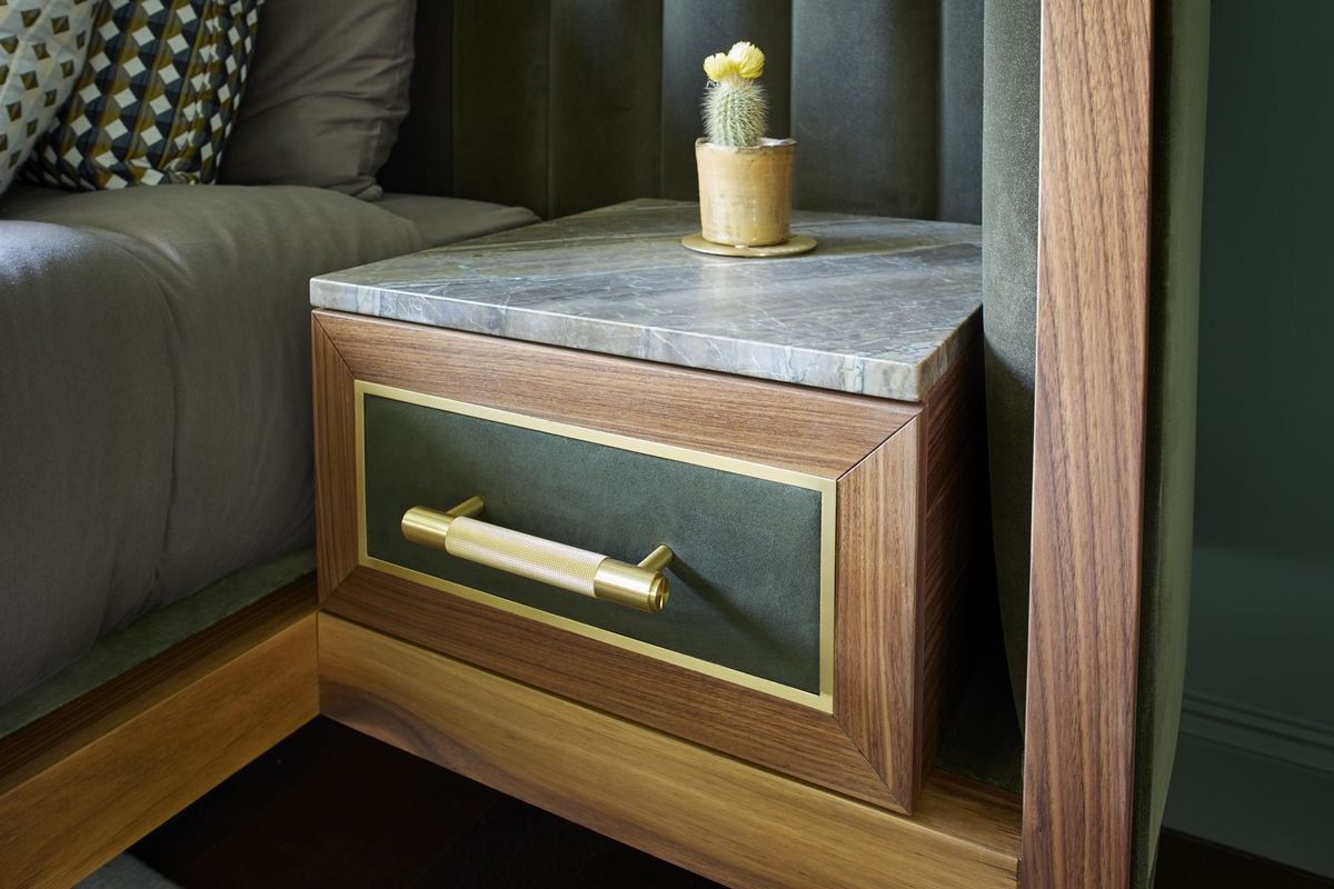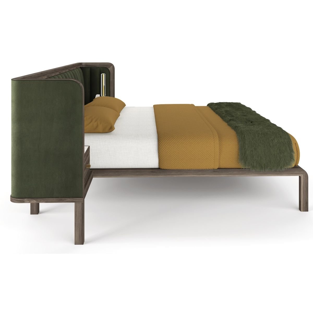 Cupid Bed in Black American Walnut & Velvet with Integrated Bedside Table by Casa Botelho