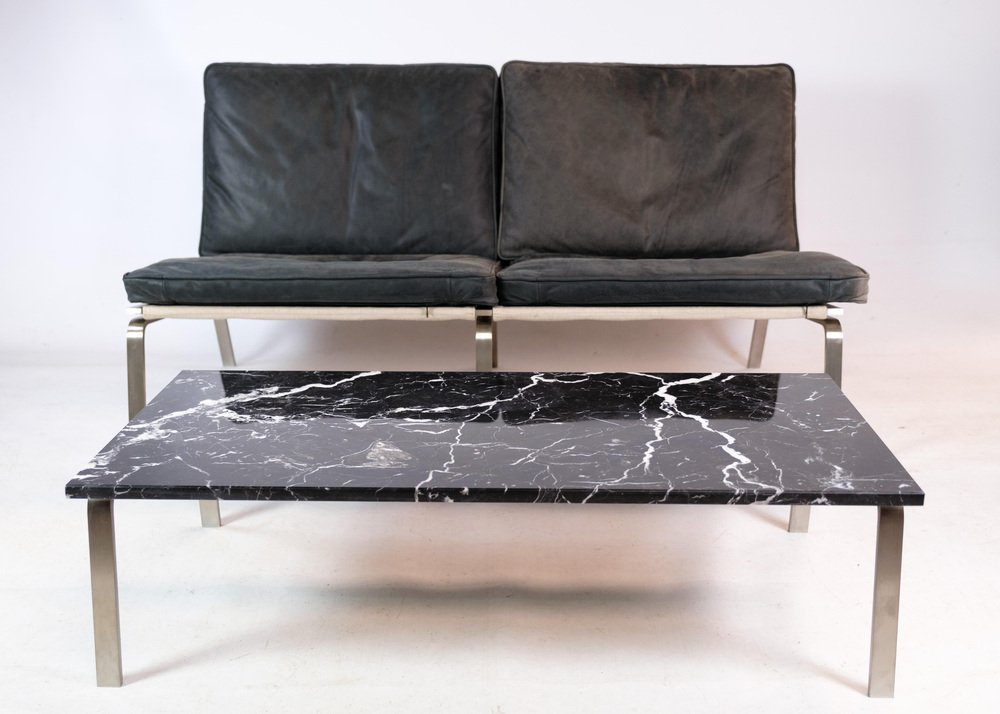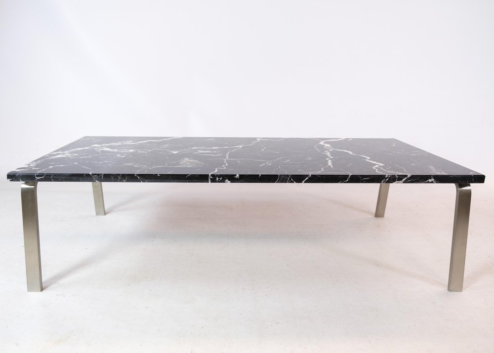Danish Coffee Table with Aluminum Frame & Marble Top by Mann for Norr11, 2000s